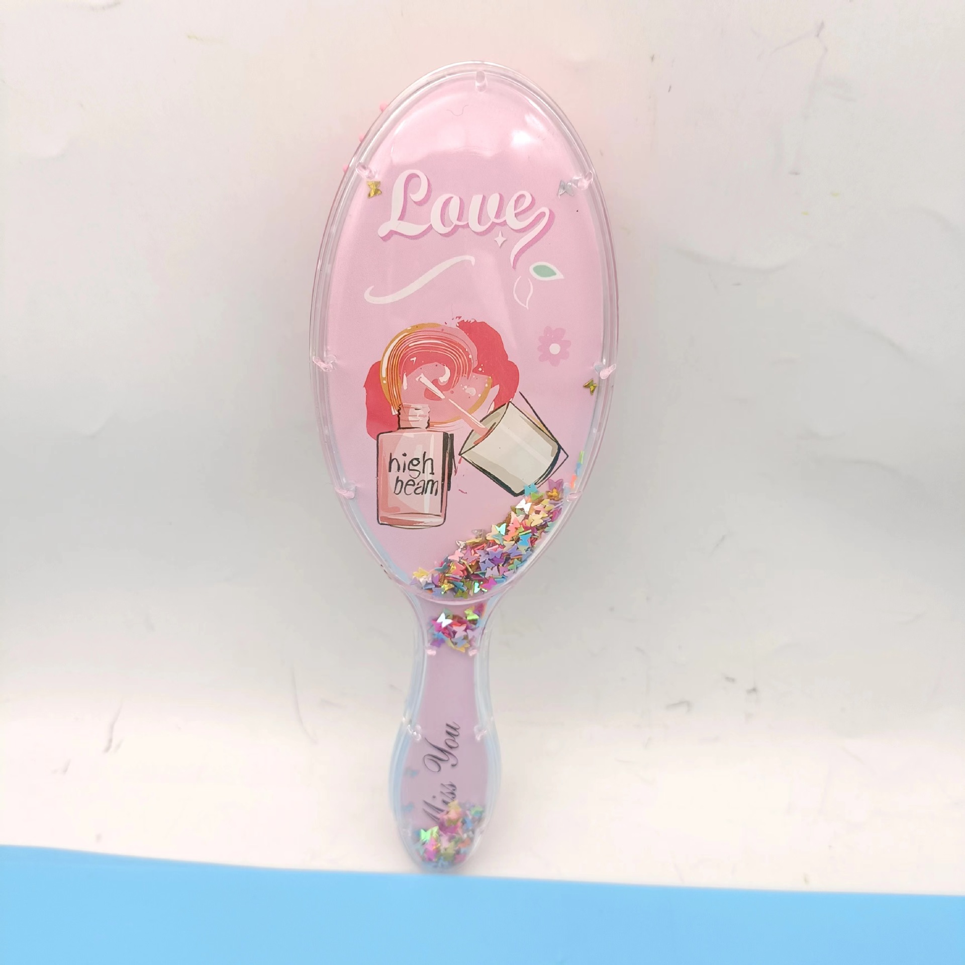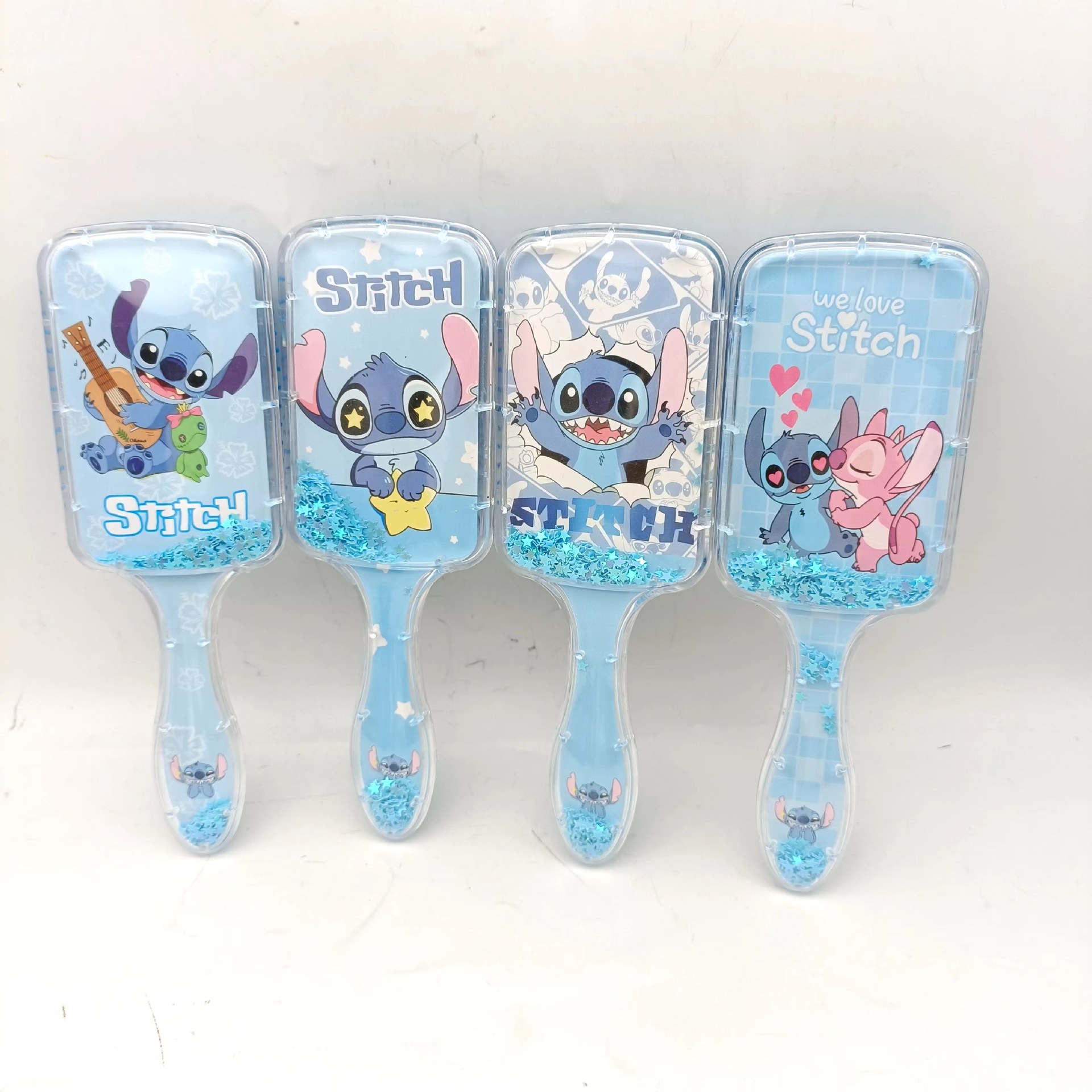 새로운 만화 스티치 헤어 빗 퀵 샌드 스팽글 마사지 빗 높은 가치의 사각형 긴 핸들 헤어 빗 크로스 테두리스토어 가기