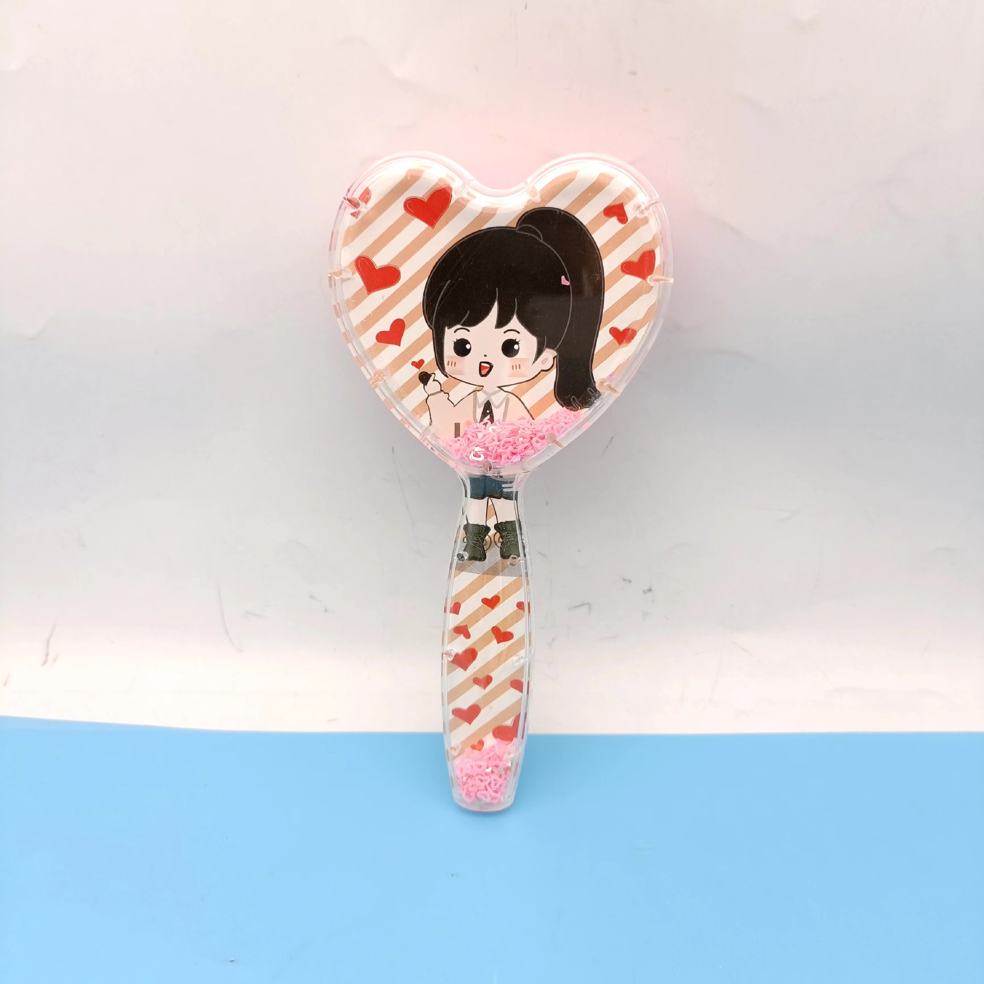 새로운 만화 스티치 헤어 빗 퀵 샌드 스팽글 마사지 빗 높은 가치의 사각형 긴 핸들 헤어 빗 크로스 테두리
