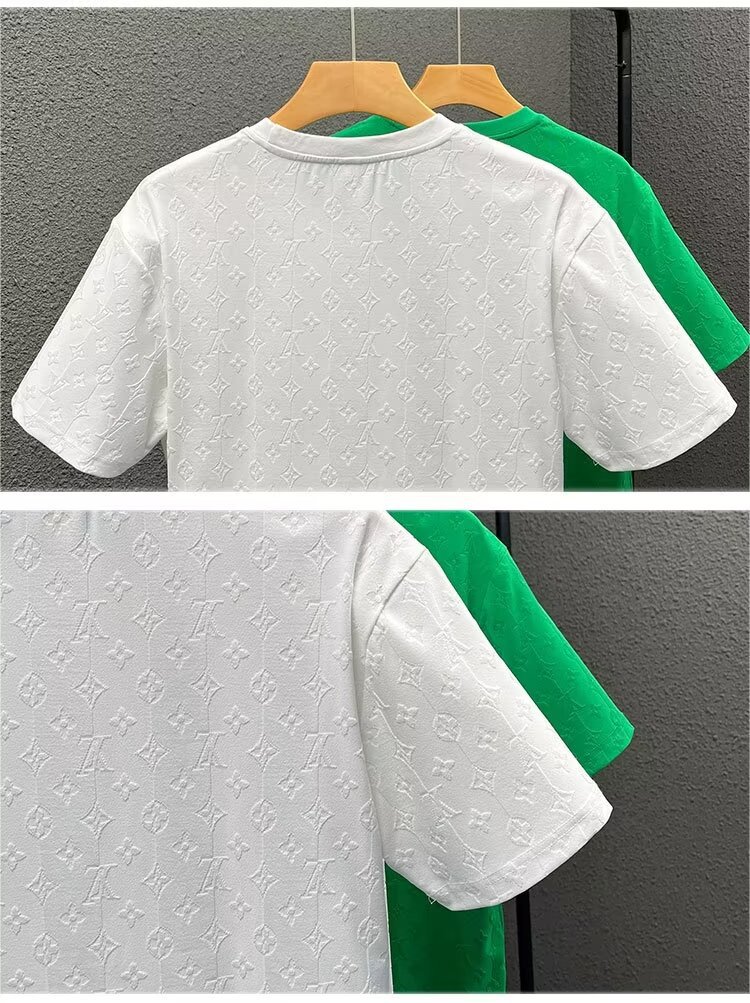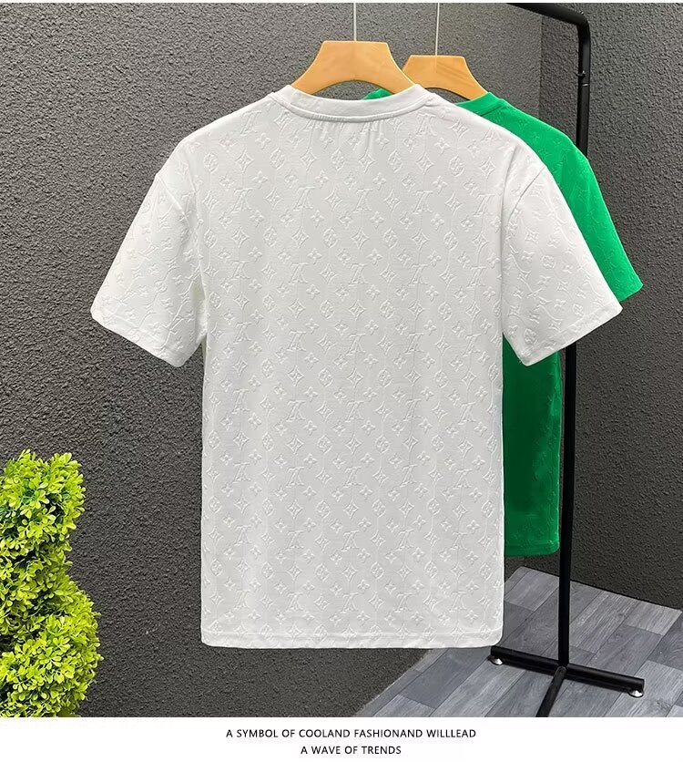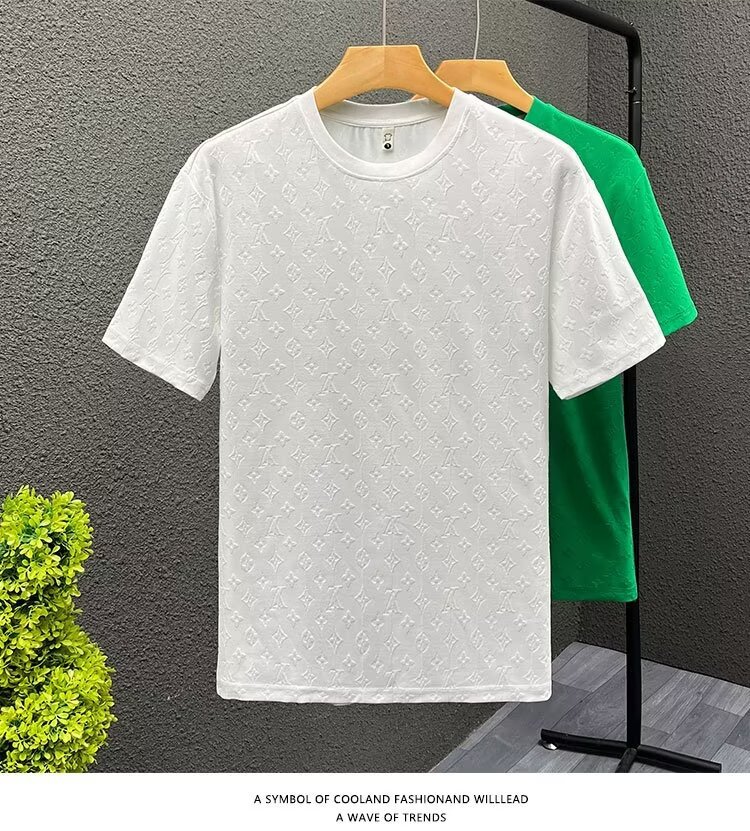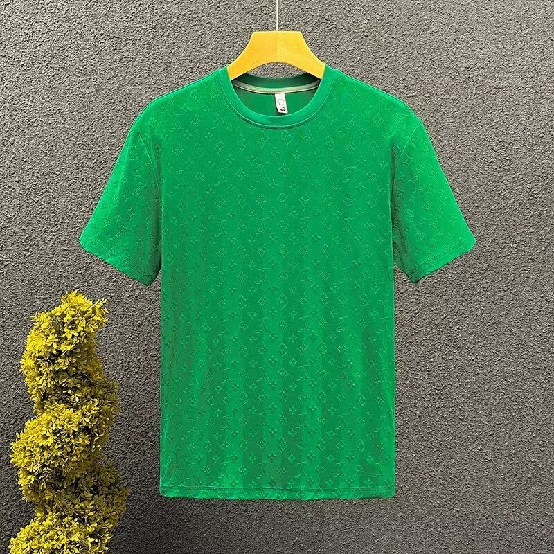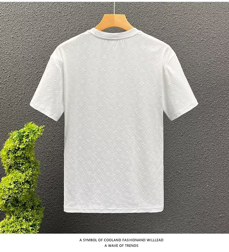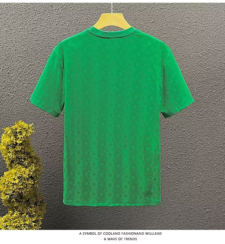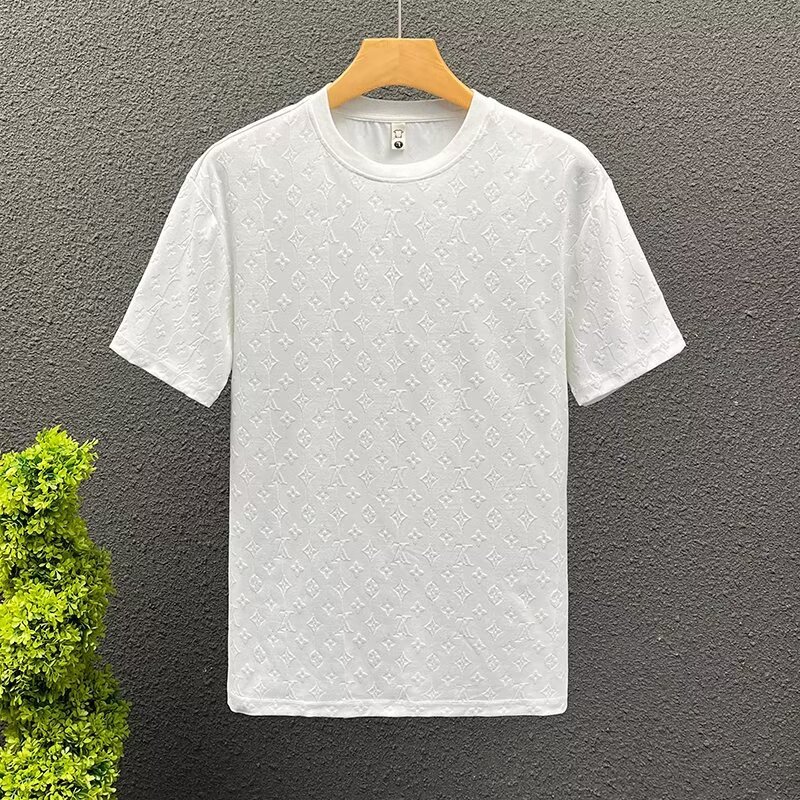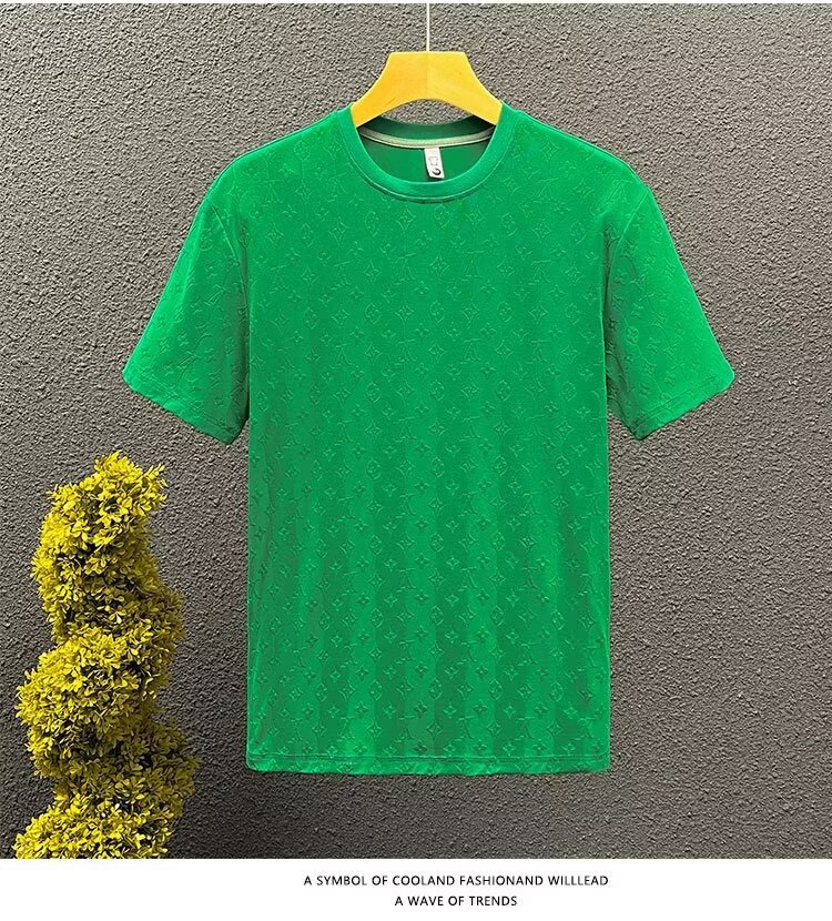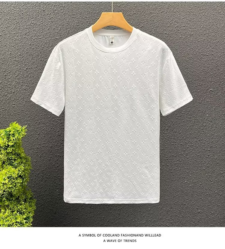 고급 자카드 반팔 티셔츠 남성용 슬림 핏 라이트 럭셔리 우아한 얇은 통기성 단색 캐주얼 라운드 넥 티셔츠 탑스토어 가기