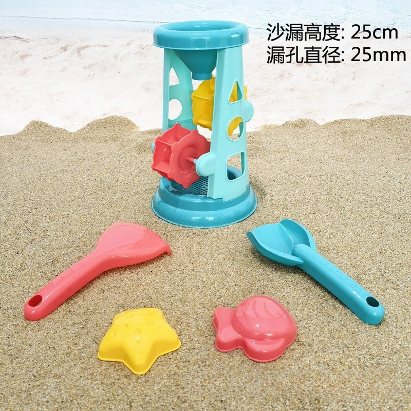 • 2개의 삽과 갈퀴 몰드가 포함된 파란색 모래시계 5종 세트