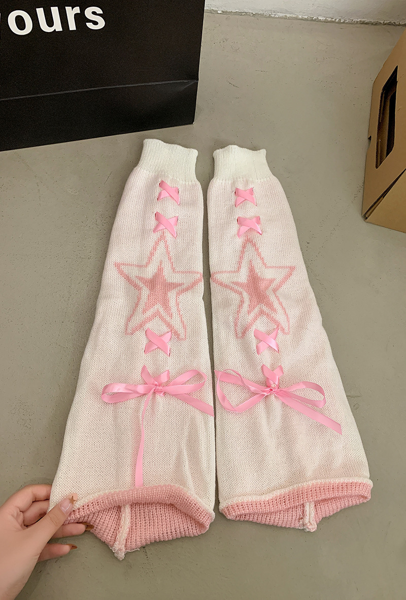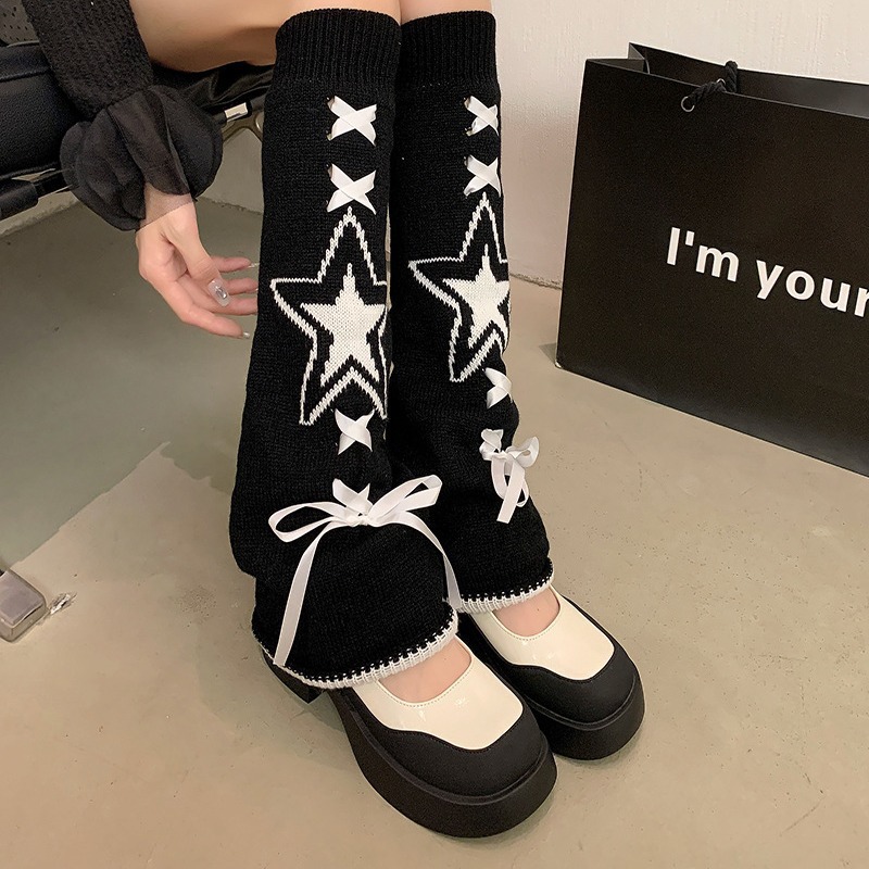 니트 플라 양말 여성 리본 스타 중간 길이 양말 JK 뜨거운 소녀 맞춤형 송아지 커버 따뜻한 하위 문화 Y2K스토어 가기