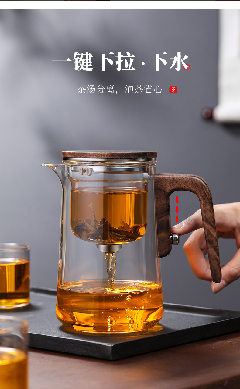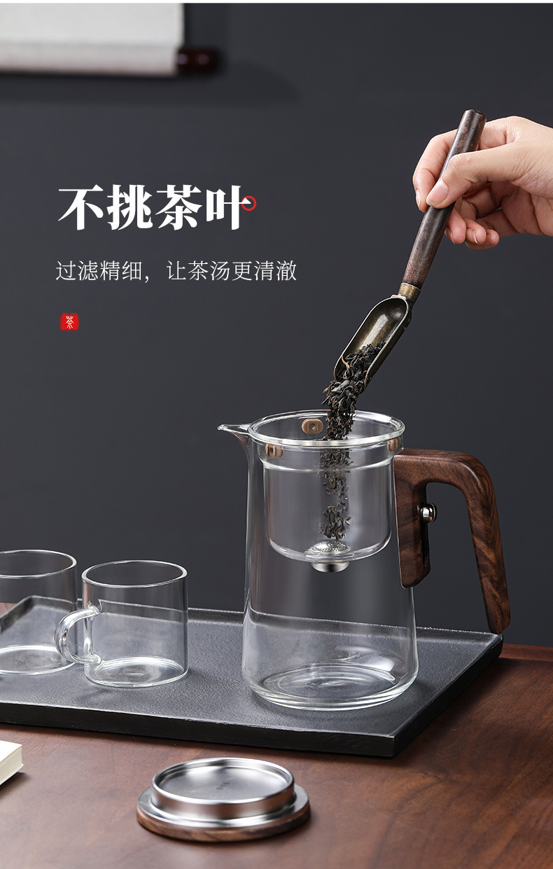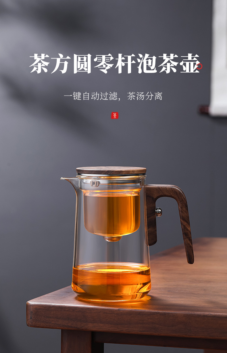 차 사각형 및 원형 막대 없는 주전자, 유리 라이너 차 물 분리 컵, 유리 물컵, 게으른 차 세트, 차 분리
