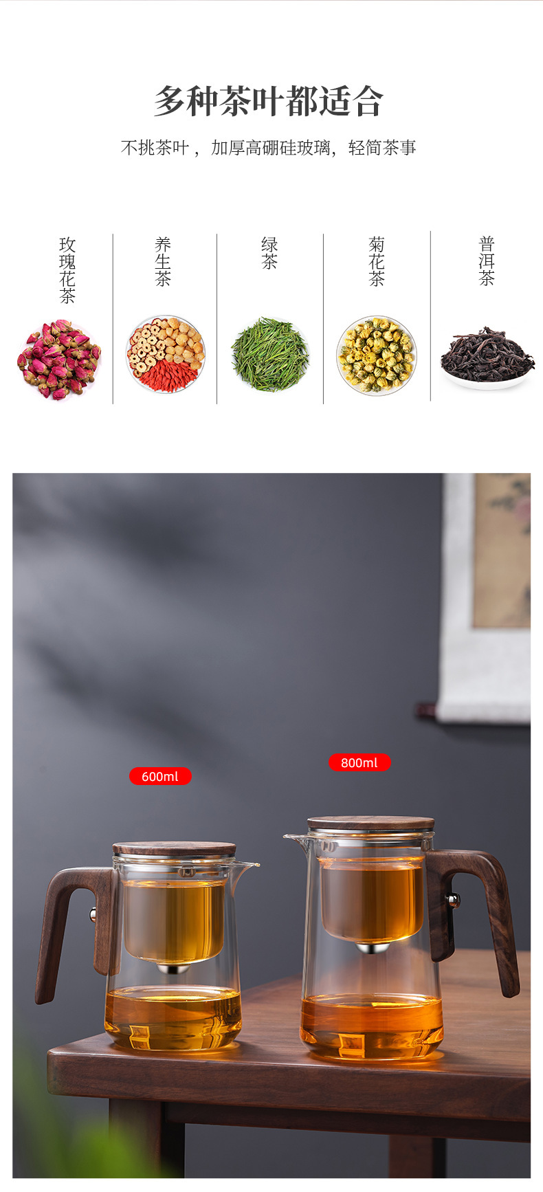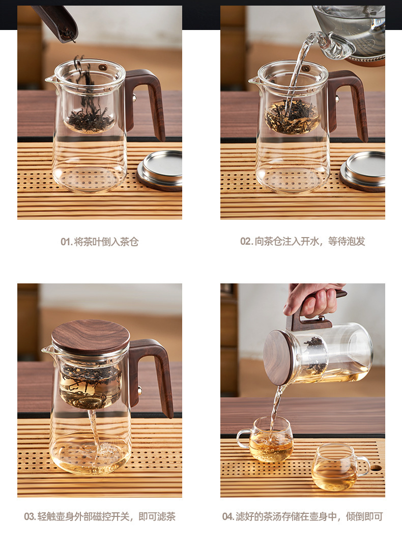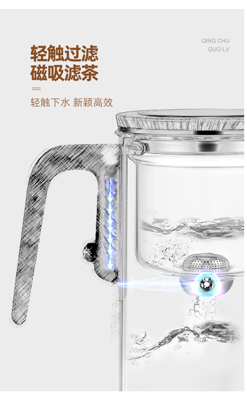 차 사각형 및 원형 막대 없는 주전자, 유리 라이너 차 물 분리 컵, 유리 물컵, 게으른 차 세트, 차 분리스토어 가기