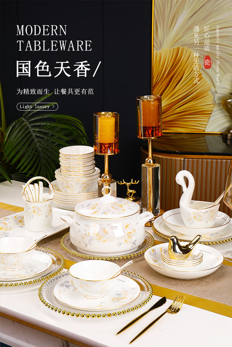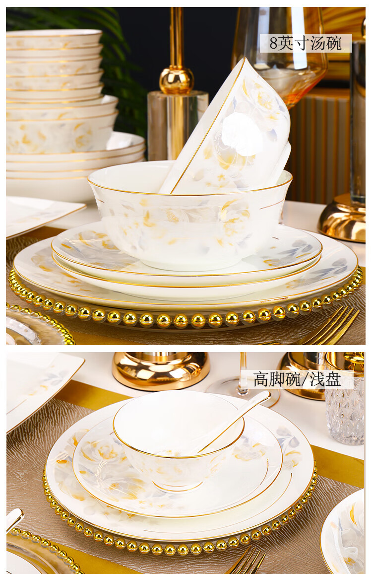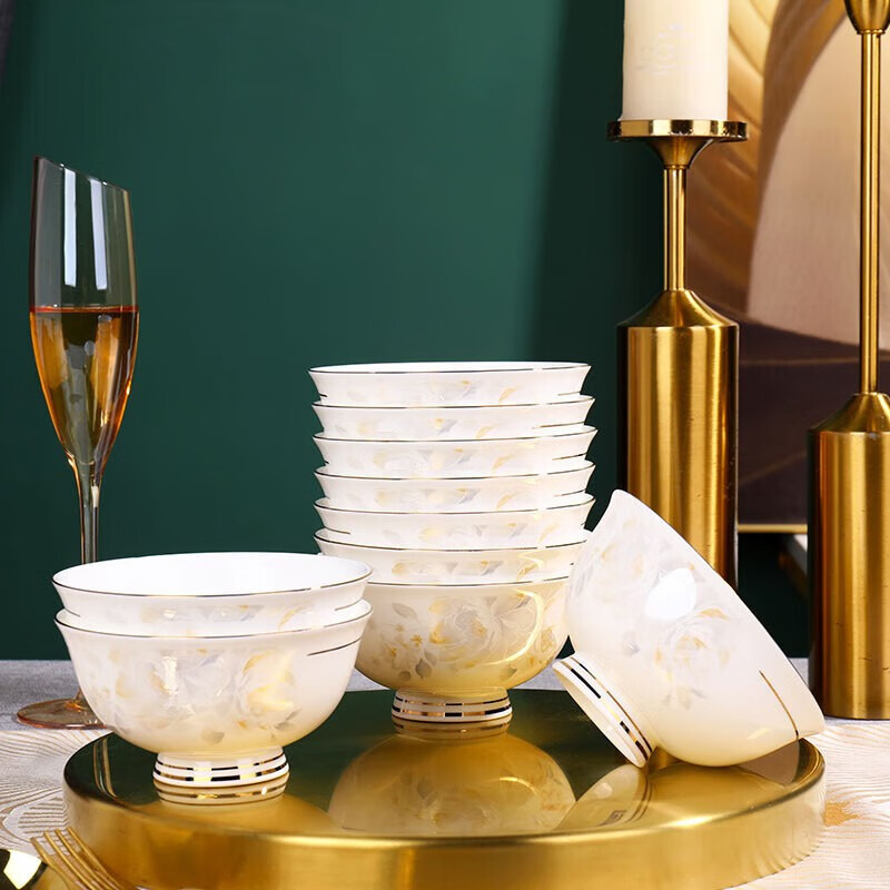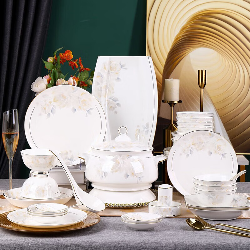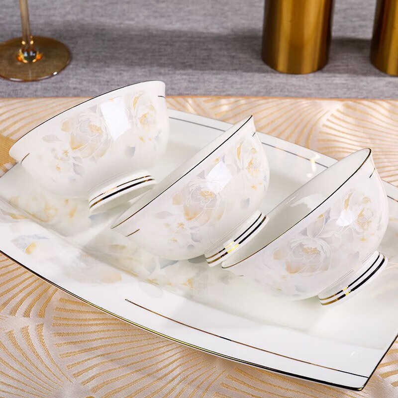 Jingdezhen 식기 가정용 식기 고급 밥 그릇 중국 식기 우아한 세트 프녹 림 그릇 식사 그릇