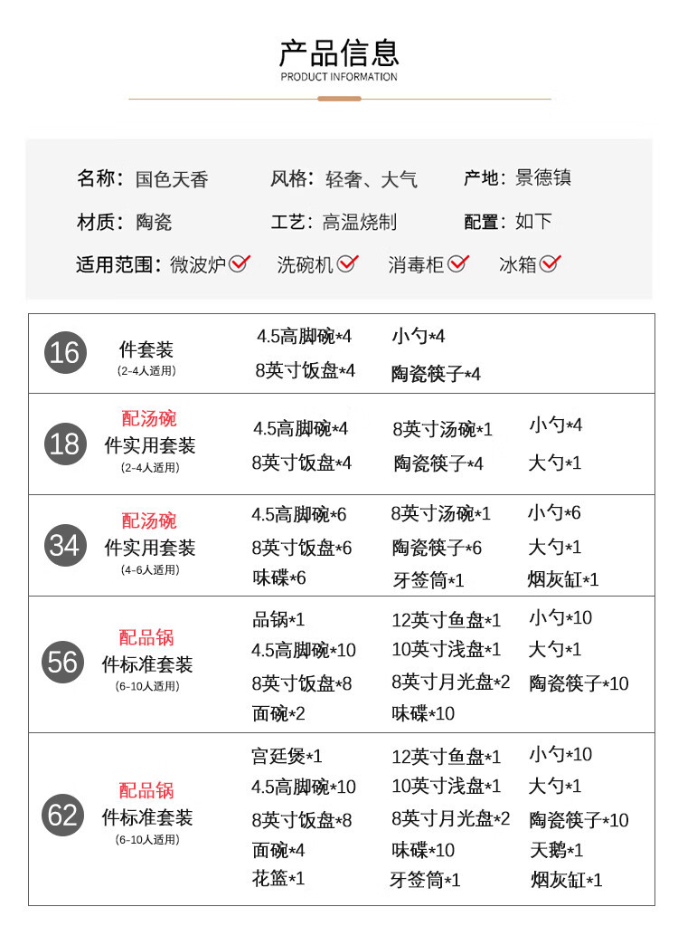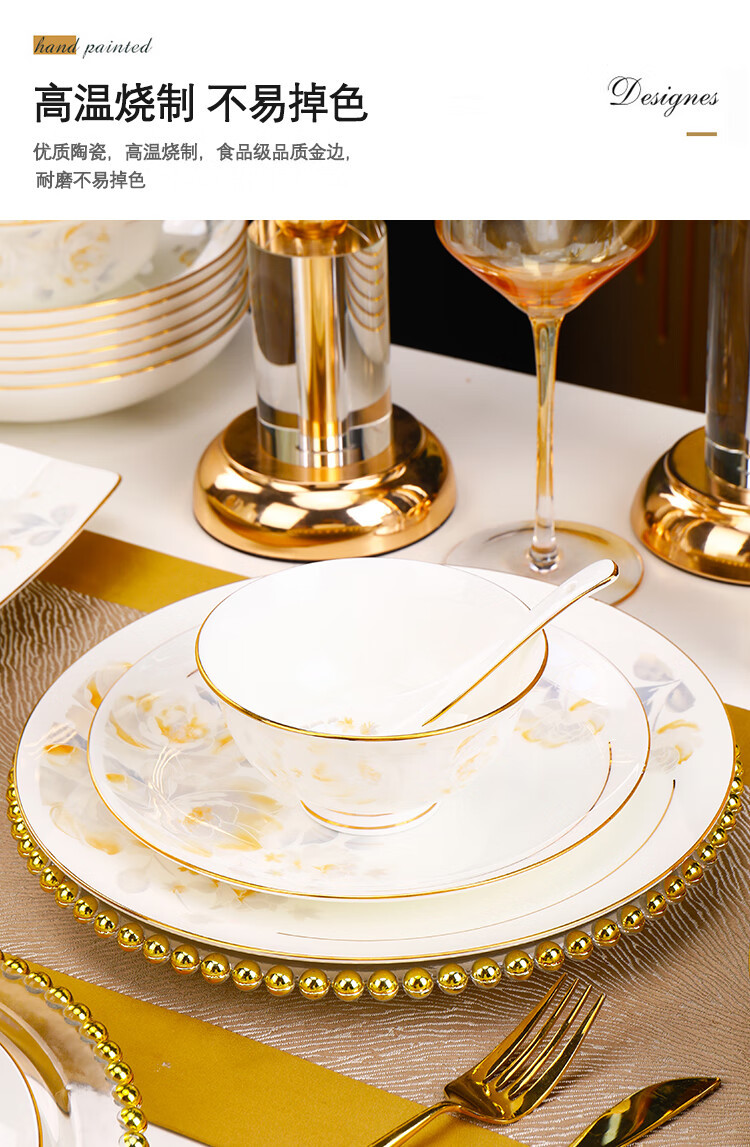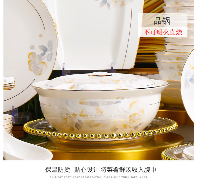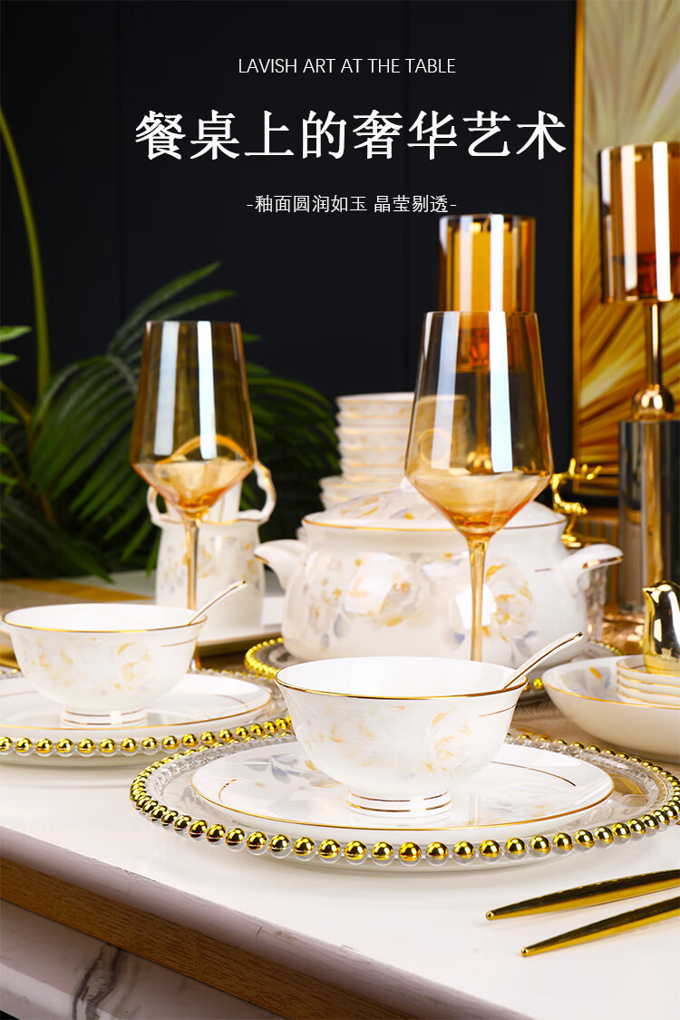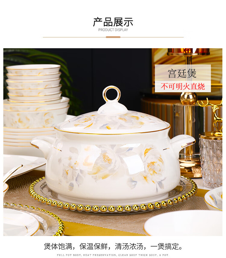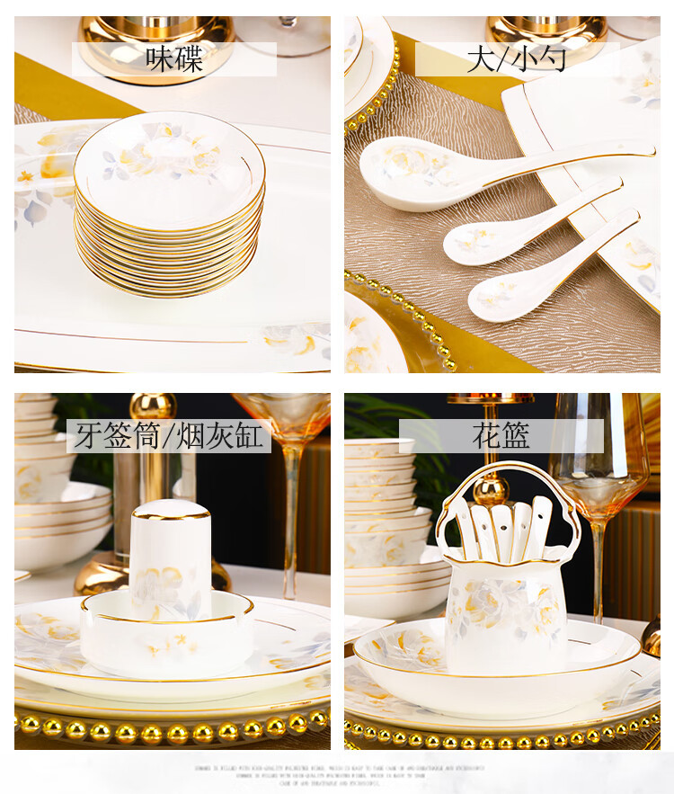 Jingdezhen 식기 가정용 식기 고급 밥 그릇 중국 식기 우아한 세트 프녹 림 그릇 식사 그릇