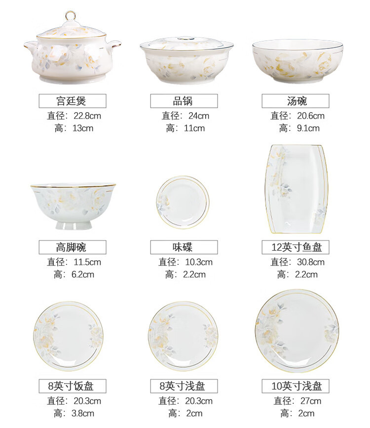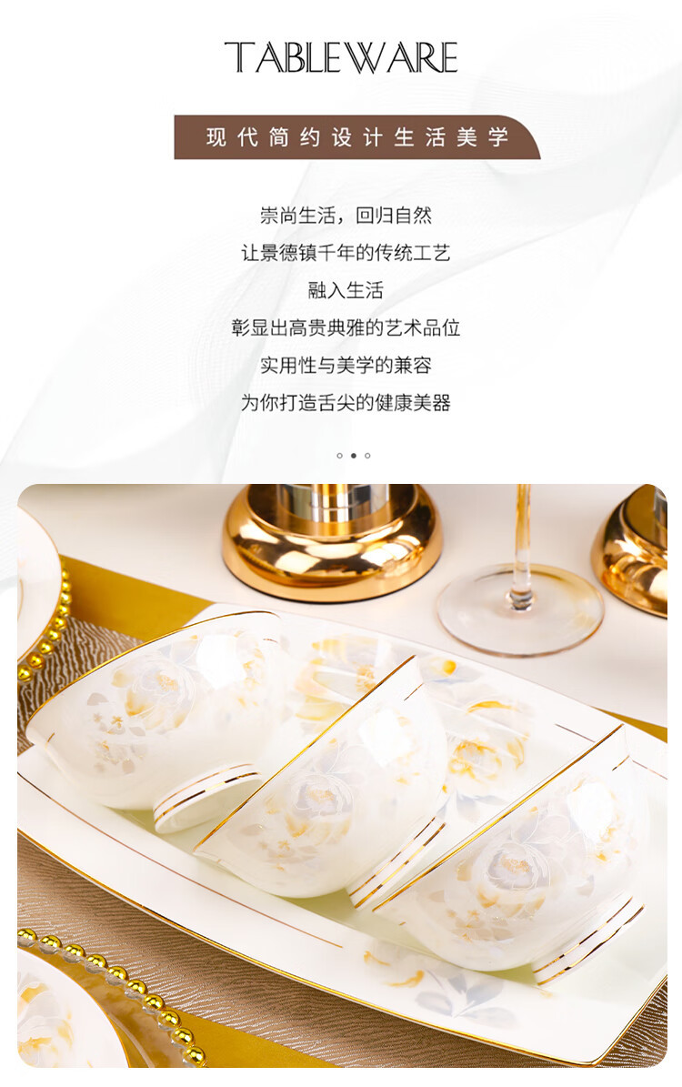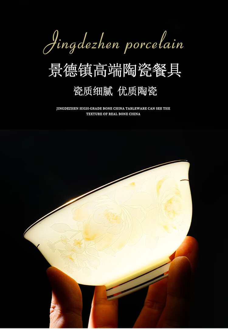 Jingdezhen 식기 가정용 식기 고급 밥 그릇 중국 식기 우아한 세트 프녹 림 그릇 식사 그릇스토어 가기