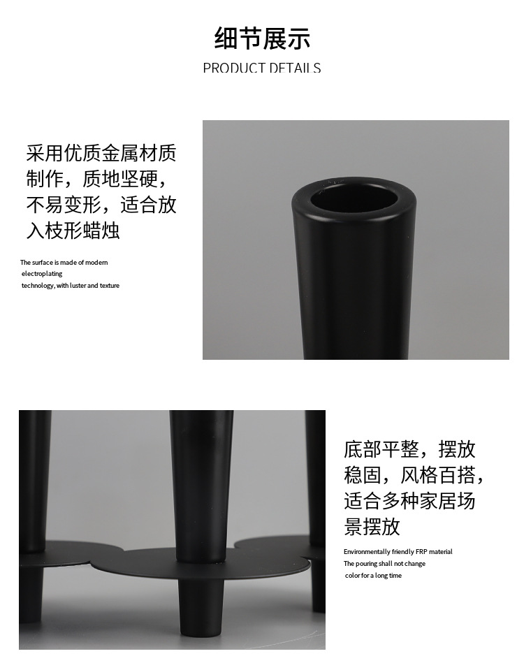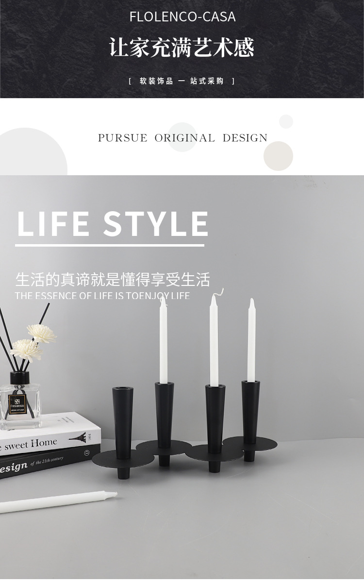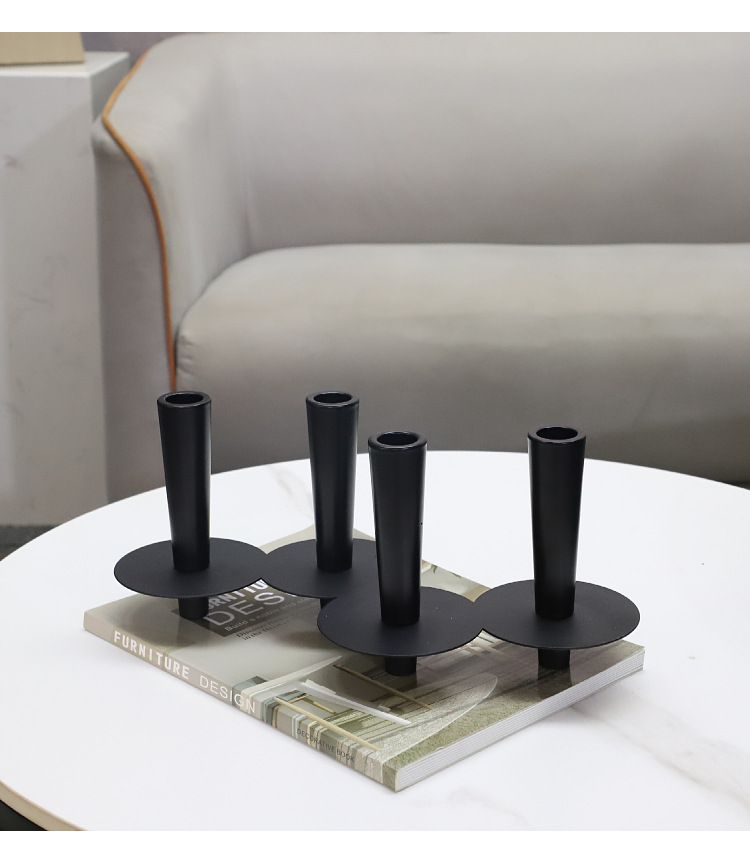 현대 간단한 검은 금속 관 촛대 장식품 거실 레스토랑 호텔 모델 룸 부드러운 홈 장식