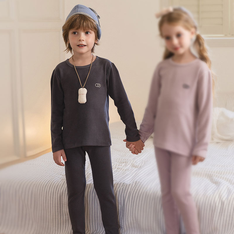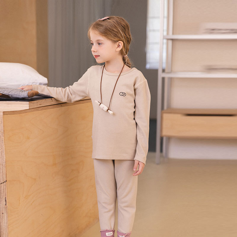 어린이 봄 2025 바닥 에어컨 의류 아기 잠옷 세트 소년과 소녀를위한 라운드 넥 긴팔 따뜻한 가정 의류스토어 가기