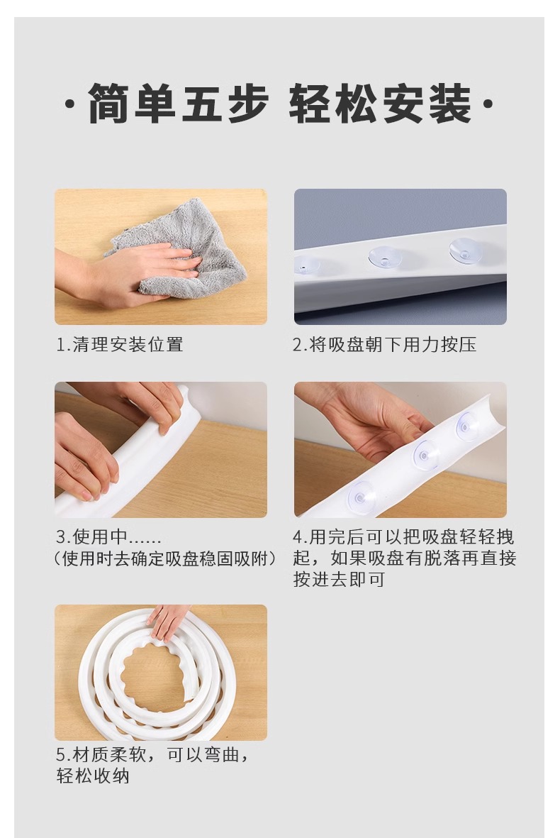 욕실 흡입 컵 물 유지 스트립 이동식 샤워 룸 욕실 구부릴 수있는 방수 스트립 물 차단 접착제 없음스토어 가기
