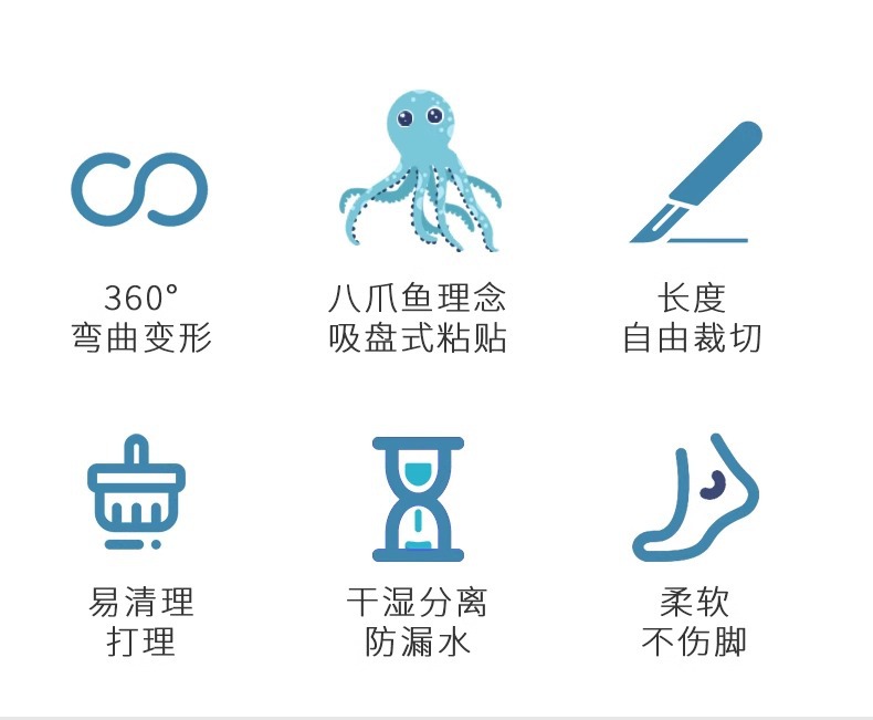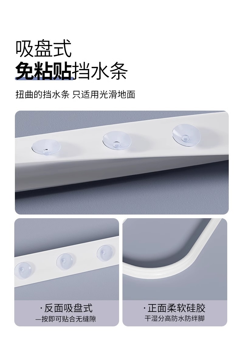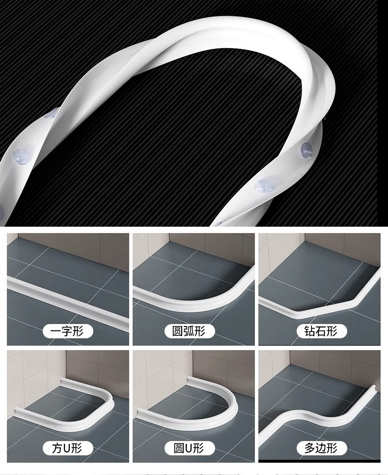 욕실 흡입 컵 물 유지 스트립 이동식 샤워 룸 욕실 구부릴 수있는 방수 스트립 물 차단 접착제 없음