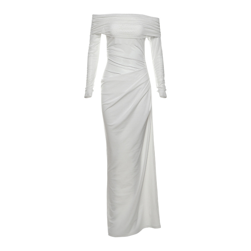 대외 무역 2025 봄 새로운 여성 의류 유럽과 미국 스타일의 기질 섹시한 어깨 메쉬 관점 긴 원피스 여성