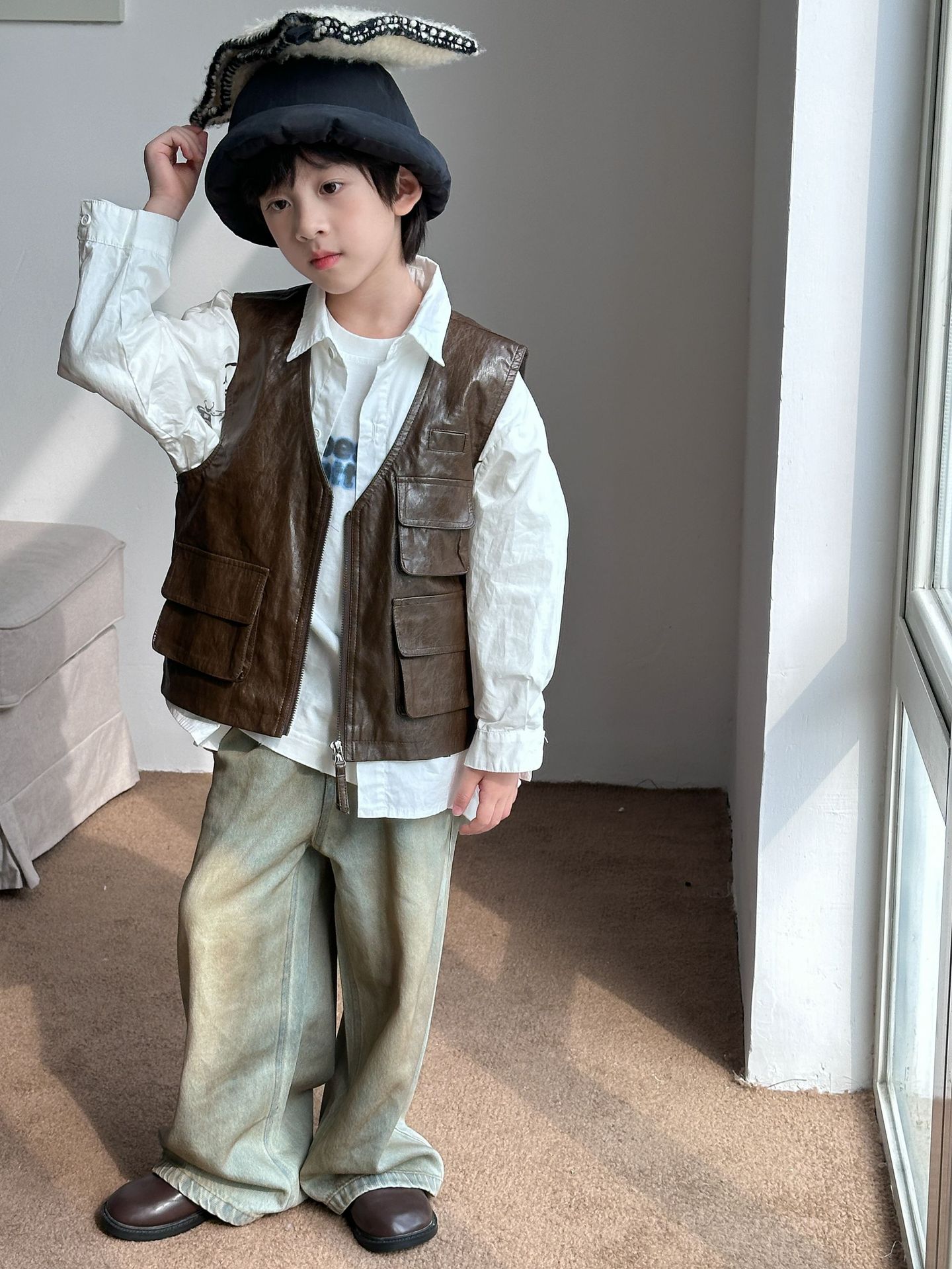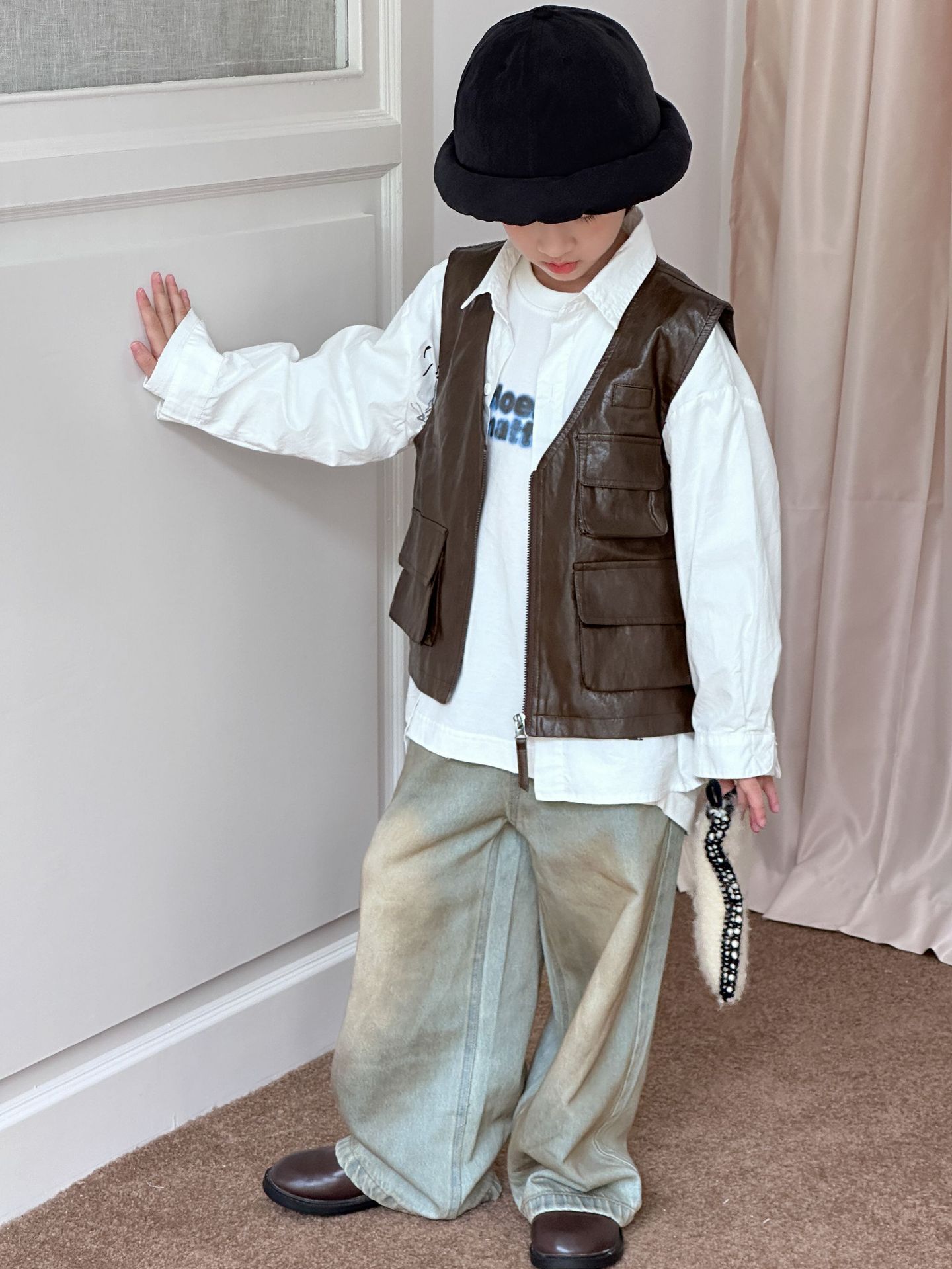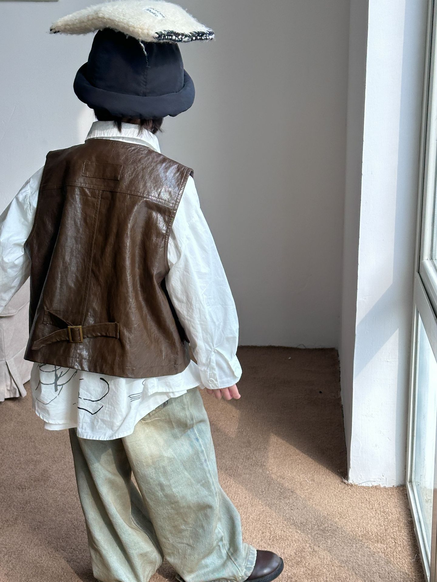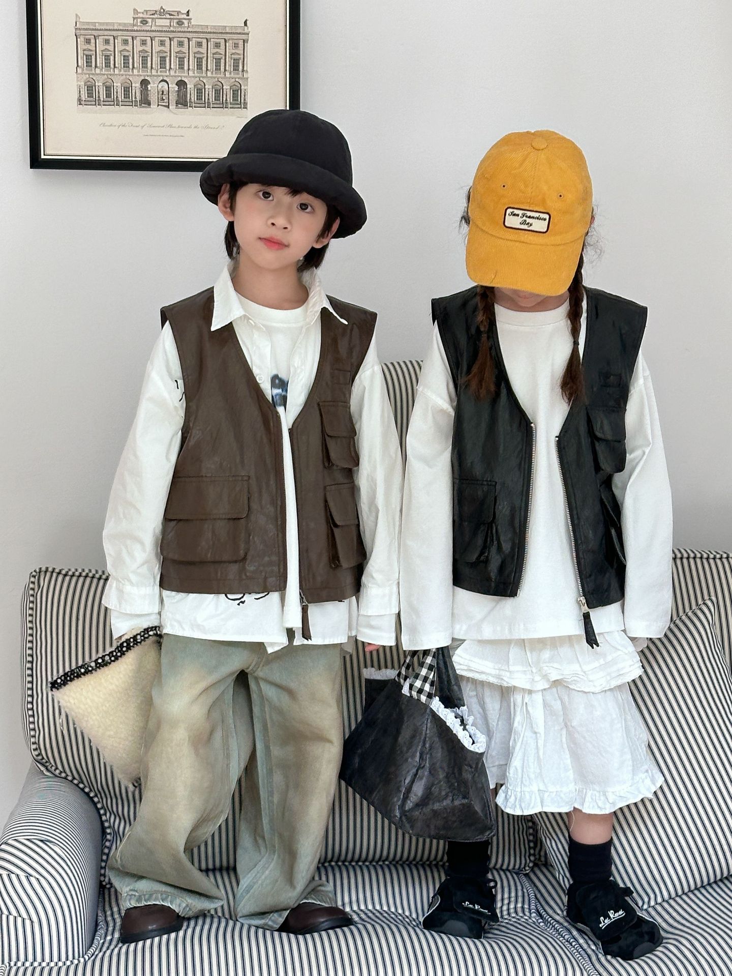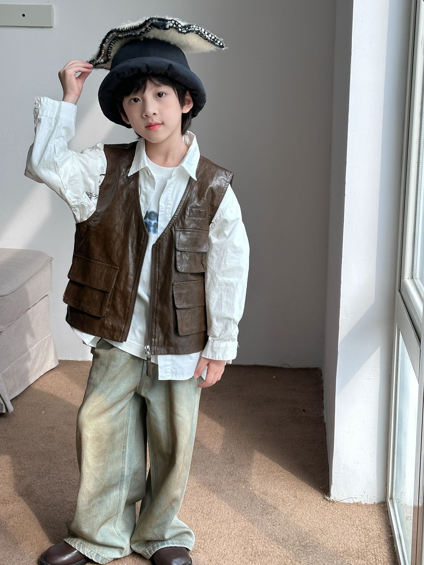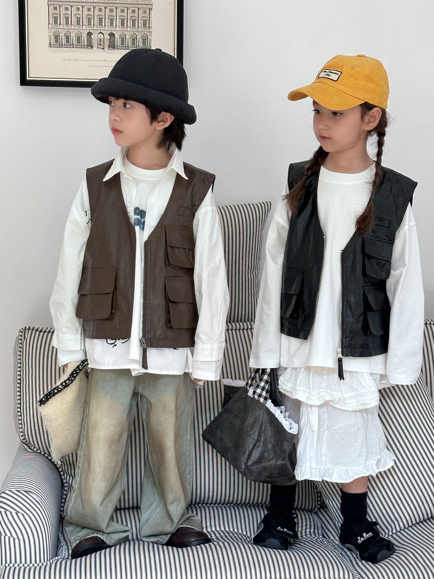 2025 봄 새로운 한국어 버전 소년과 소녀를위한 어린이 잘 생긴 가죽 조끼 중공업 입체 가방 양복 조끼 조끼 유행 스타일