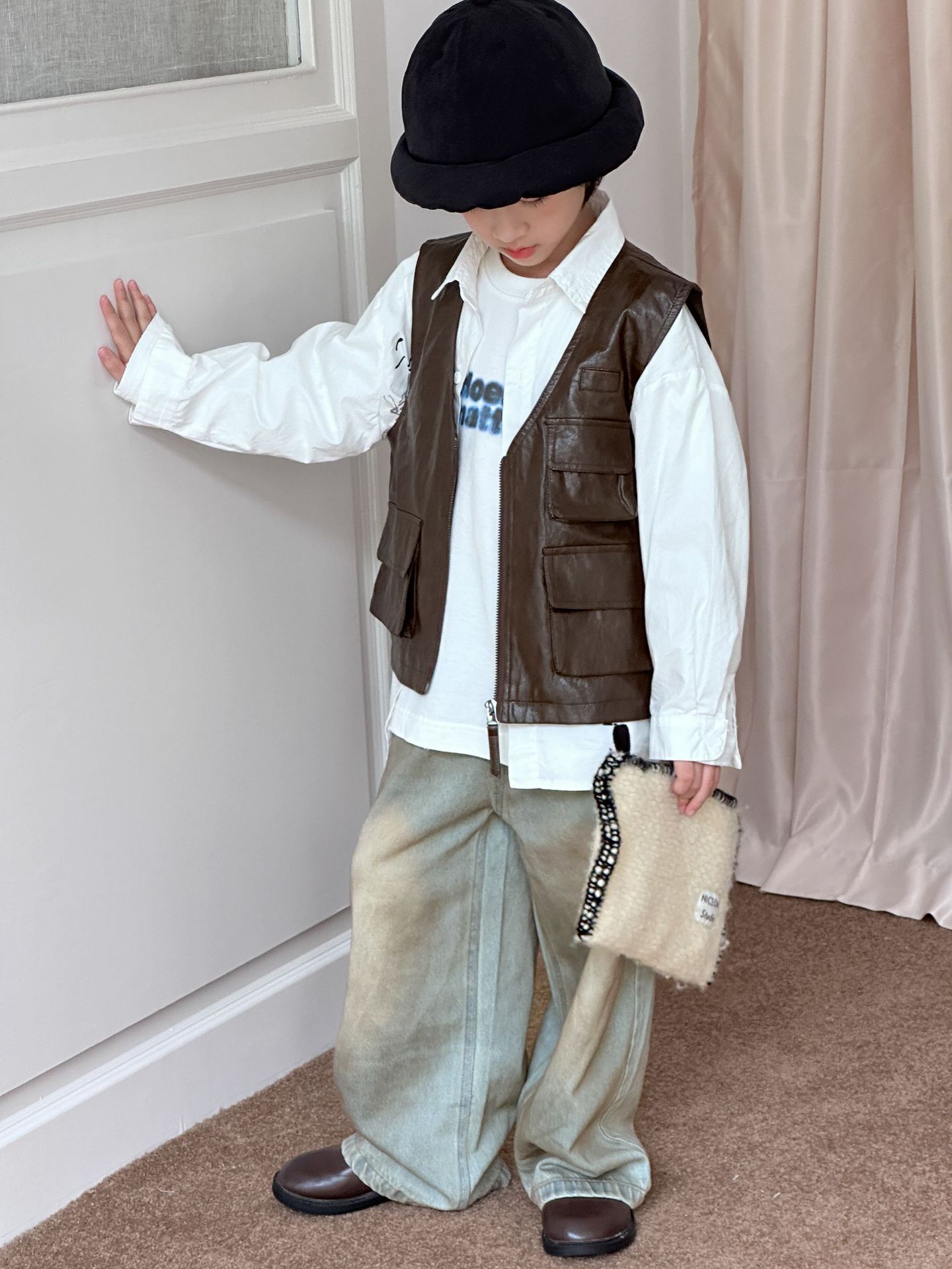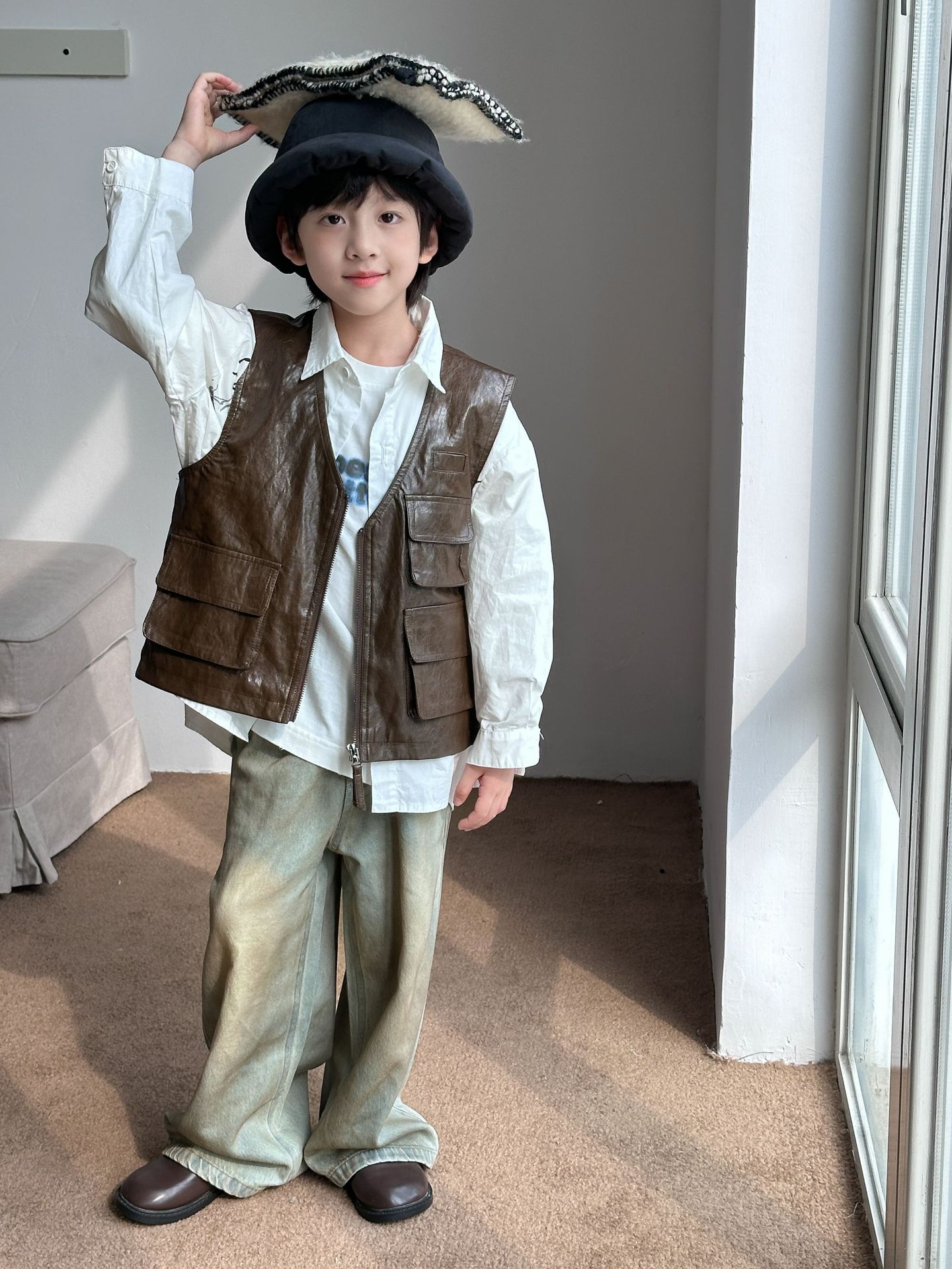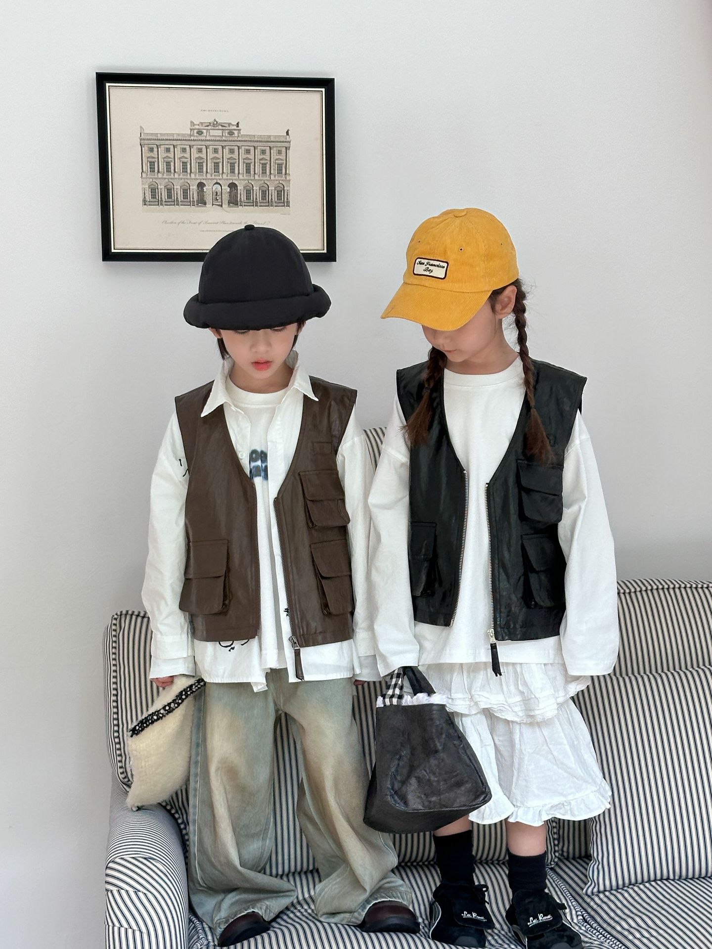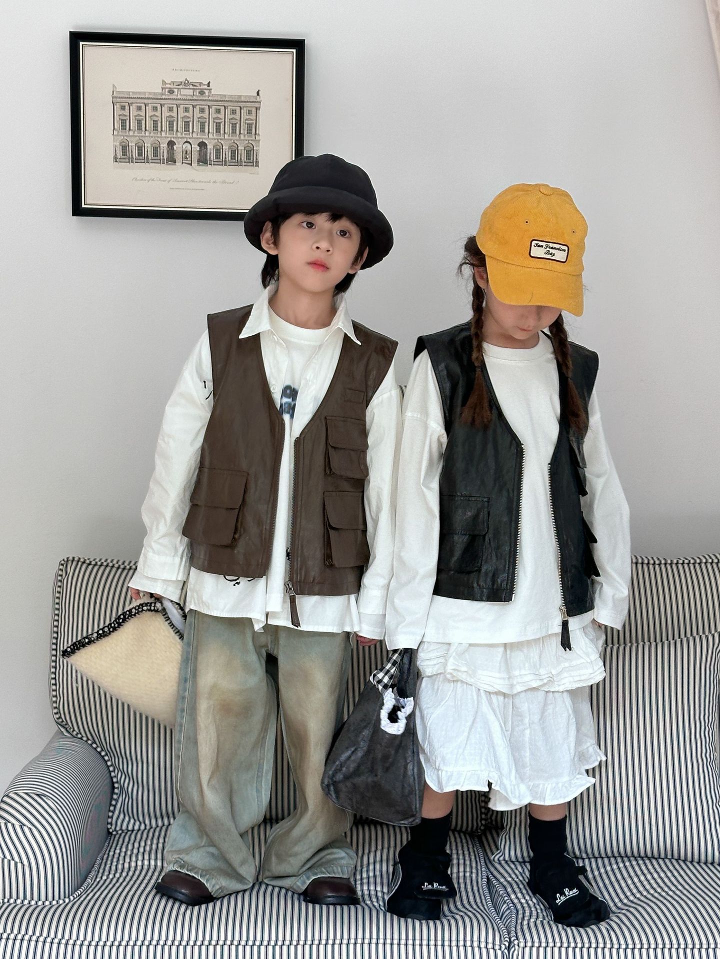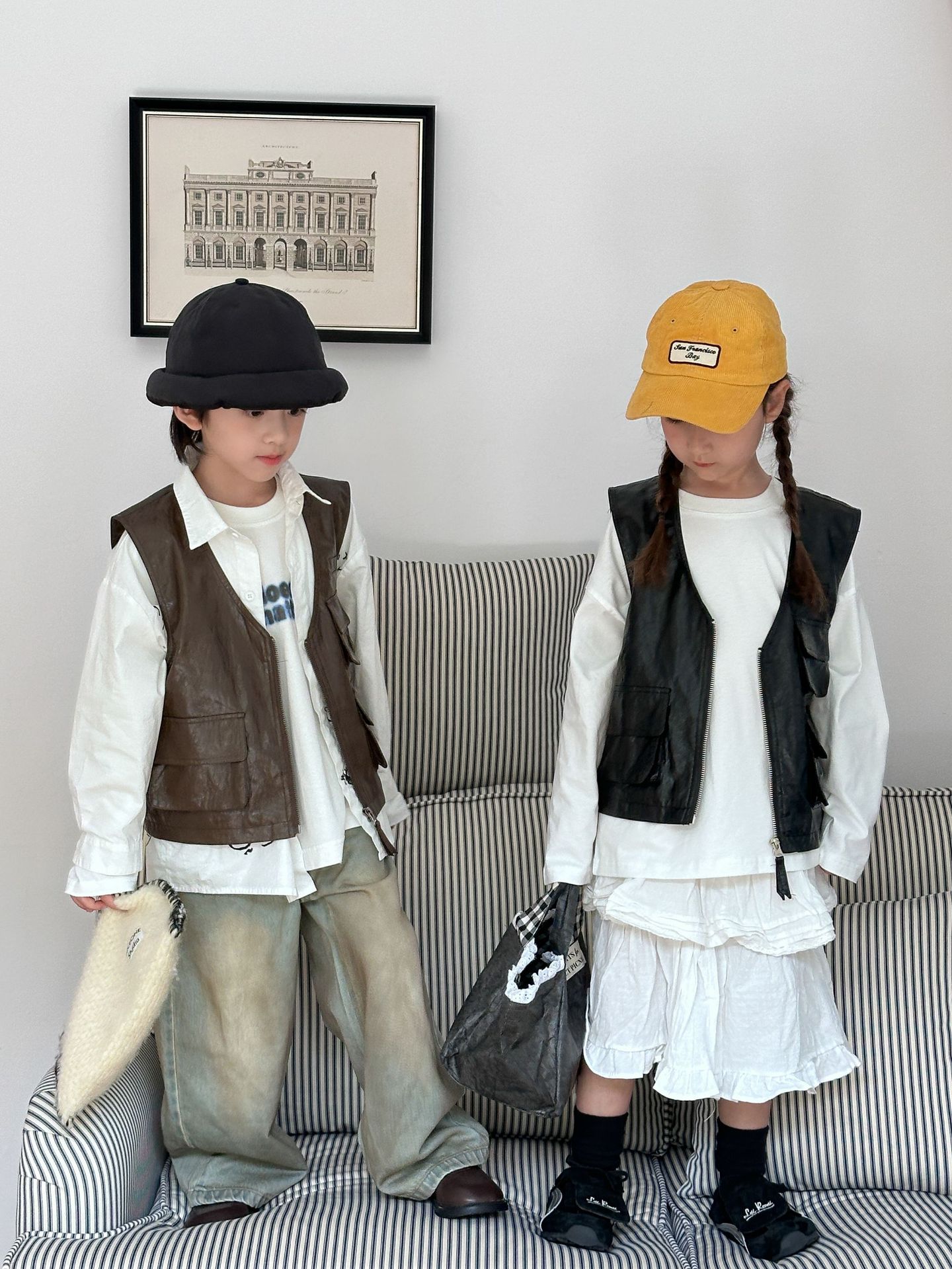 2025 봄 새로운 한국어 버전 소년과 소녀를위한 어린이 잘 생긴 가죽 조끼 중공업 입체 가방 양복 조끼 조끼 유행 스타일