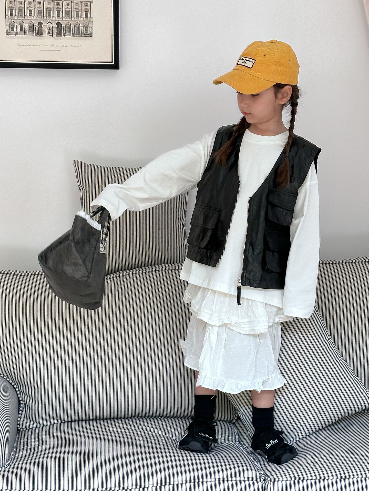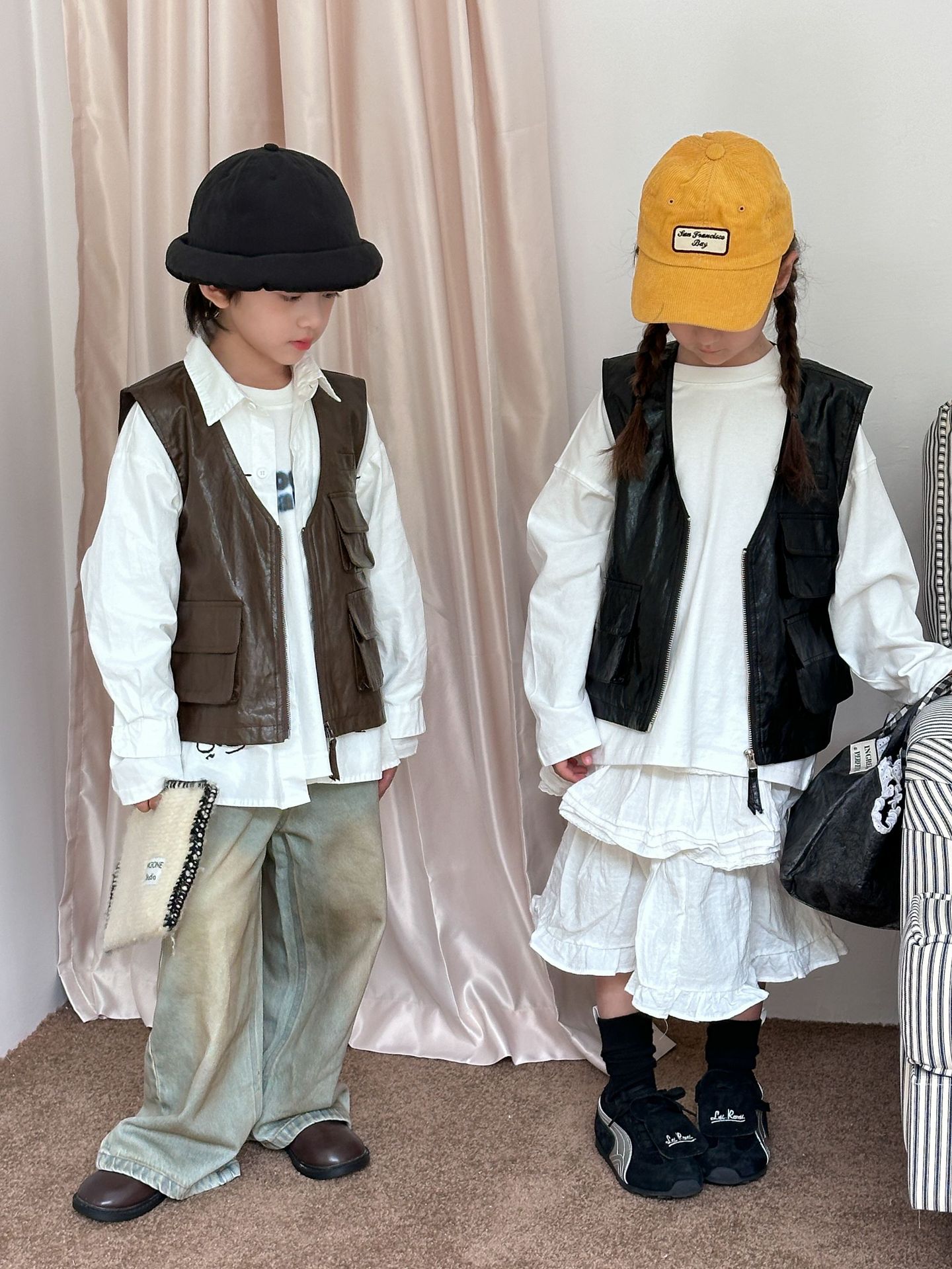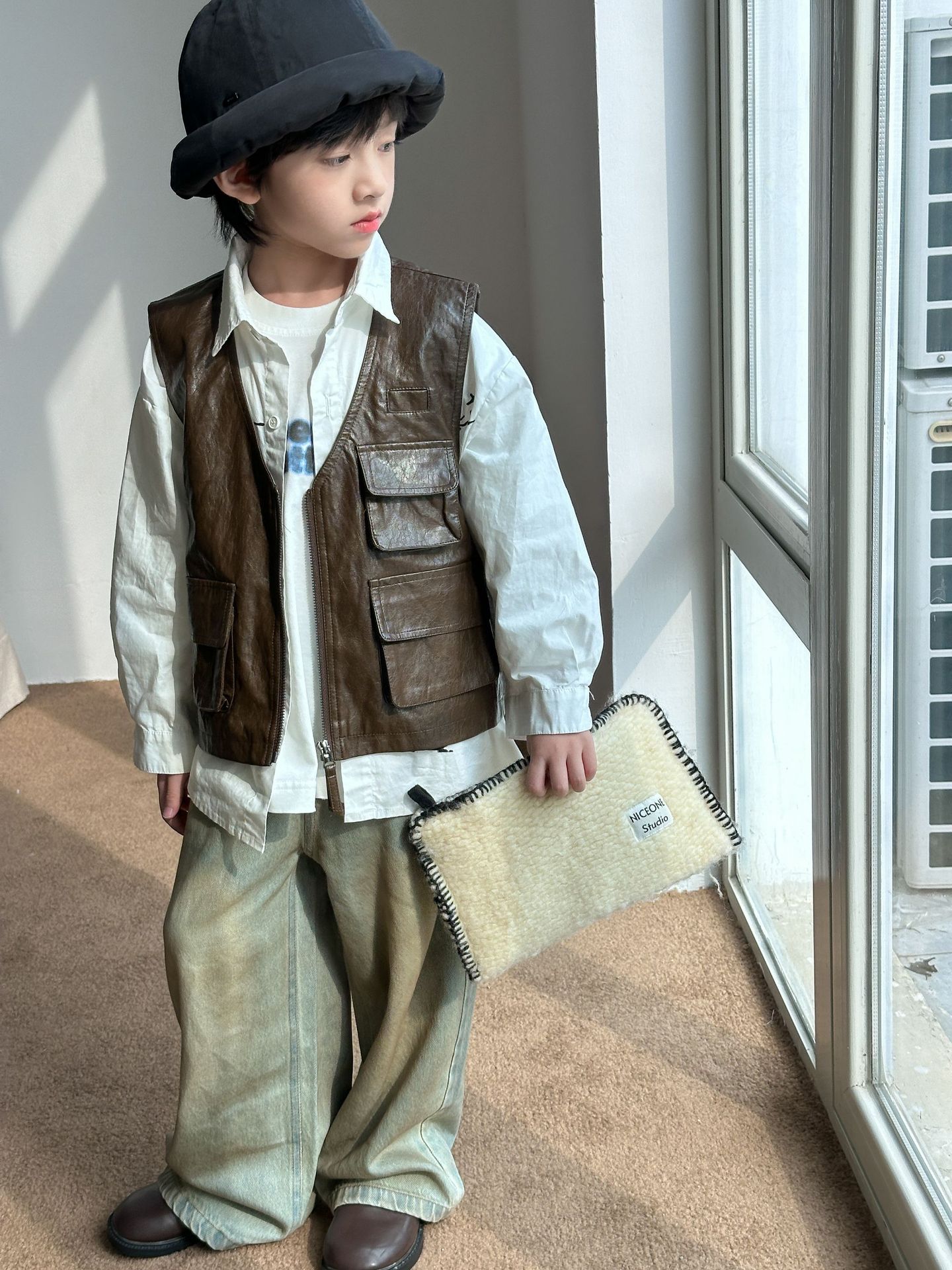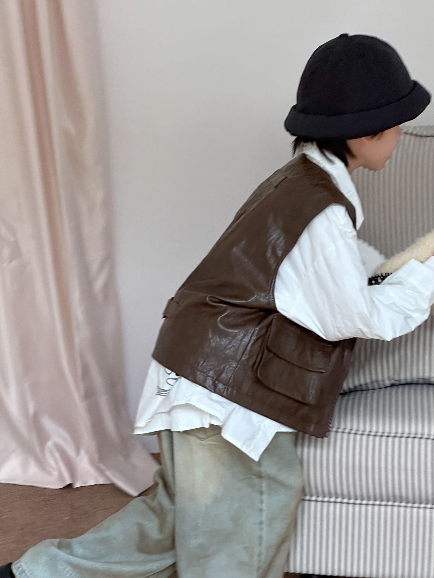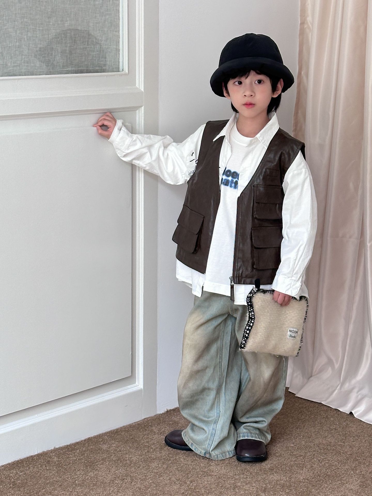 2025 봄 새로운 한국어 버전 소년과 소녀를위한 어린이 잘 생긴 가죽 조끼 중공업 입체 가방 양복 조끼 조끼 유행 스타일