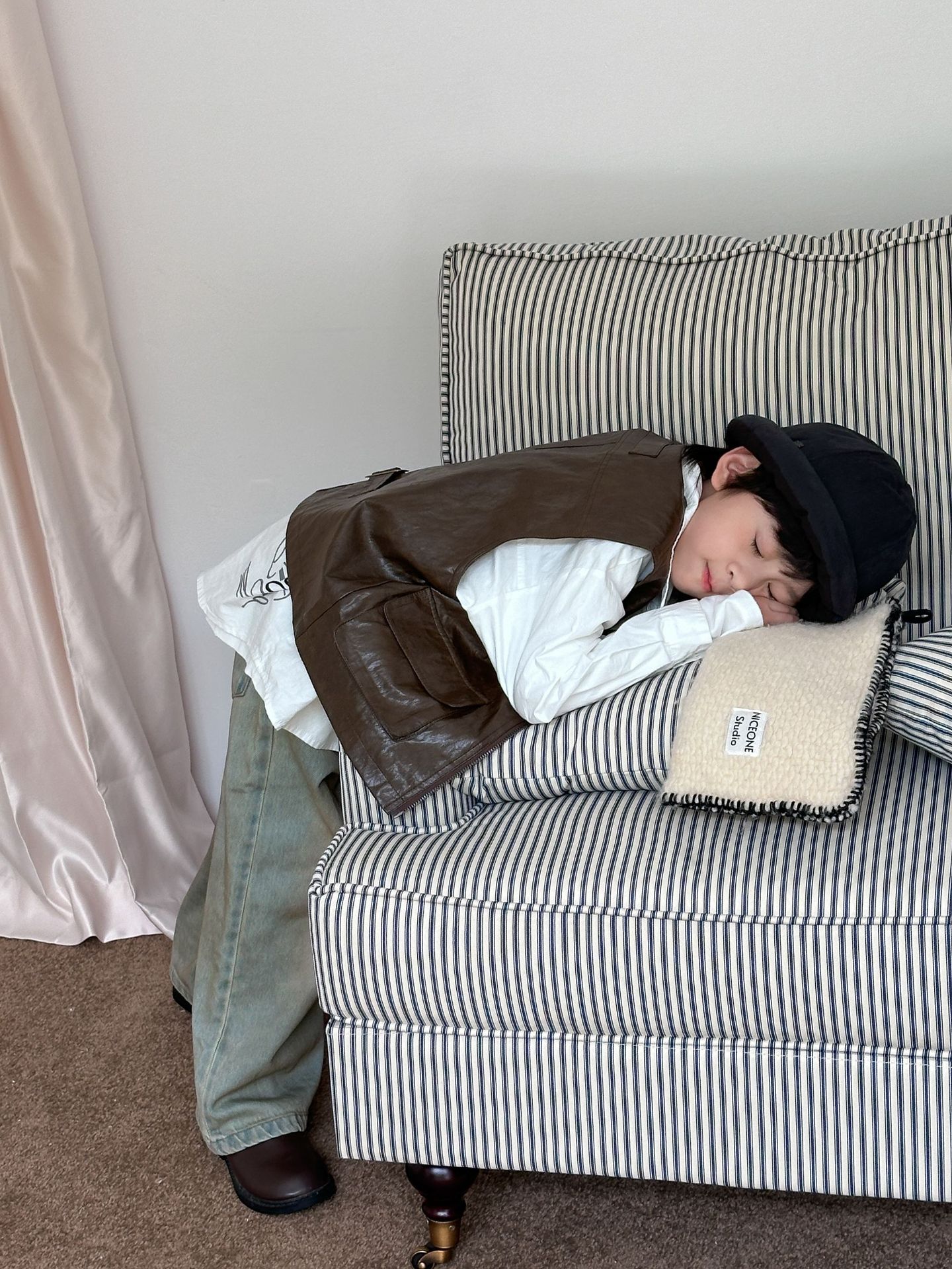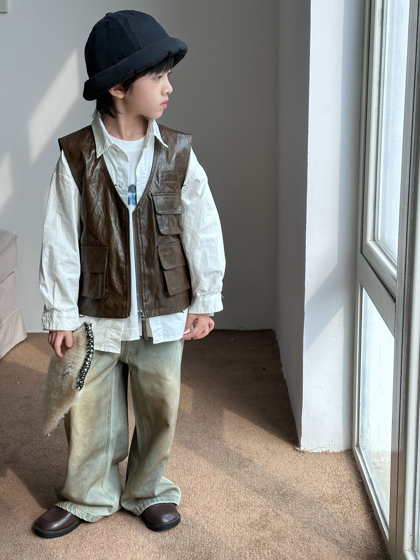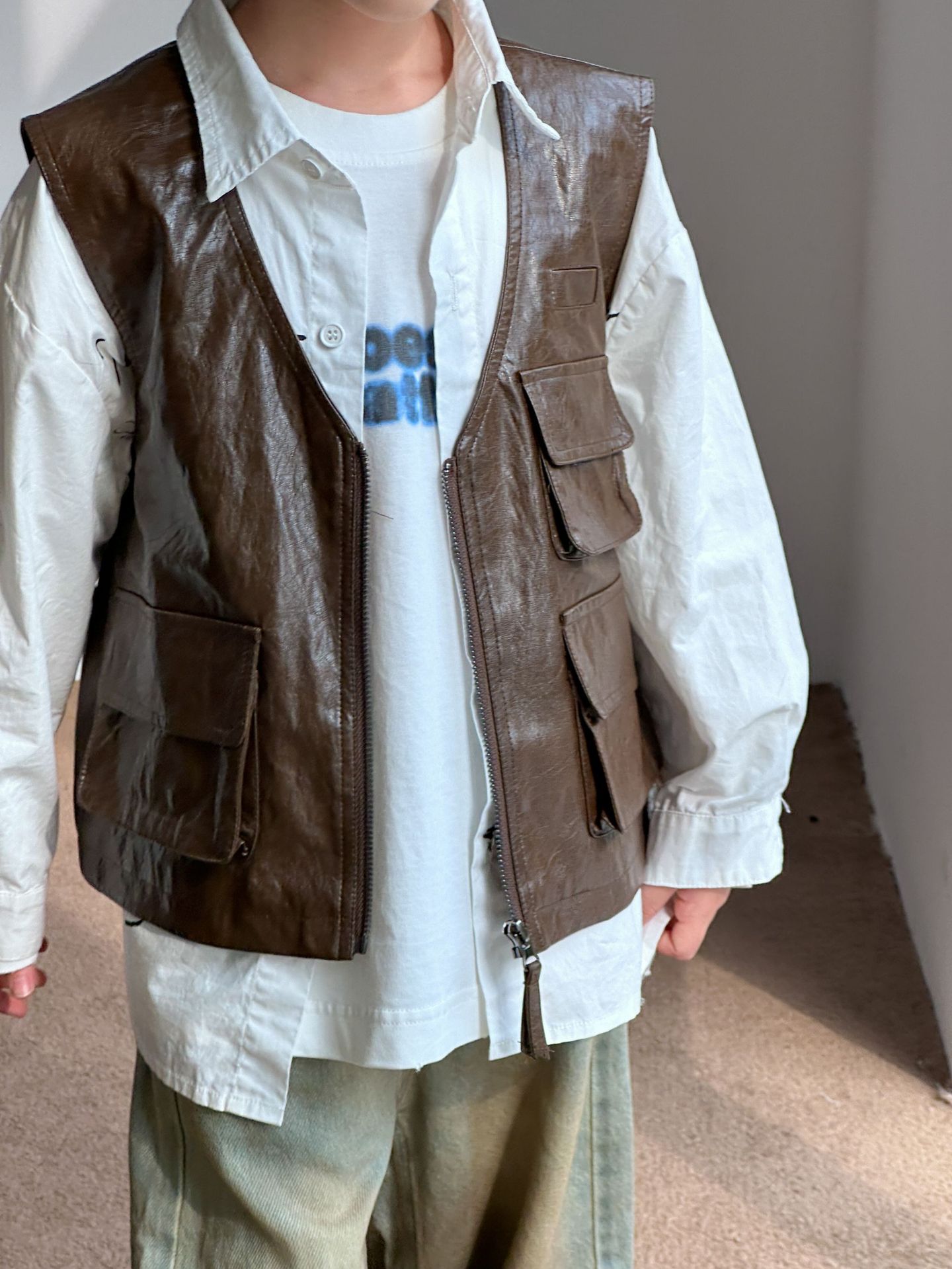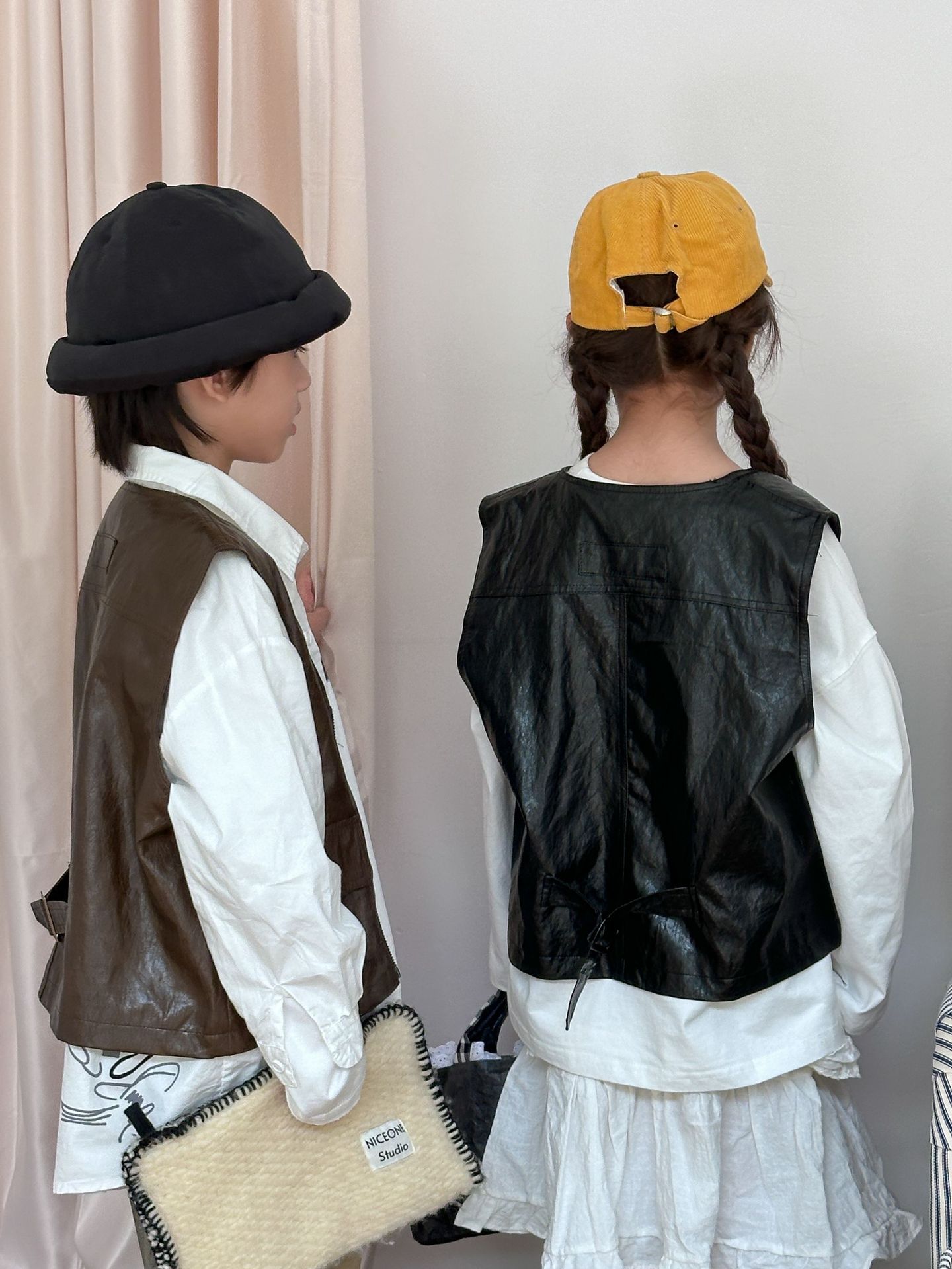 2025 봄 새로운 한국어 버전 소년과 소녀를위한 어린이 잘 생긴 가죽 조끼 중공업 입체 가방 양복 조끼 조끼 유행 스타일스토어 가기
