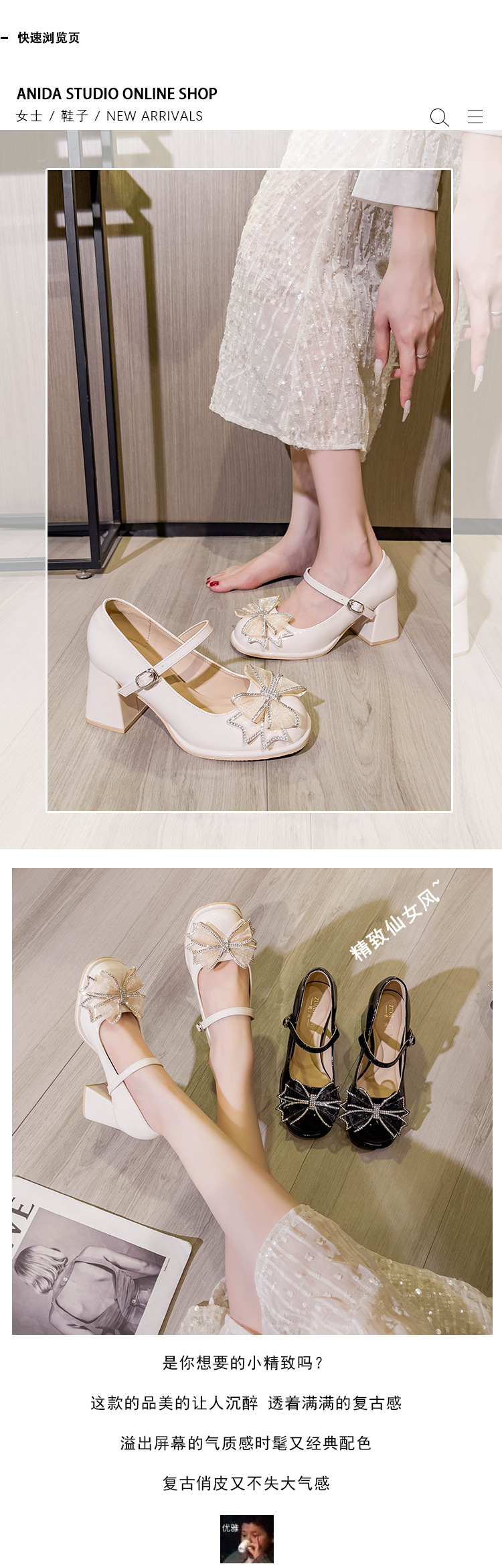 MZ-19 프렌치 메리 제인 신발 여성용 스몰 사이즈 두꺼운 하이힐 페어리 스타일 싱글 신발 플러스 사이즈 뚱뚱한 발 넓은 발 43 45스토어 가기