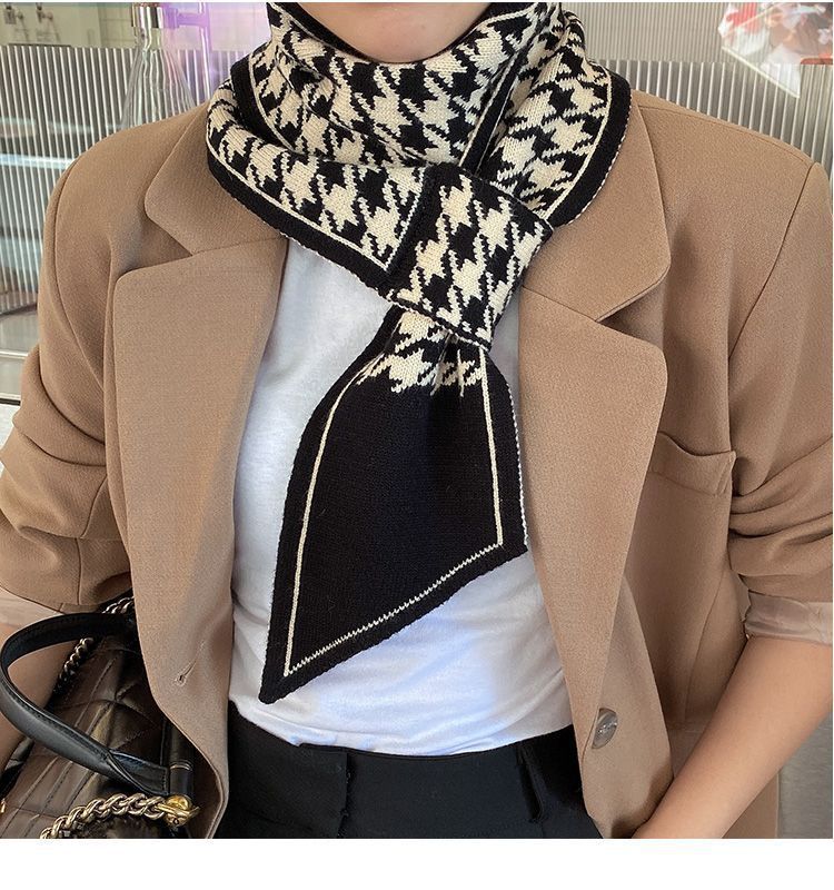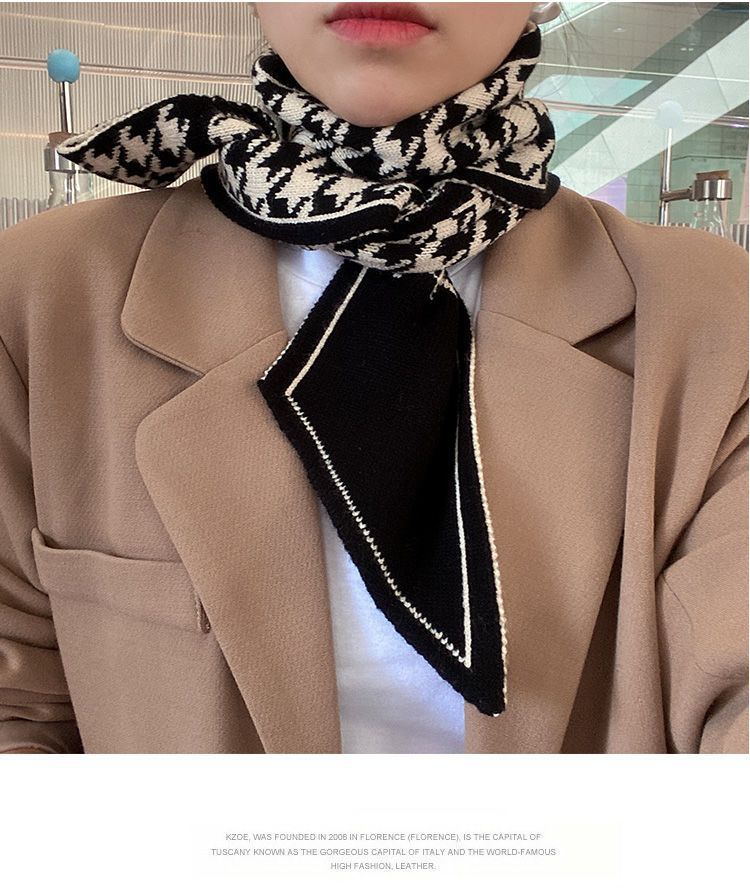 Houndstooth 스카프 여성의 겨울 새로운 분위기 게으른 작은 스카프 하이 엔드 레트로 다목적 포인팅 스카프