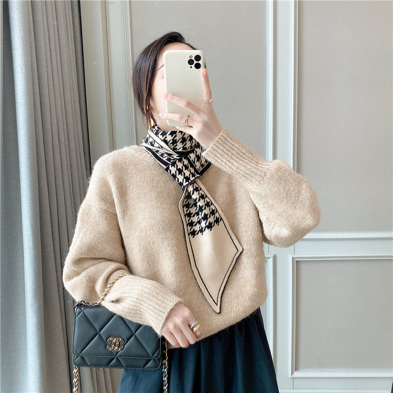 Houndstooth 스카프 여성의 겨울 새로운 분위기 게으른 작은 스카프 하이 엔드 레트로 다목적 포인팅 스카프스토어 가기