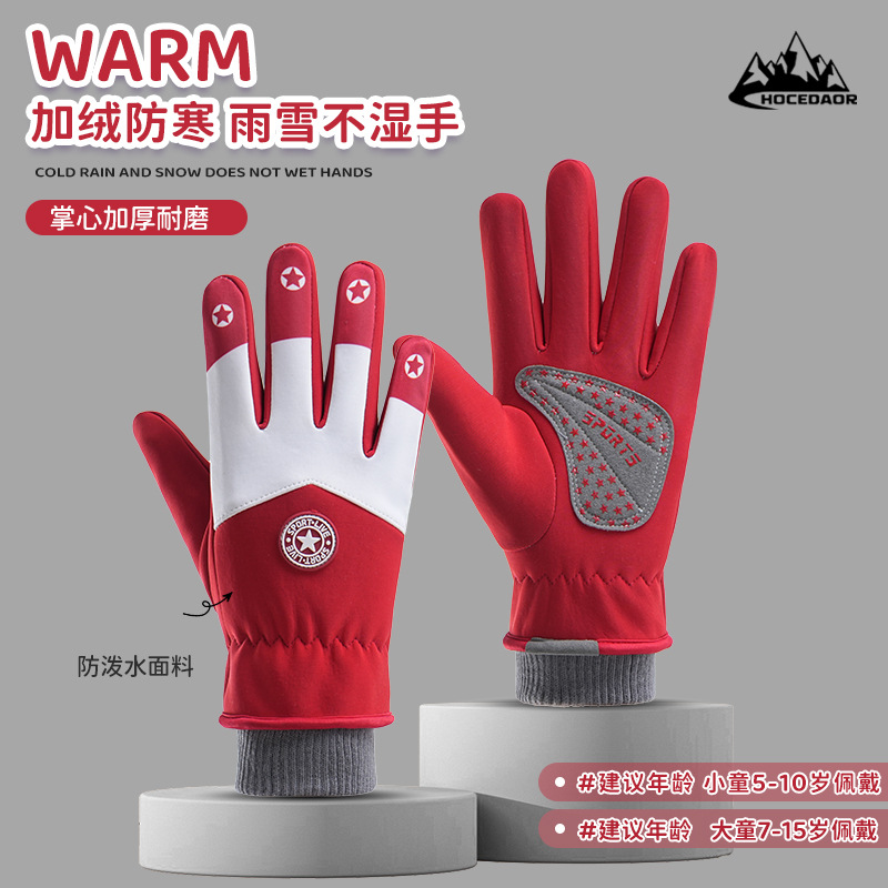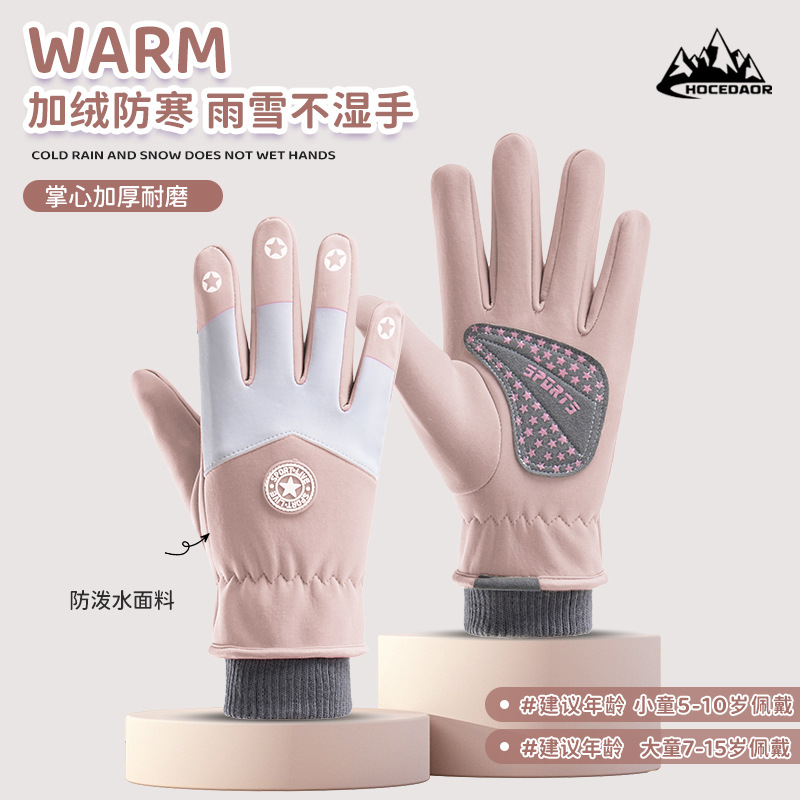 어린이 겨울 장갑 새로운 야외 방수 기모 두꺼운 따뜻한 만화 남성과 여성의 스키 장갑 도매