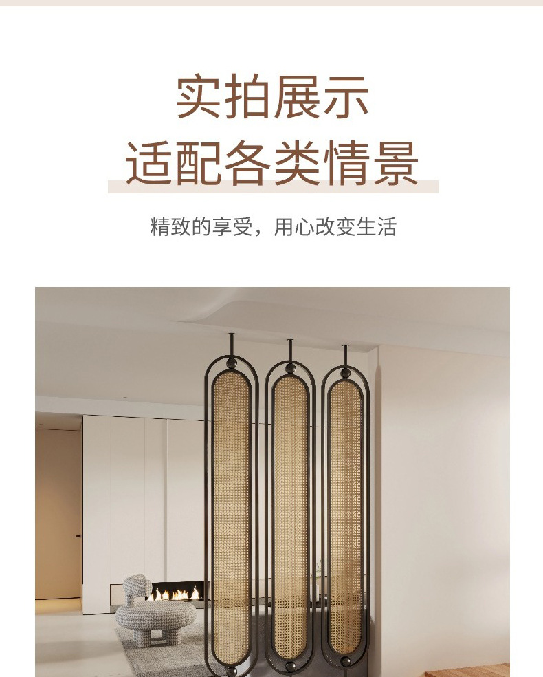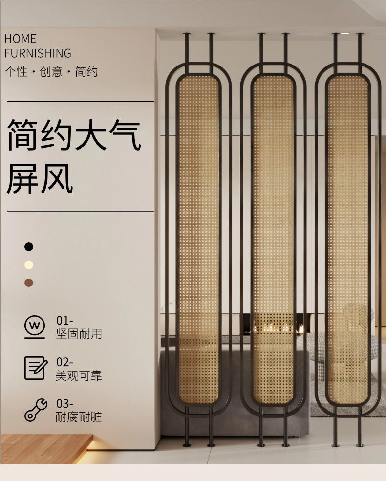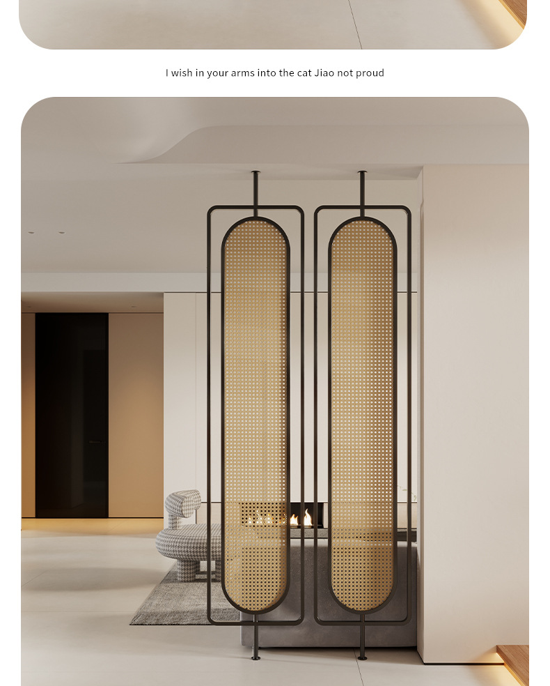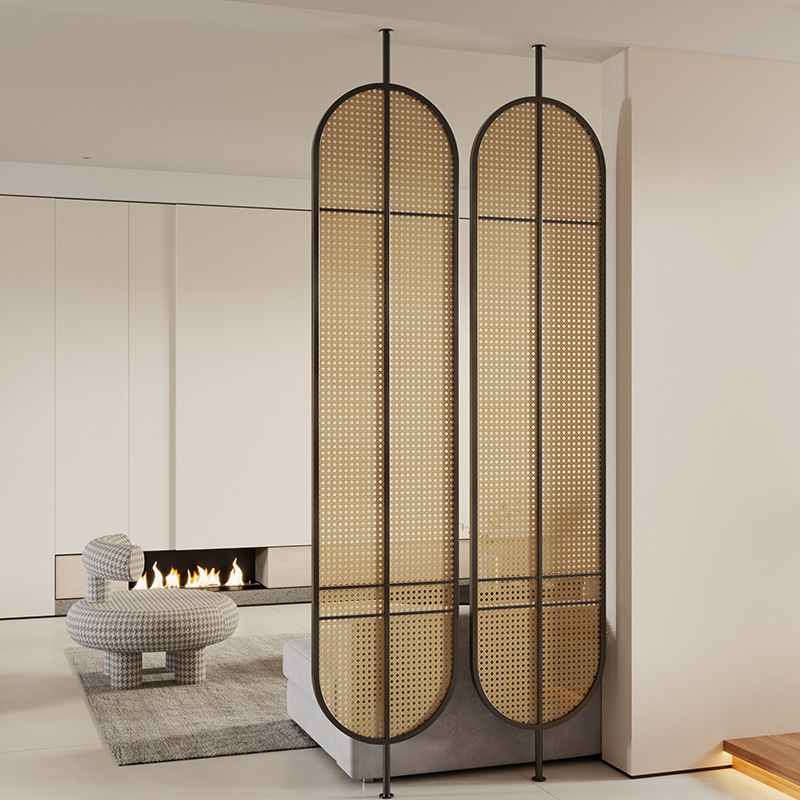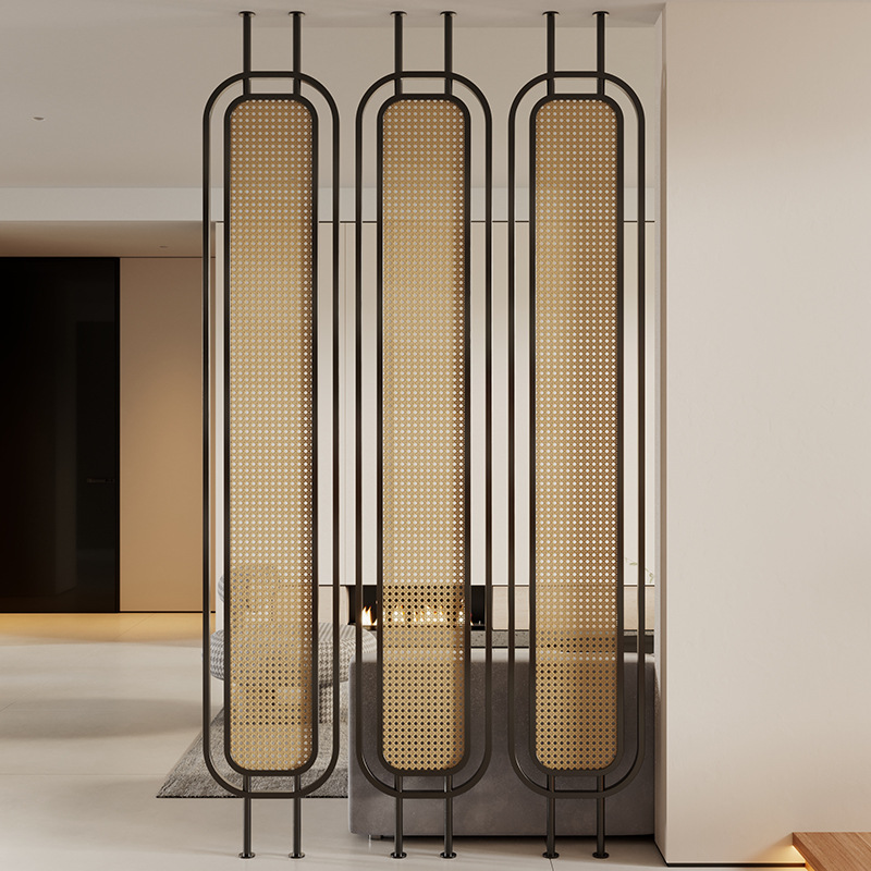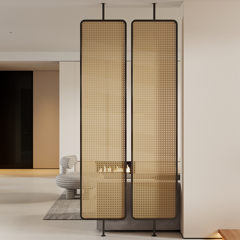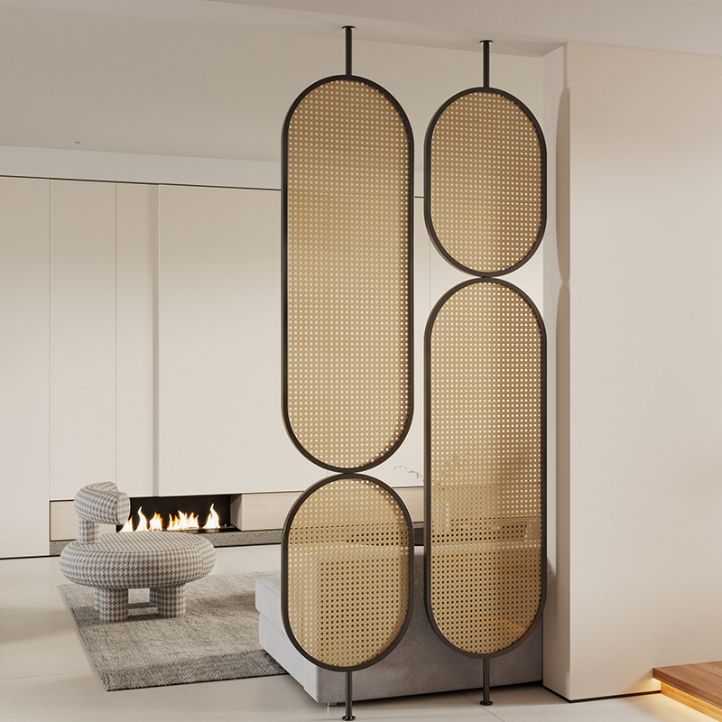 거실용 등나무 유리 스크린 파티션 2024 새로운 입구 문 차단 현관 단순하고 현대적인 와비사비 스타일 복고풍