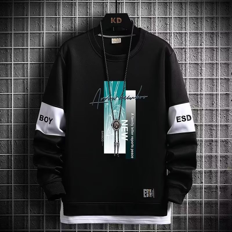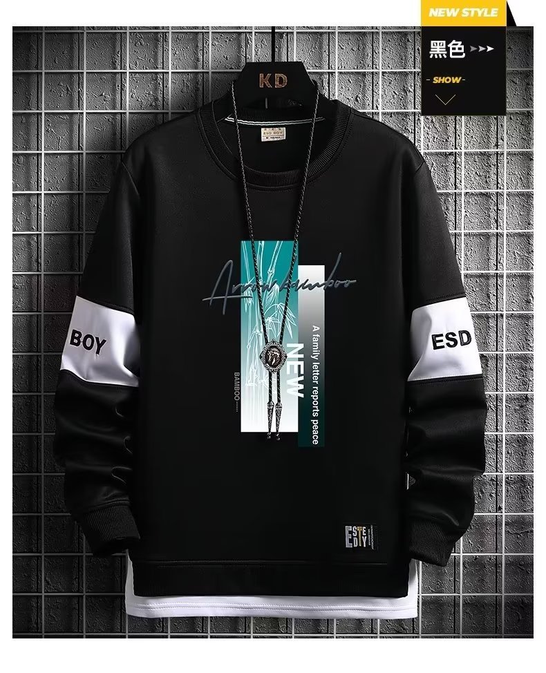 긴 소매 티셔츠 남자의 둥근 목 스웨터 패션 브랜드 2023 새로운 봄과 가을베이스 셔츠 십대 탑 옷