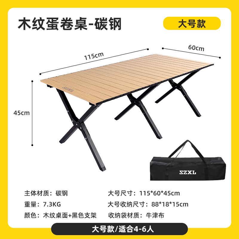 3 개의 작은 당나귀 야외 탄소 강철 접이식 테이블 피크닉 테이블 캠핑 테이블 장비 계란 롤 테이블 필드 캠핑 전체 용품 세트스토어 가기