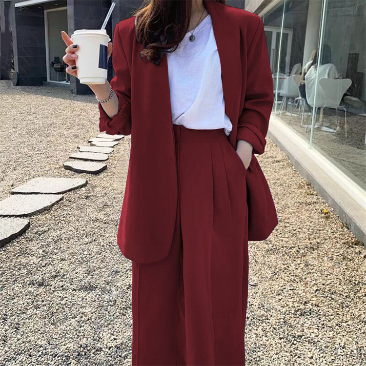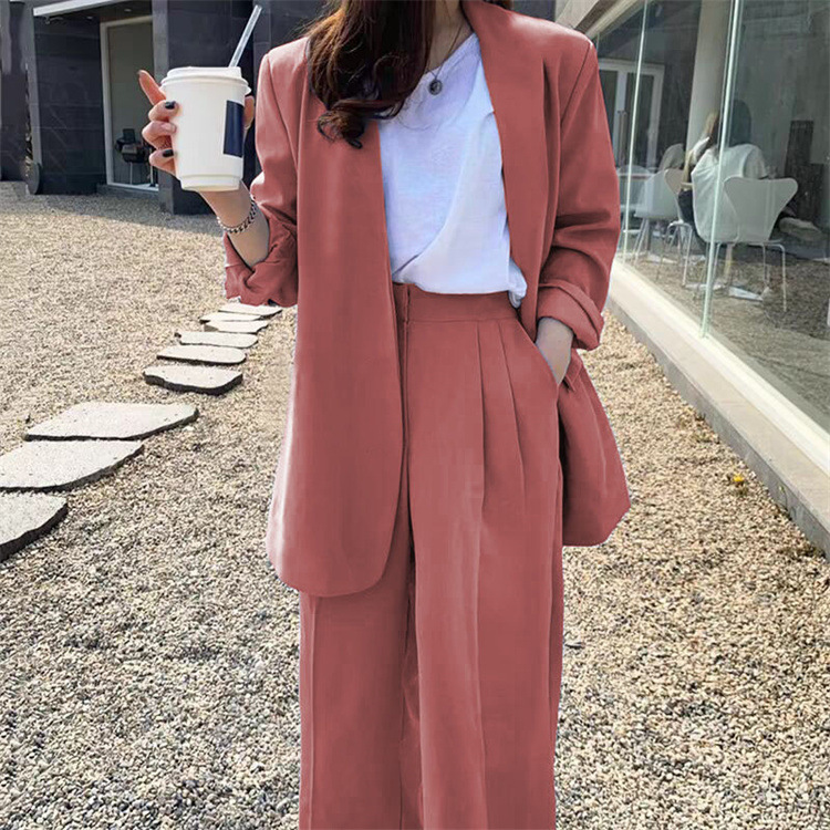 여성을위한 넓은 다리 바지 정장 봄, 가을 한국 스타일 패션 기질 영국 스타일 캐주얼 스트리트 전문 작은 정장스토어 가기