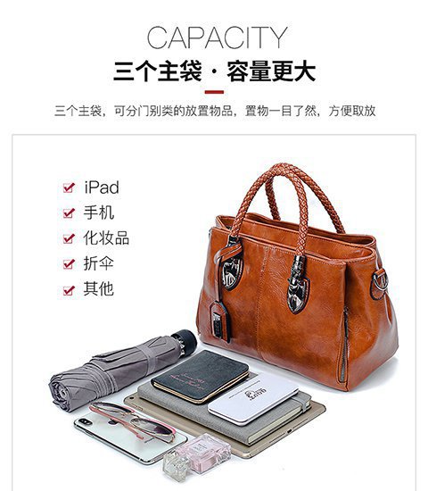 유럽과 미국의 복고풍 여성 가방 트렌드 대외 무역 오일 왁스 가죽 새로운 국경 휴대용 어깨 메신저 가방 글로벌 세대의 머리카락스토어 가기
