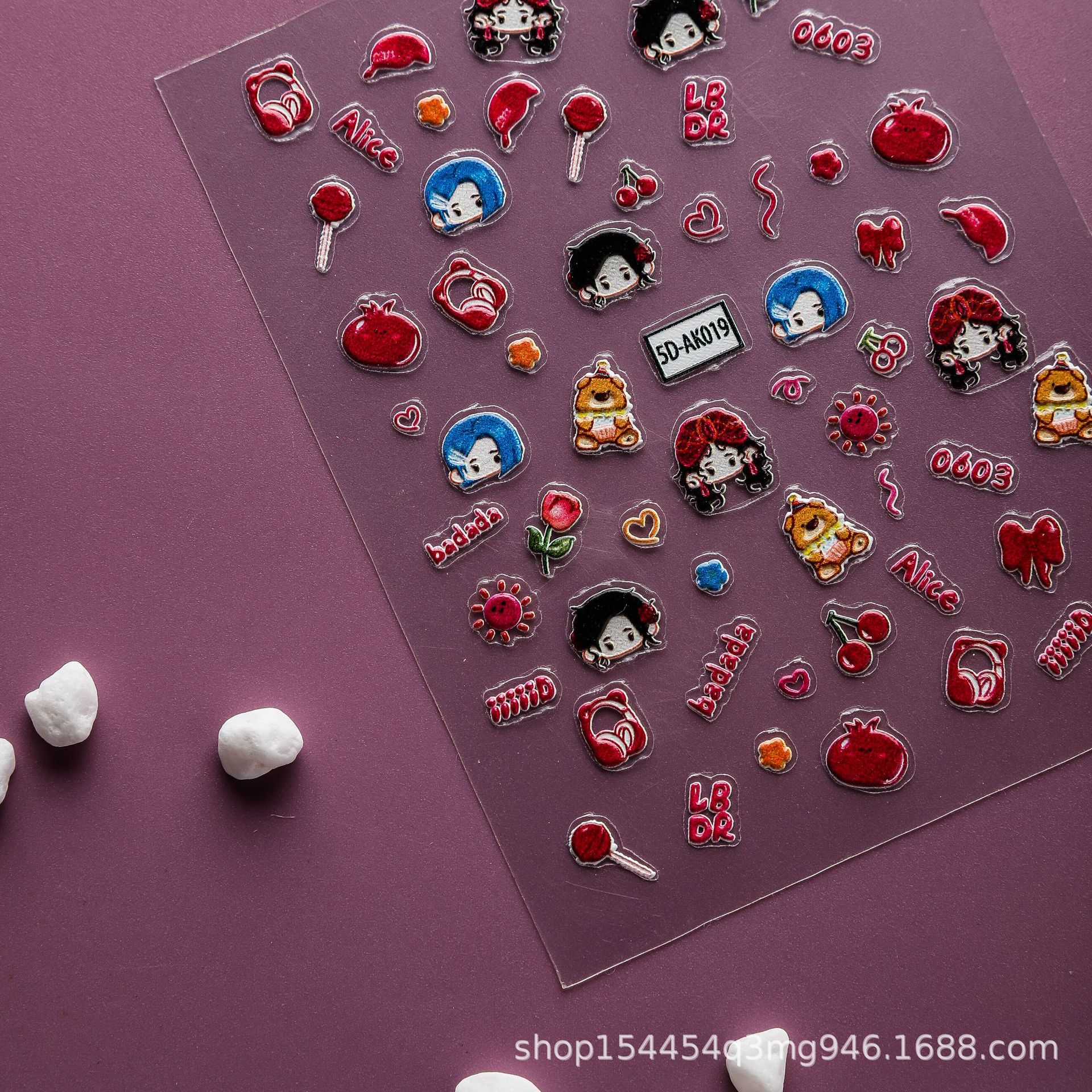 [공장 직접] 5D 구호 3 차원 네일 스티커 귀여운 만화 애니메이션 장식 스티커 diy 게으른 매니큐어