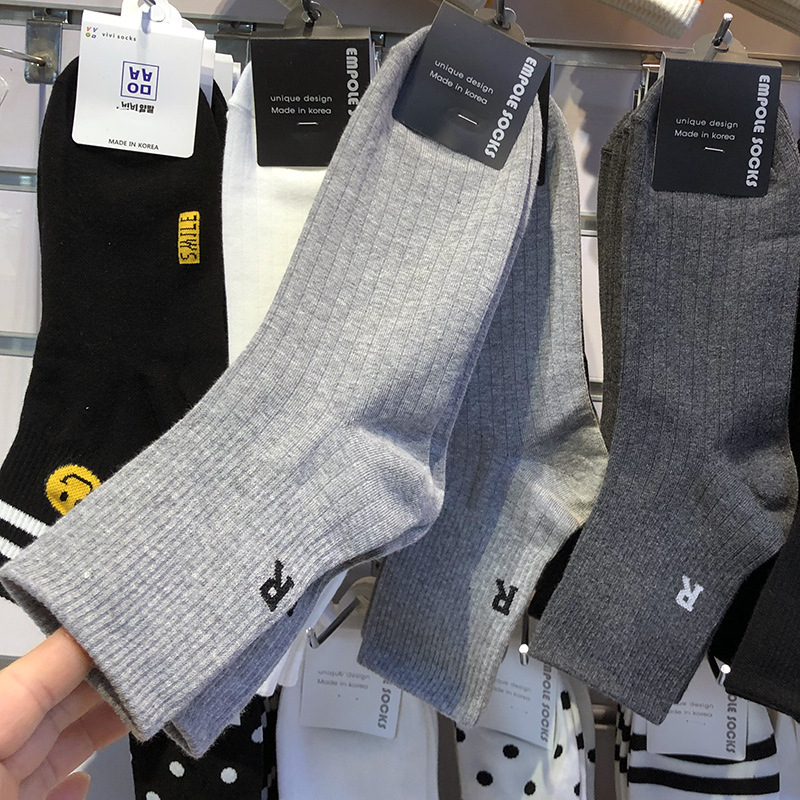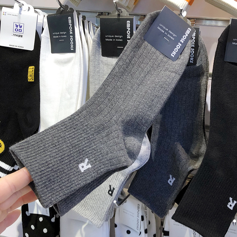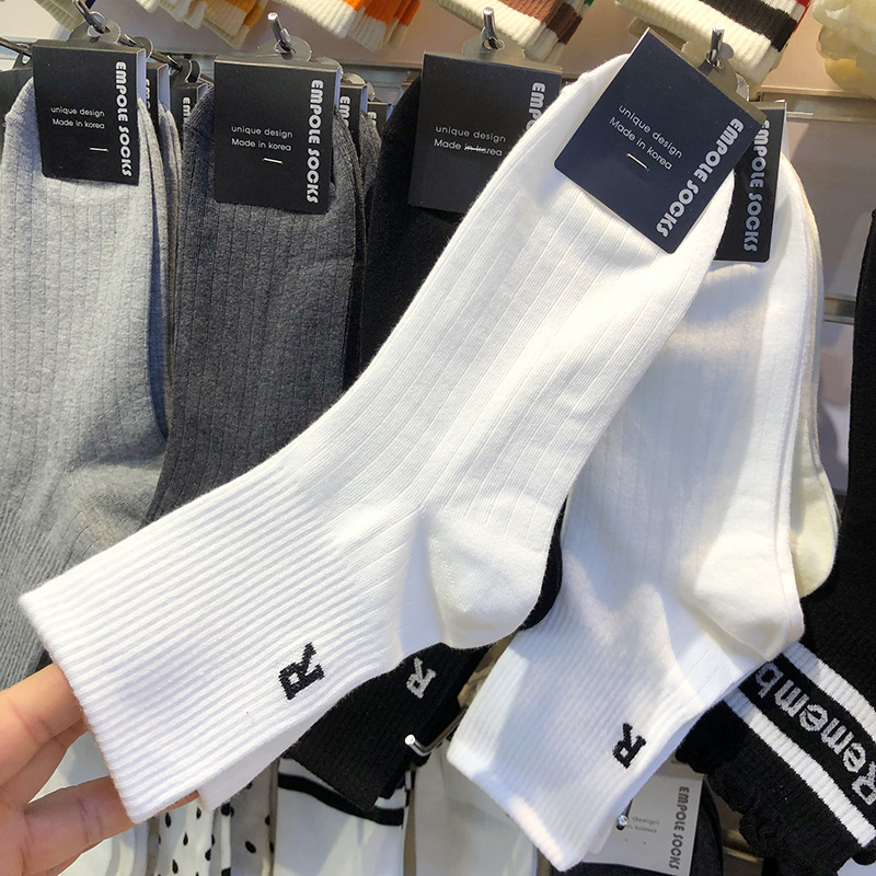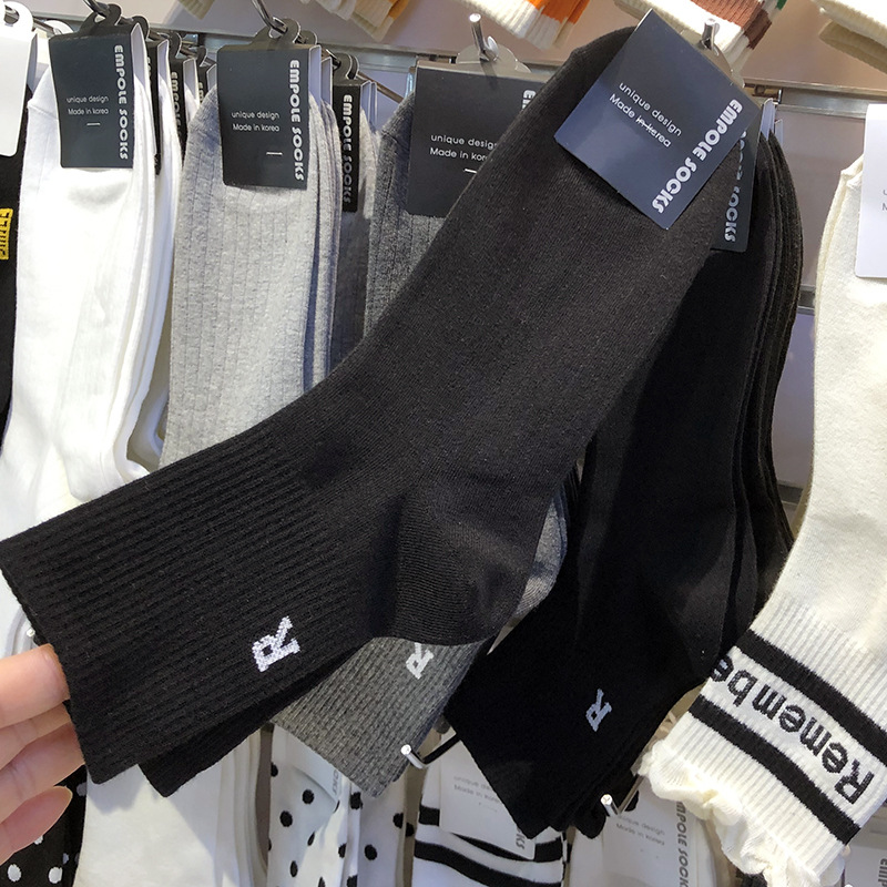 한국 EMPOLE 양말 가을 새 편지 R 유행 남성 양말 단색 간단한 수직 스레드 중간 튜브 비즈니스 면 양말스토어 가기