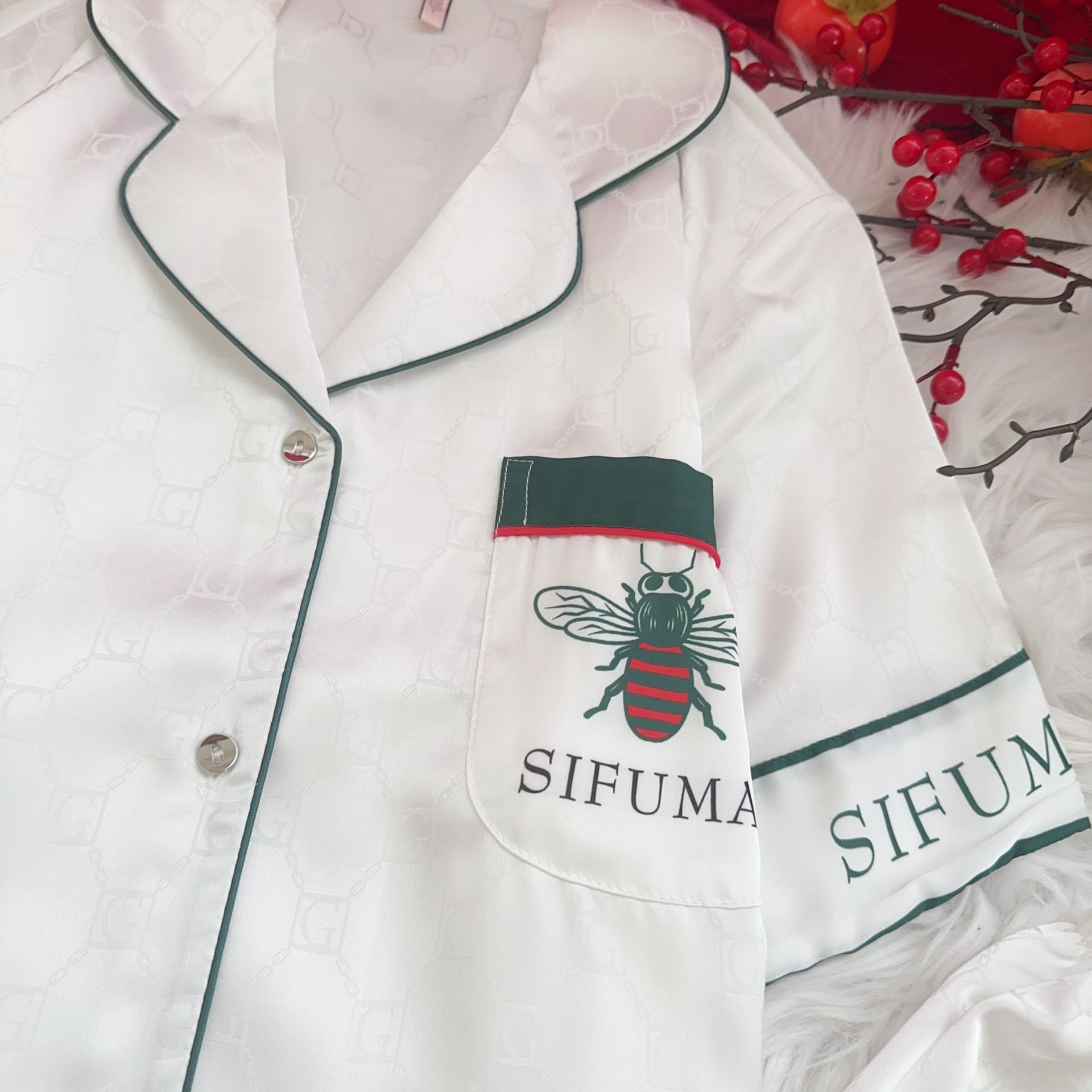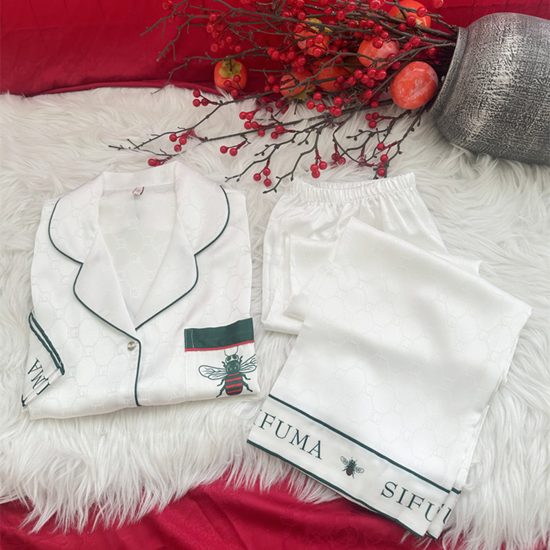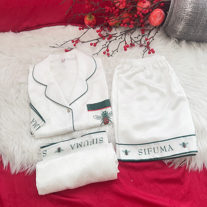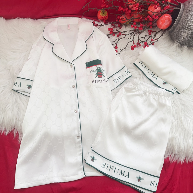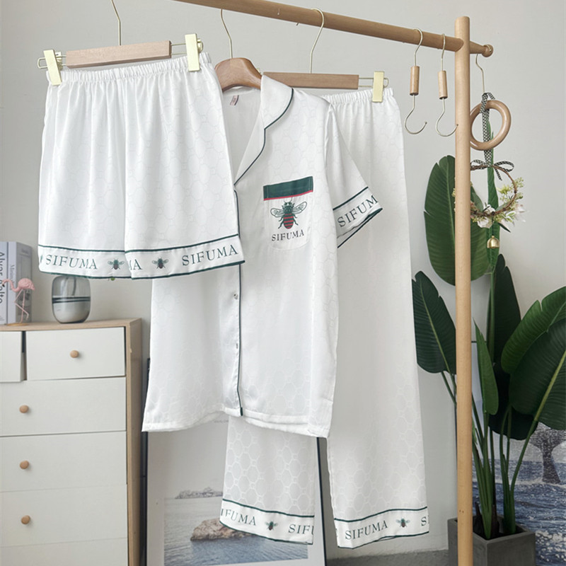 패셔너블하고 고급스러운 남성용 아이스 실크 잠옷, 봄 여름 3피스 세트, 커플용 반팔 화이트 고급 홈웨어스토어 가기