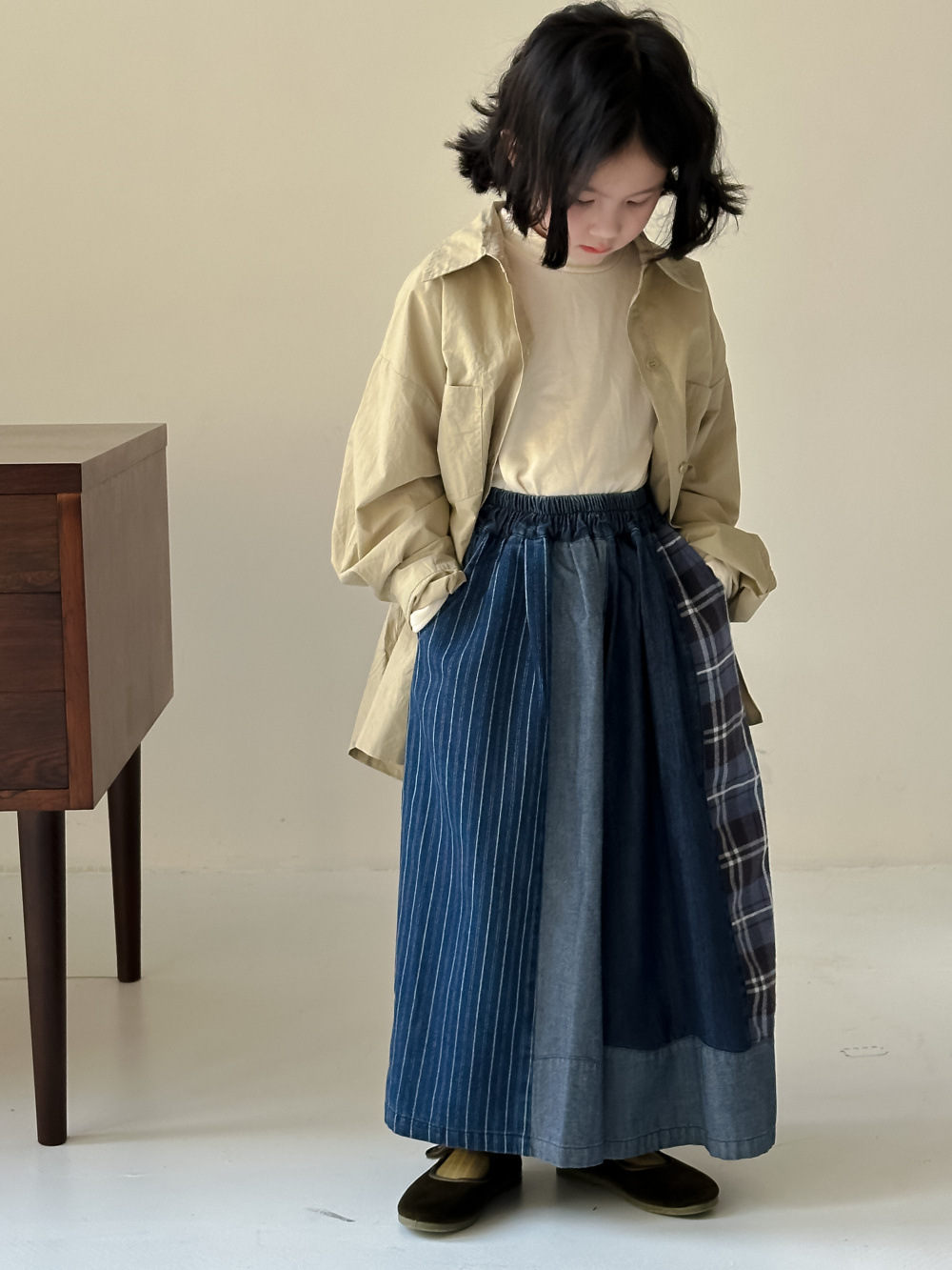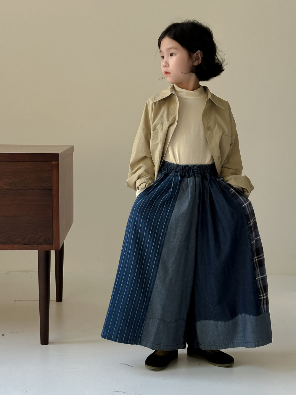 • 데님 패치 워크 스트레이트 다리 바지