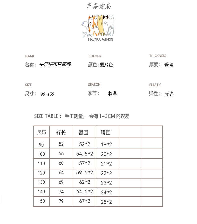어린이 바지 봄 스타일 아기 소녀 한국어 스타일 패치 워크 격자 무늬 데님 스트레이트 바지 어린이 캐주얼 느슨한 넓은 다리 바지