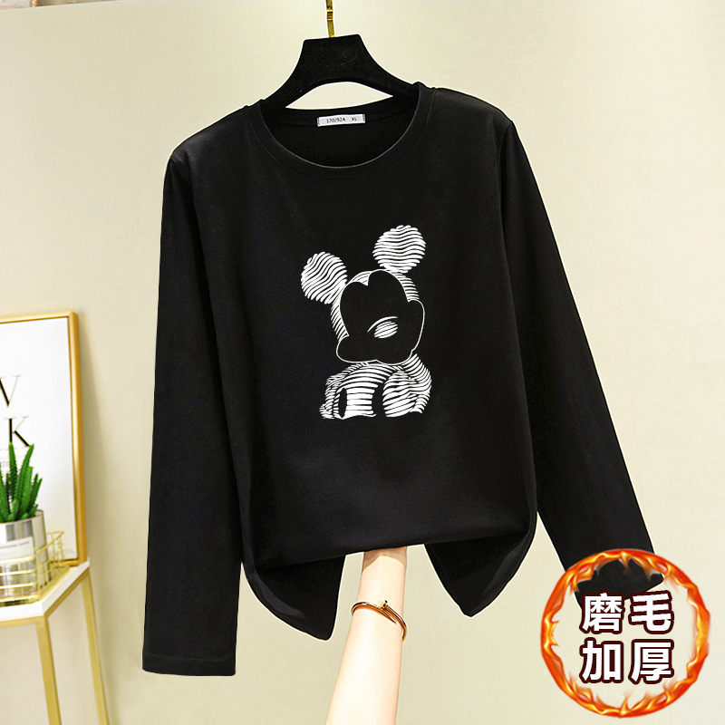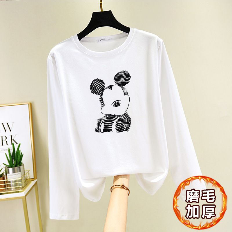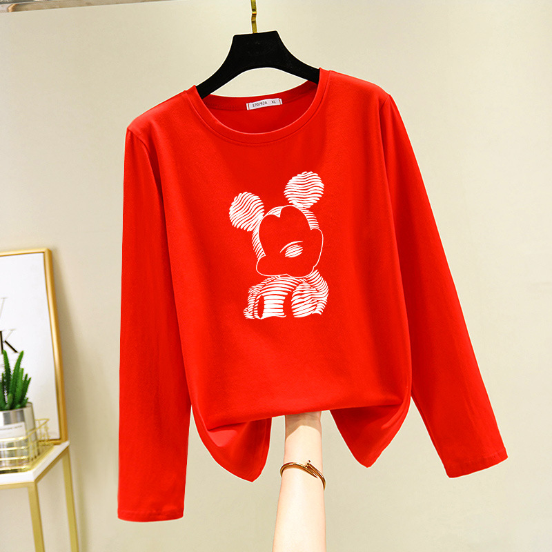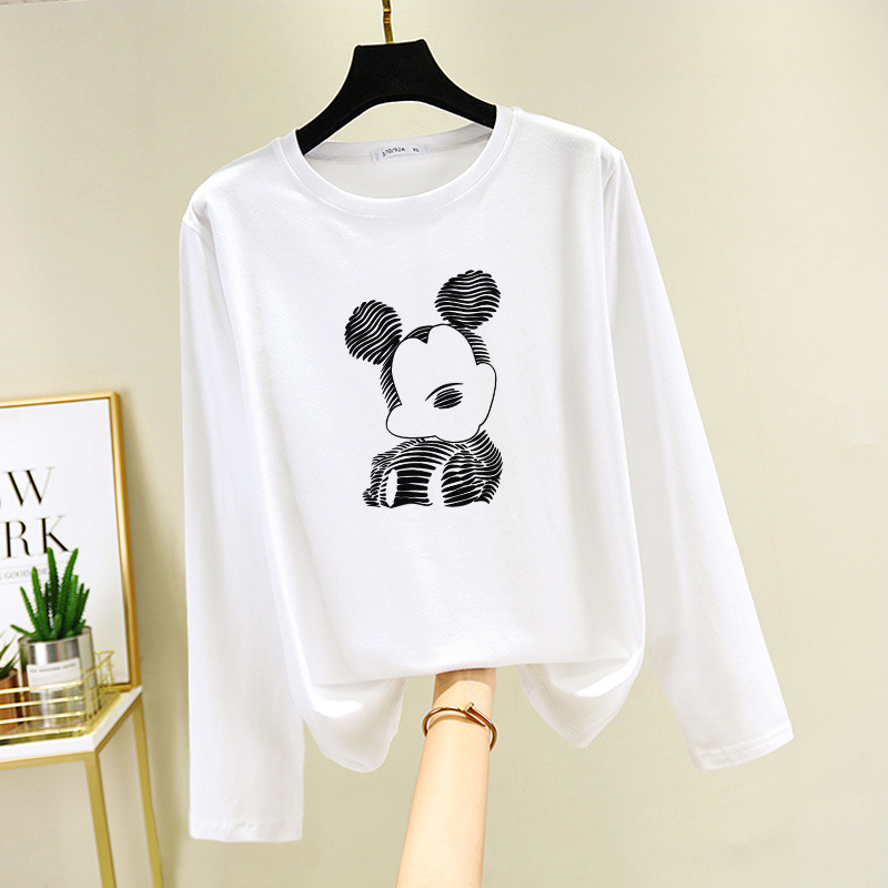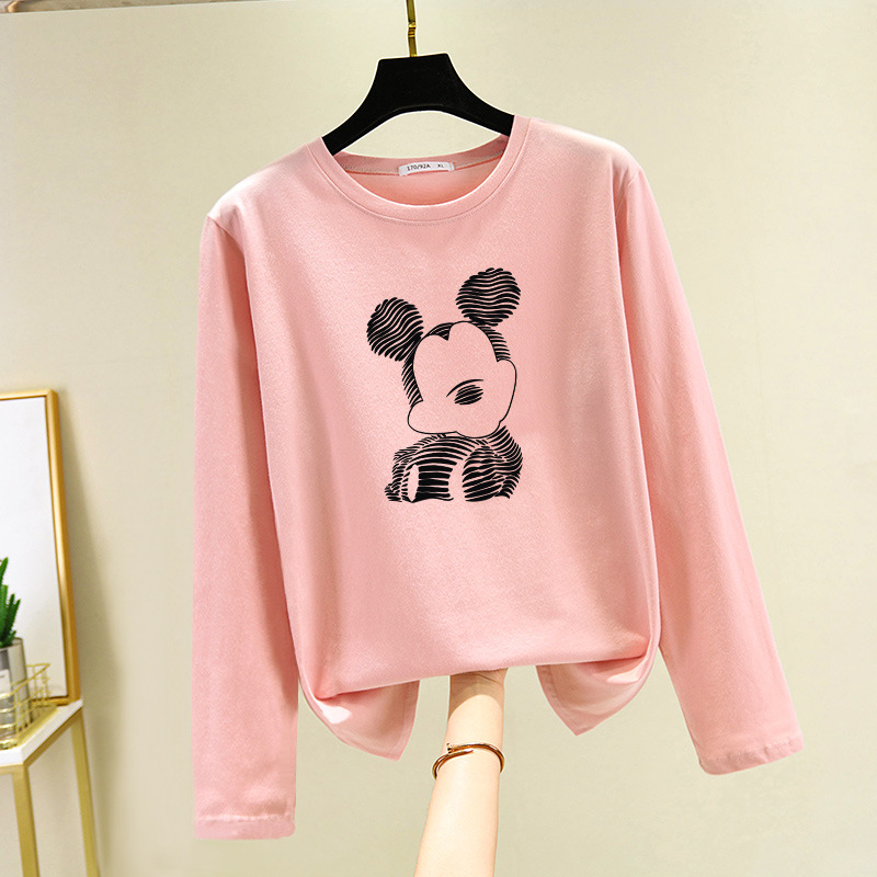 면 긴 소매 티셔츠 여성의 2024 새로운 폭발 플러스 사이즈 여성 서양식 탑 봄과 가을 내베이스 셔츠 초가을