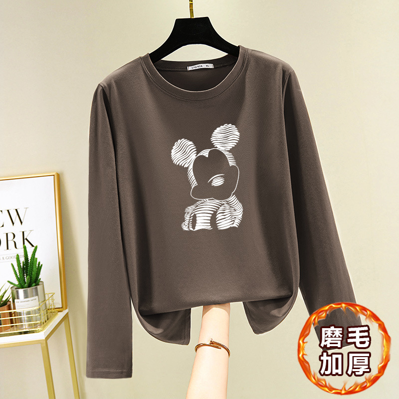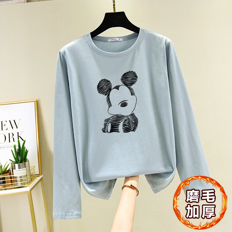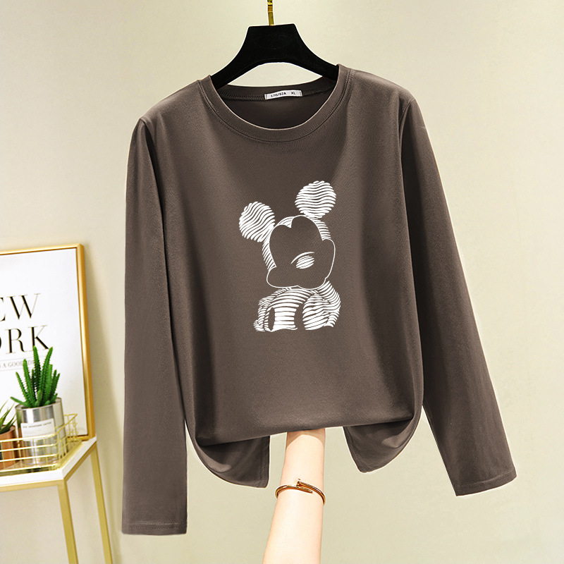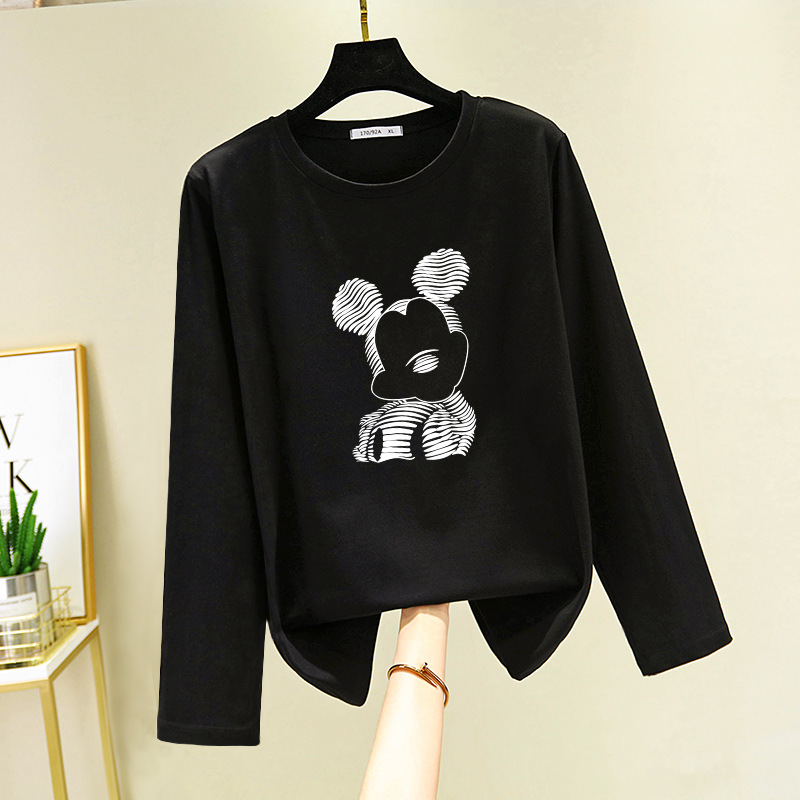 면 긴 소매 티셔츠 여성의 2024 새로운 폭발 플러스 사이즈 여성 서양식 탑 봄과 가을 내베이스 셔츠 초가을스토어 가기