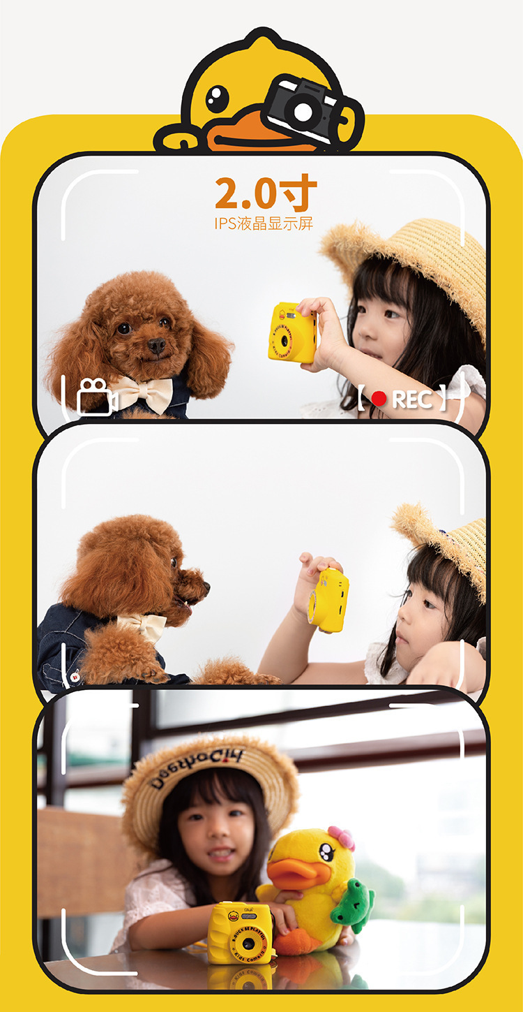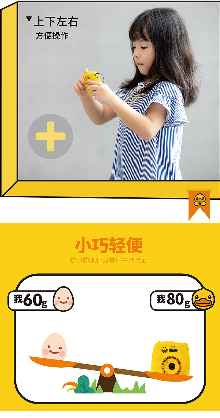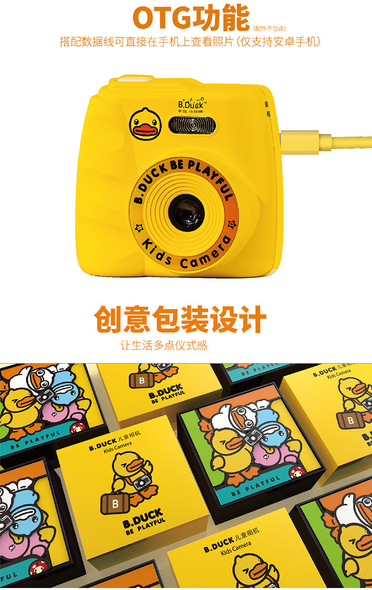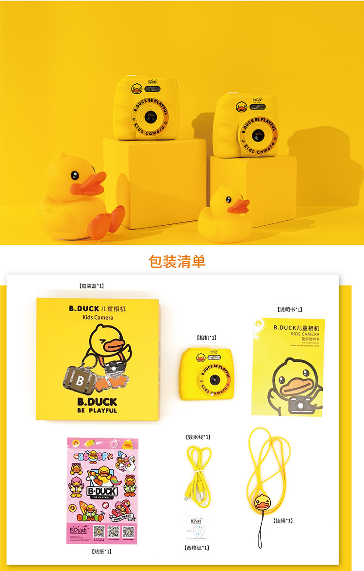 B. 오리 작은 노란색 오리 어린이 디지털 카메라 만화 클래퍼 셀카 작은 게임 아기 장난감 카메라