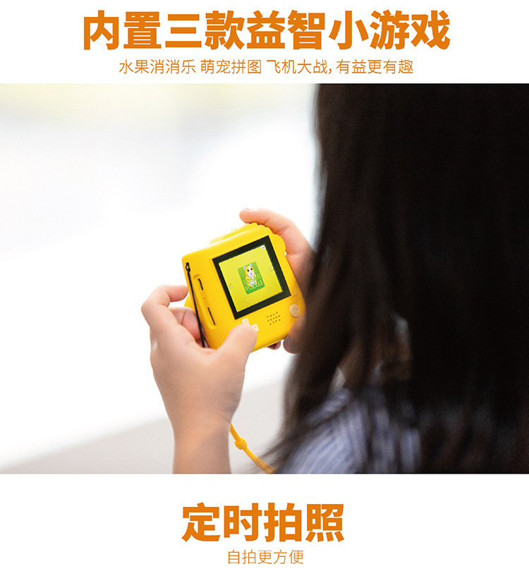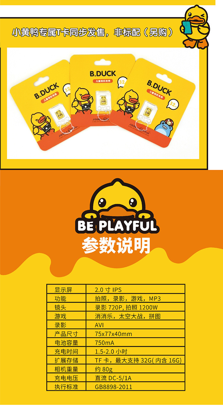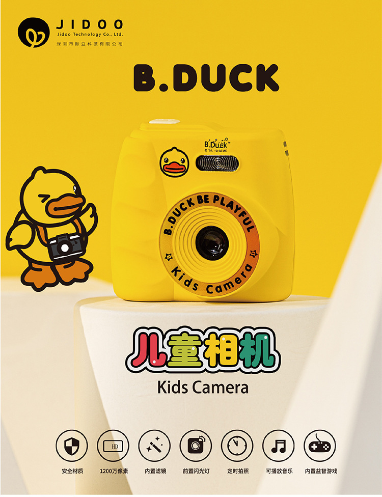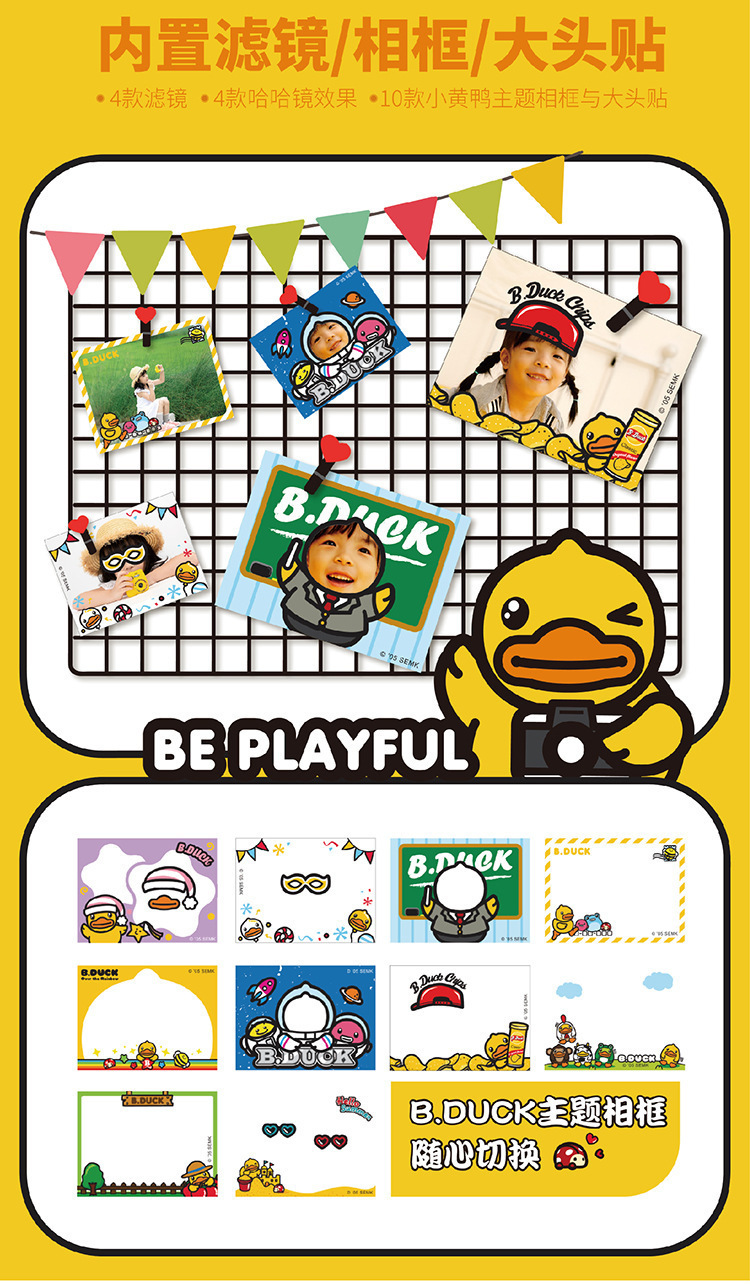 B. 오리 작은 노란색 오리 어린이 디지털 카메라 만화 클래퍼 셀카 작은 게임 아기 장난감 카메라