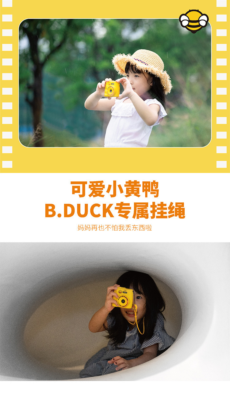 B. 오리 작은 노란색 오리 어린이 디지털 카메라 만화 클래퍼 셀카 작은 게임 아기 장난감 카메라스토어 가기