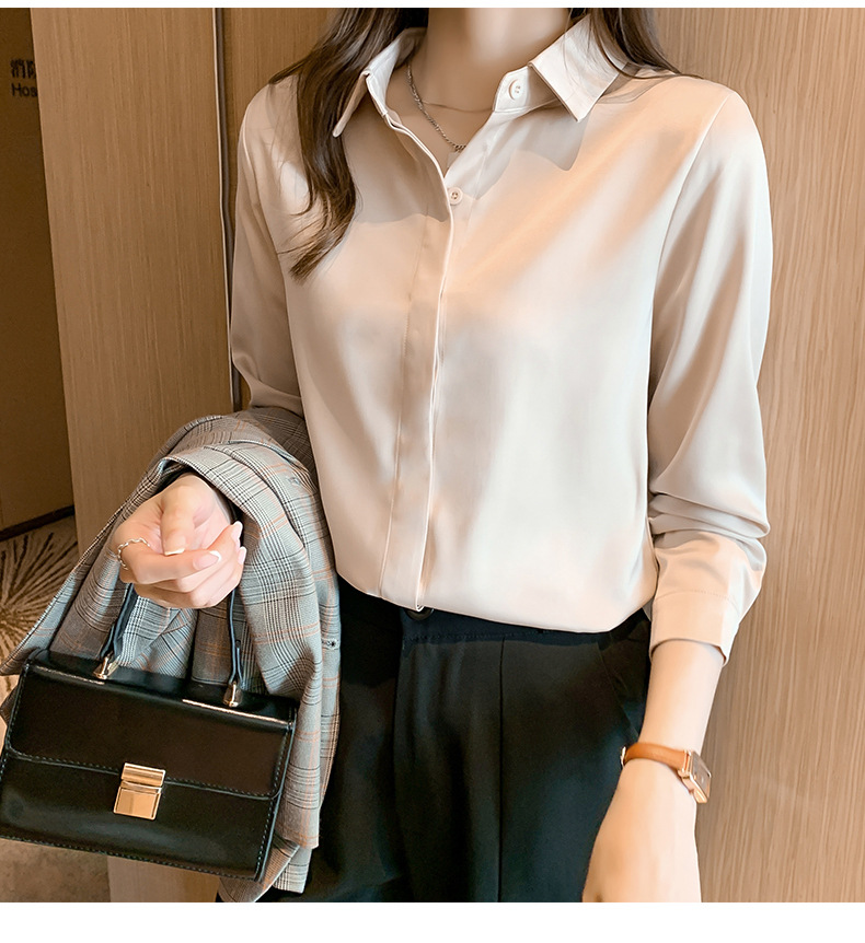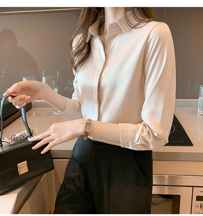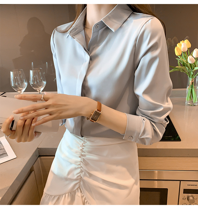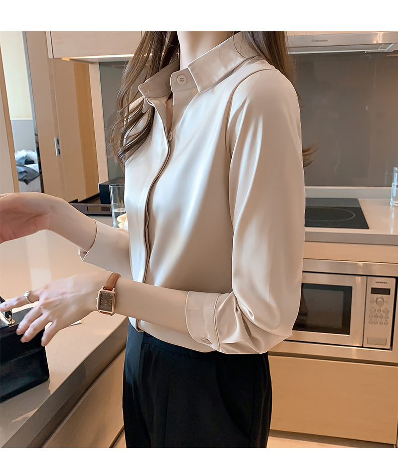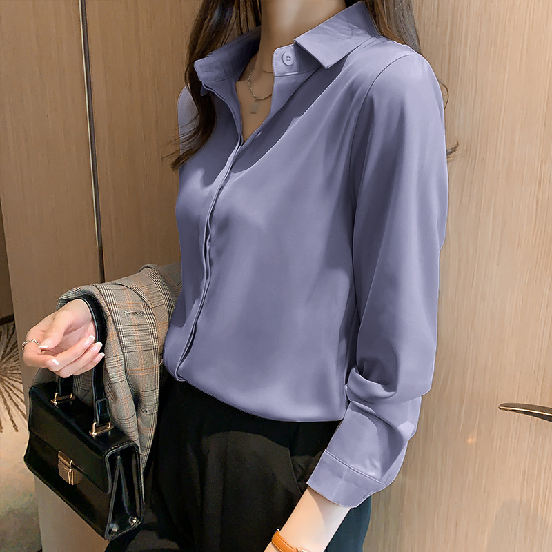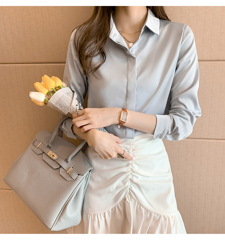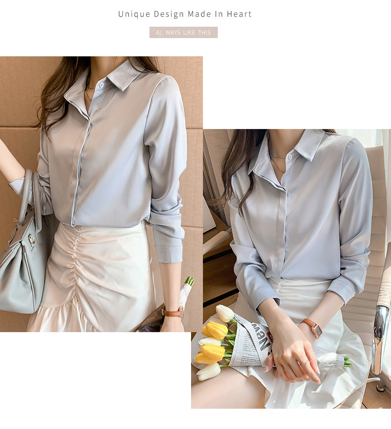 8195 패션 여성 긴팔 셔츠, 오피스룩, 새로운 스타일, 다용도, 아세테이트 새틴 셔츠, 여성용 아우터웨어스토어 가기