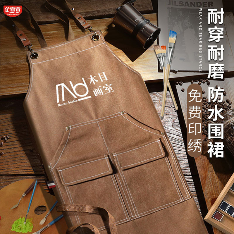 고급 두꺼운 방수 캔버스 바리 스타 앞치마 로고 밀크 티 샵 바 바텐더 장인 작업복