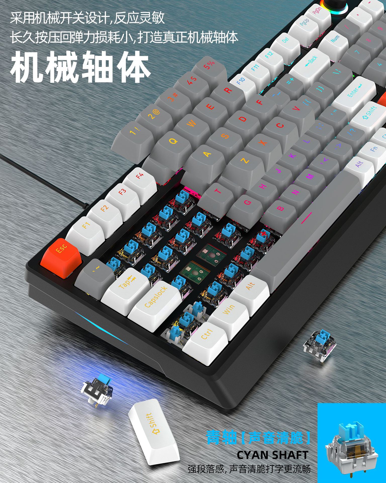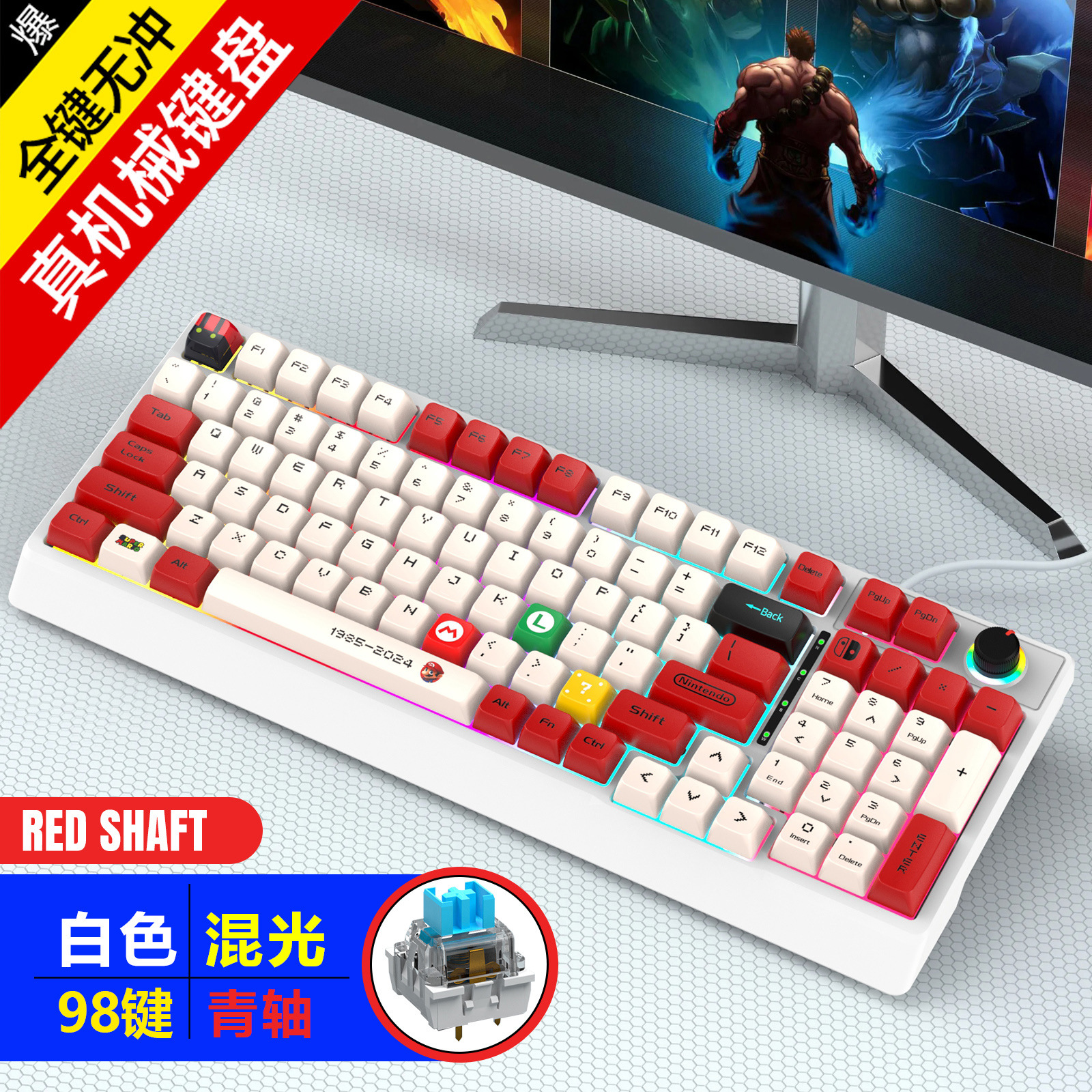 공장 새로운 유선 기계 키보드 K98 마리오 키캡 98 키 RGB 라이트 그린 샤프트 E 스포츠 게임 주변 장치