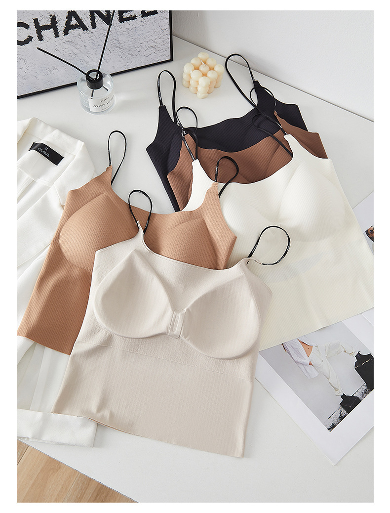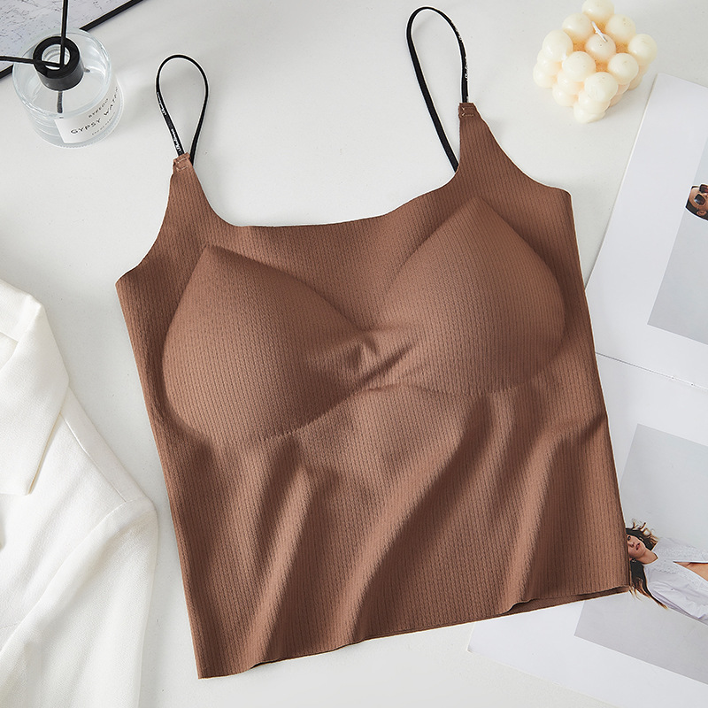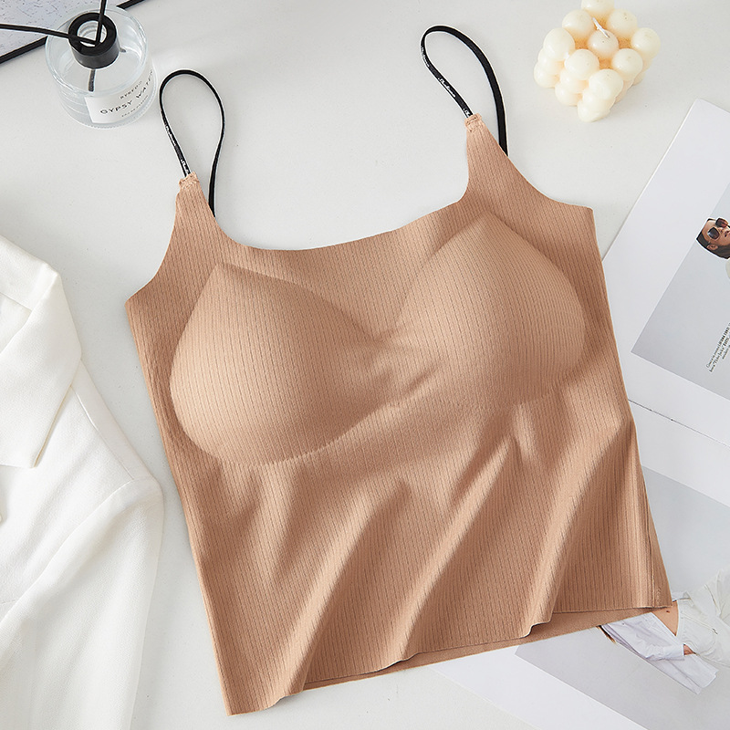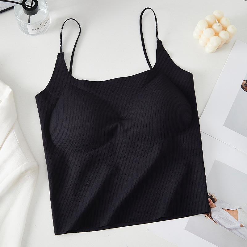새로운 아이스 실크 카미 솔 조끼 가슴 패드 원피스 고정 컵 없음 얇은 어깨 스트랩 카미 솔 조끼 여성용스토어 가기