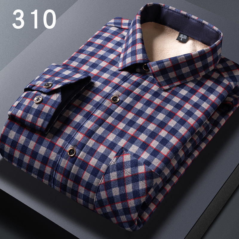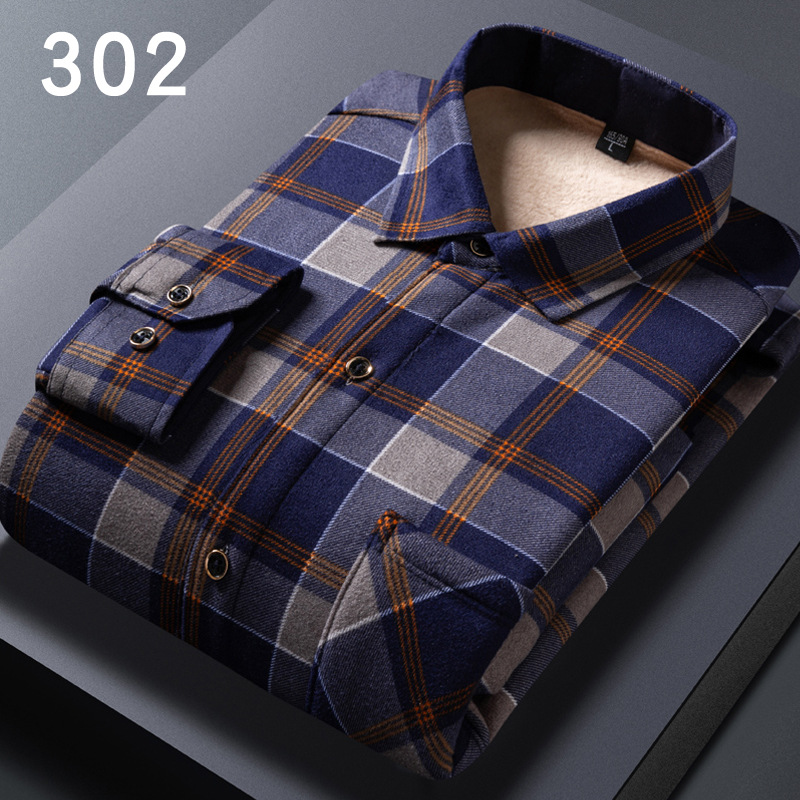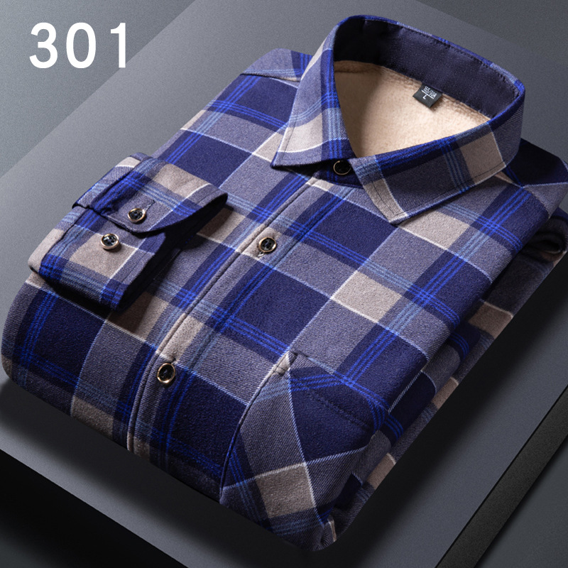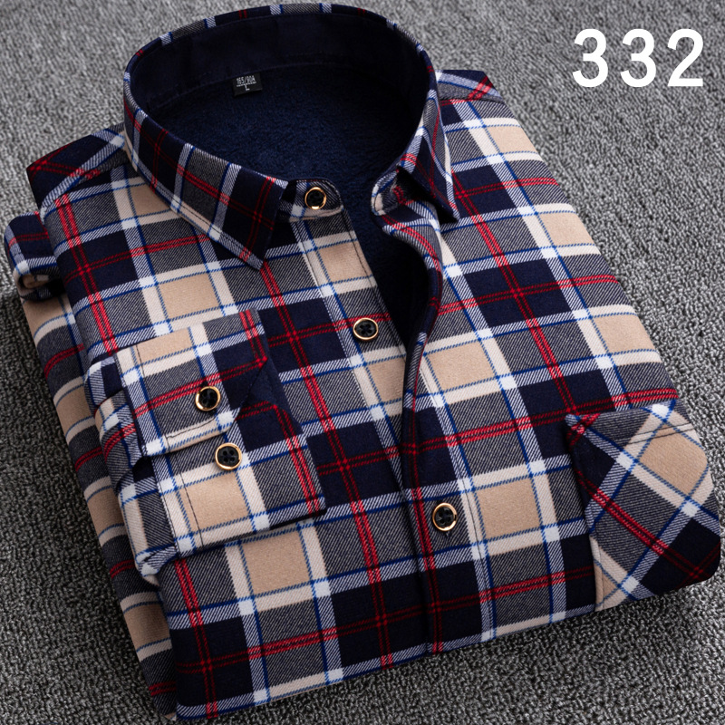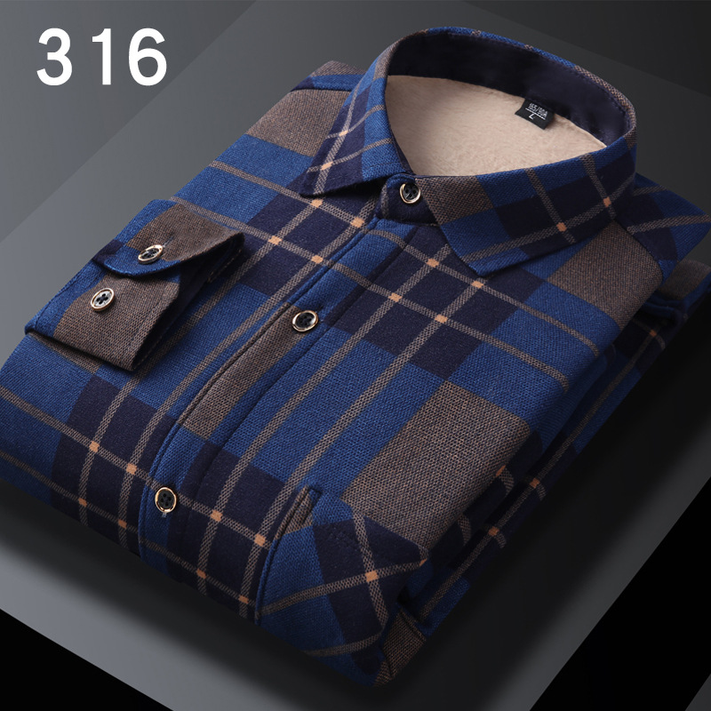 남자 따뜻한 셔츠 기모 두꺼운 긴팔 셔츠 비 다림질 슬림핏 격자 무늬 셔츠 한국식 유행 의류 남성 의류