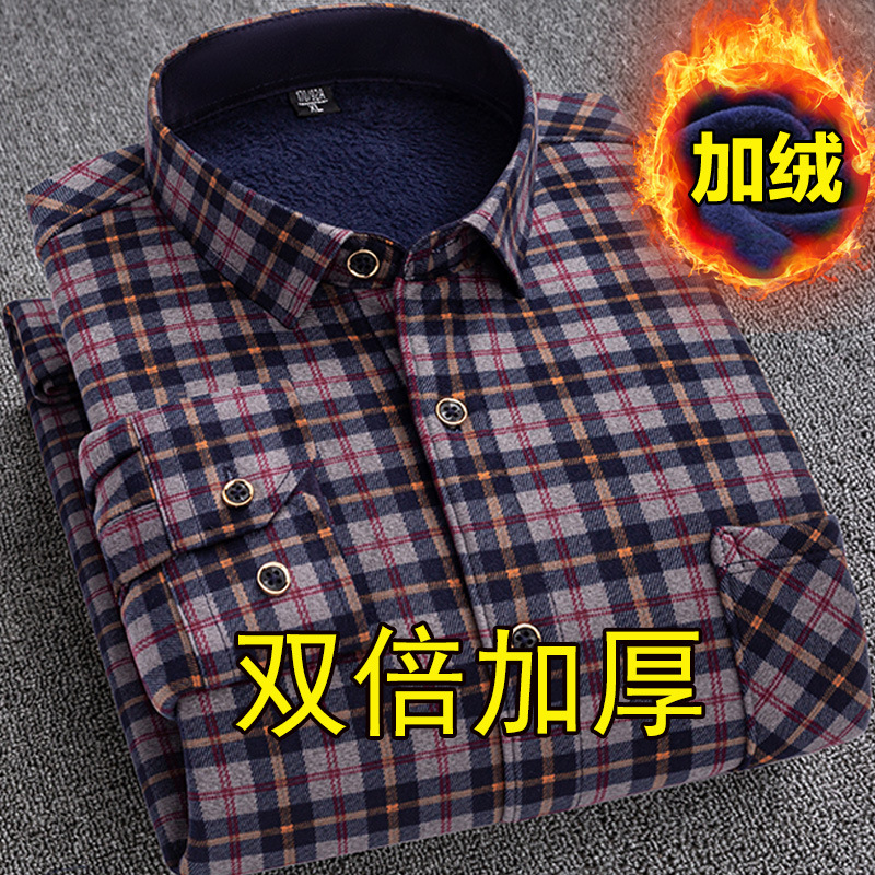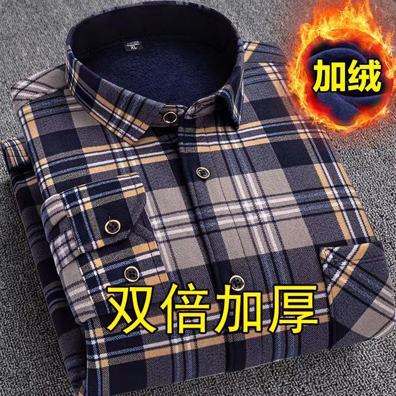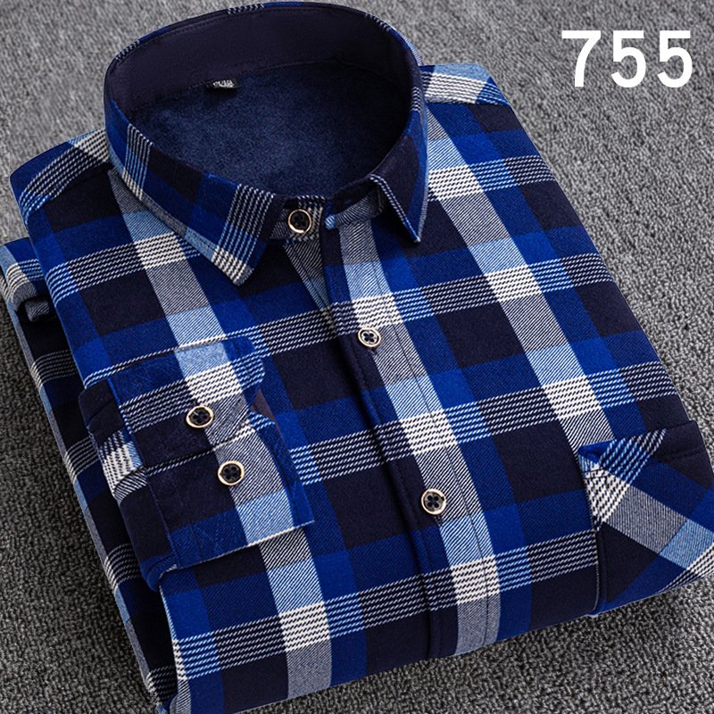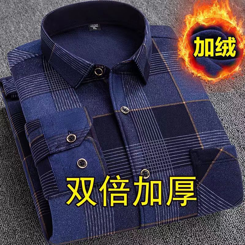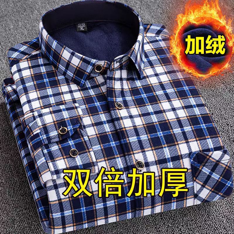 남자 따뜻한 셔츠 기모 두꺼운 긴팔 셔츠 비 다림질 슬림핏 격자 무늬 셔츠 한국식 유행 의류 남성 의류