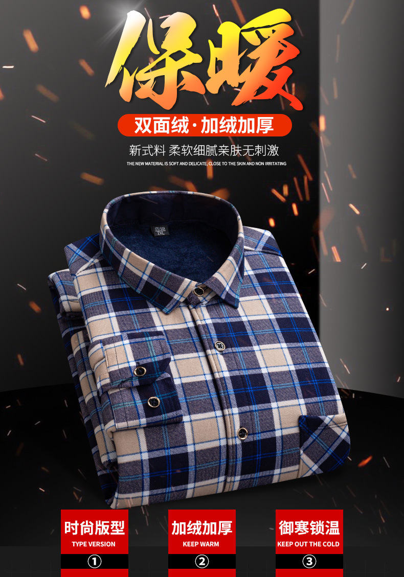 남자 따뜻한 셔츠 기모 두꺼운 긴팔 셔츠 비 다림질 슬림핏 격자 무늬 셔츠 한국식 유행 의류 남성 의류스토어 가기