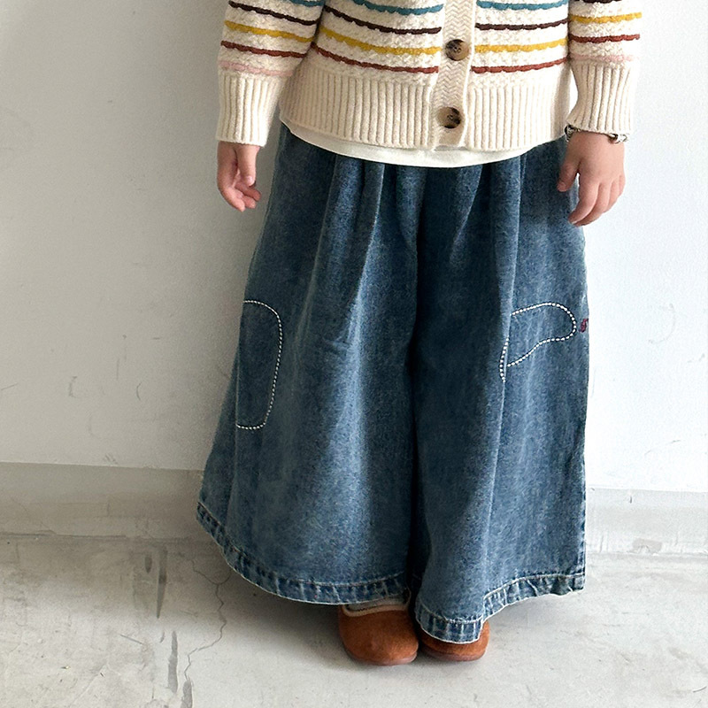 데님 수 놓은 넓은 다리 바지스토어 가기
