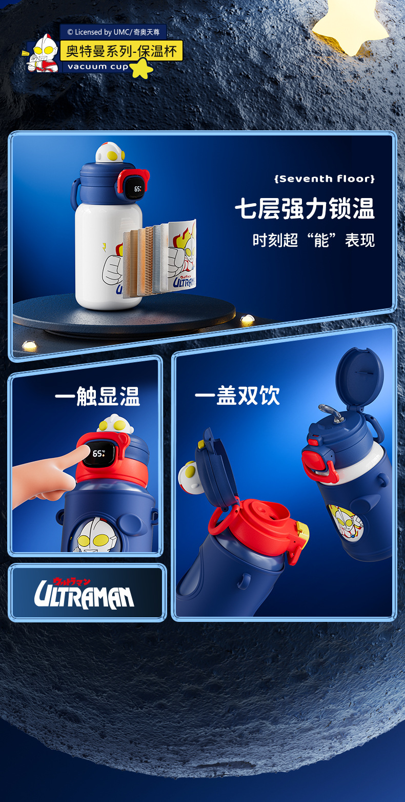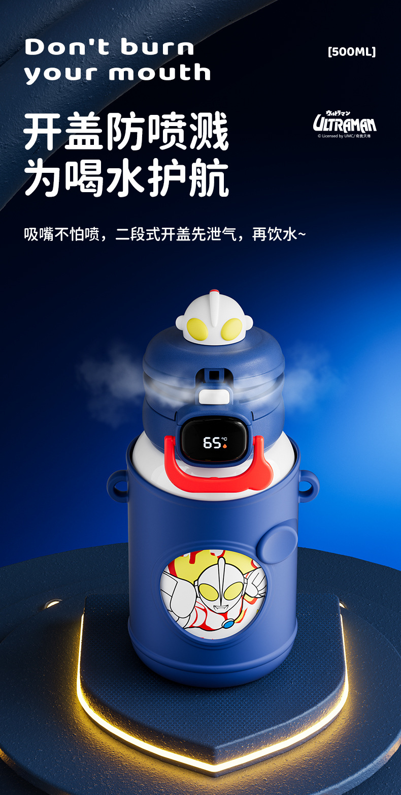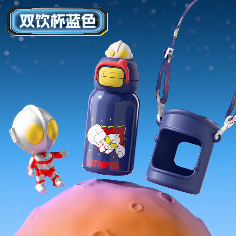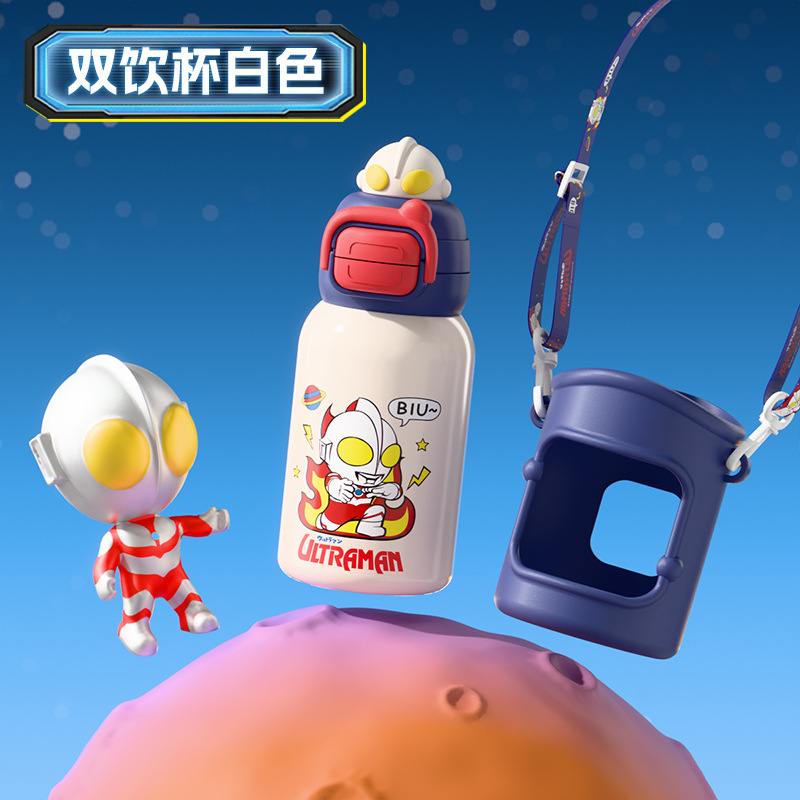 울트라 맨 대용량 어린이 보온병 컵 스테인레스 스틸 시피 컵 큰 배꼽 컵 학생 높은 가치의 귀여운 물컵