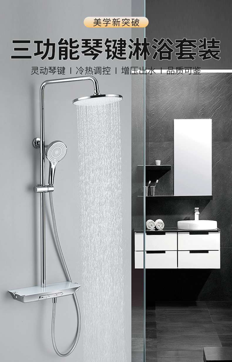 샤워기 풀세트, 피아노 키 디자인 스마트 온도조절 샤워기 세트, 욕실용 고압 레인 샤워기 제조업체스토어 가기
