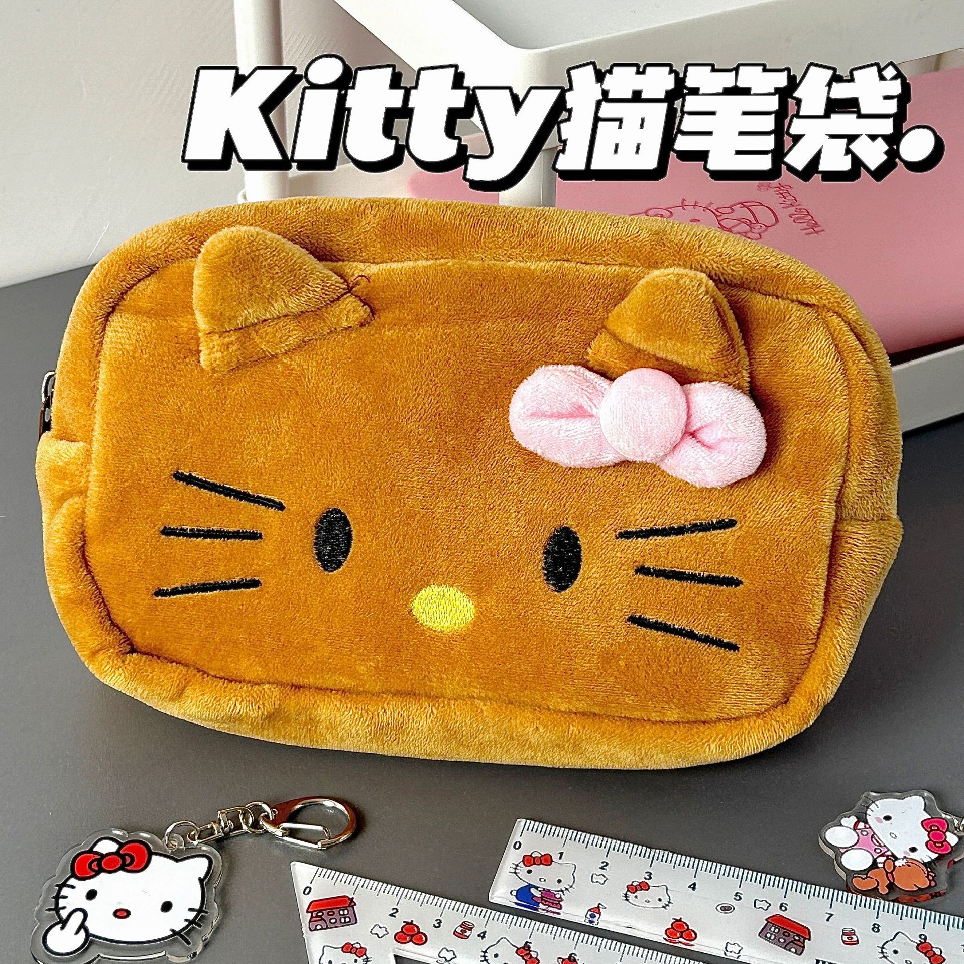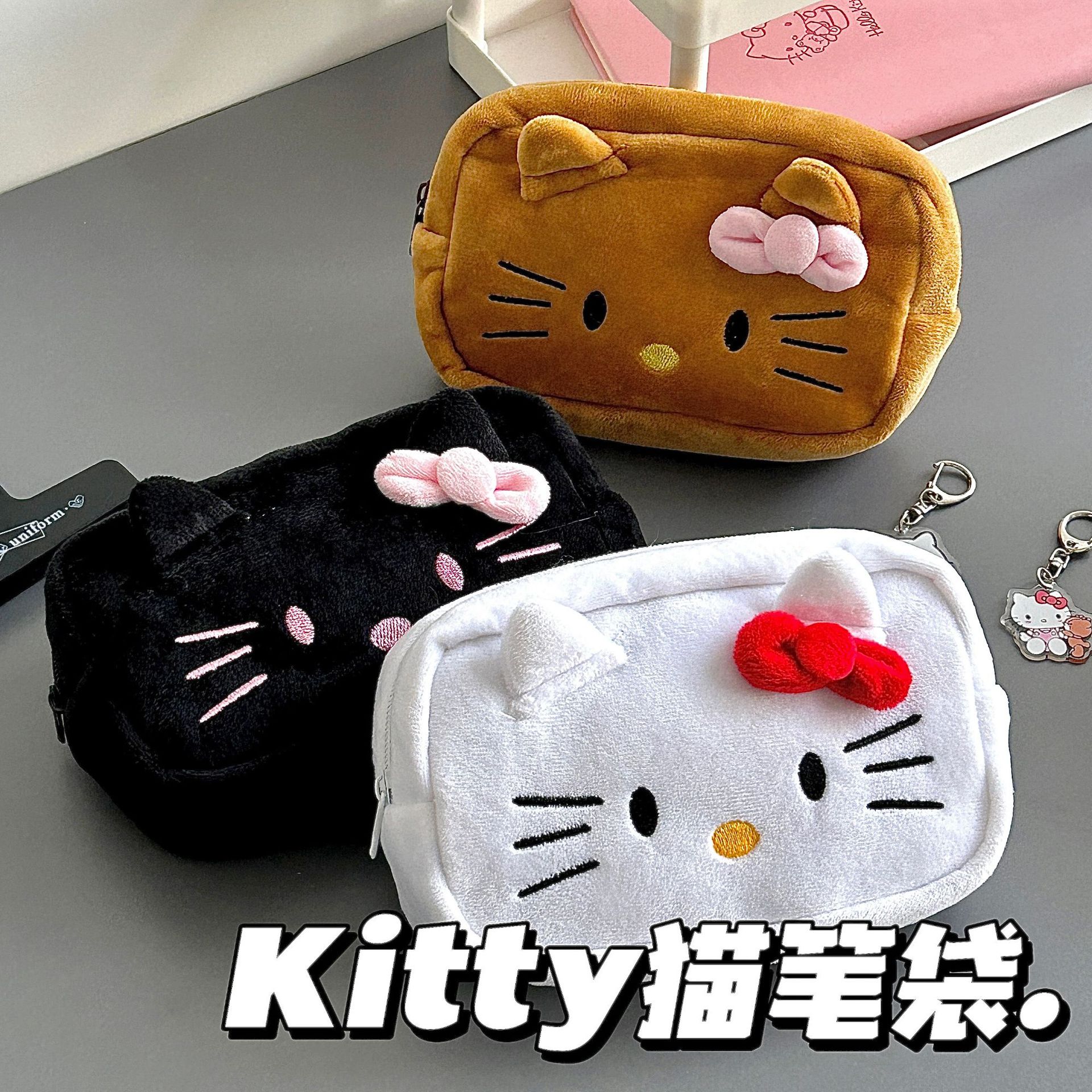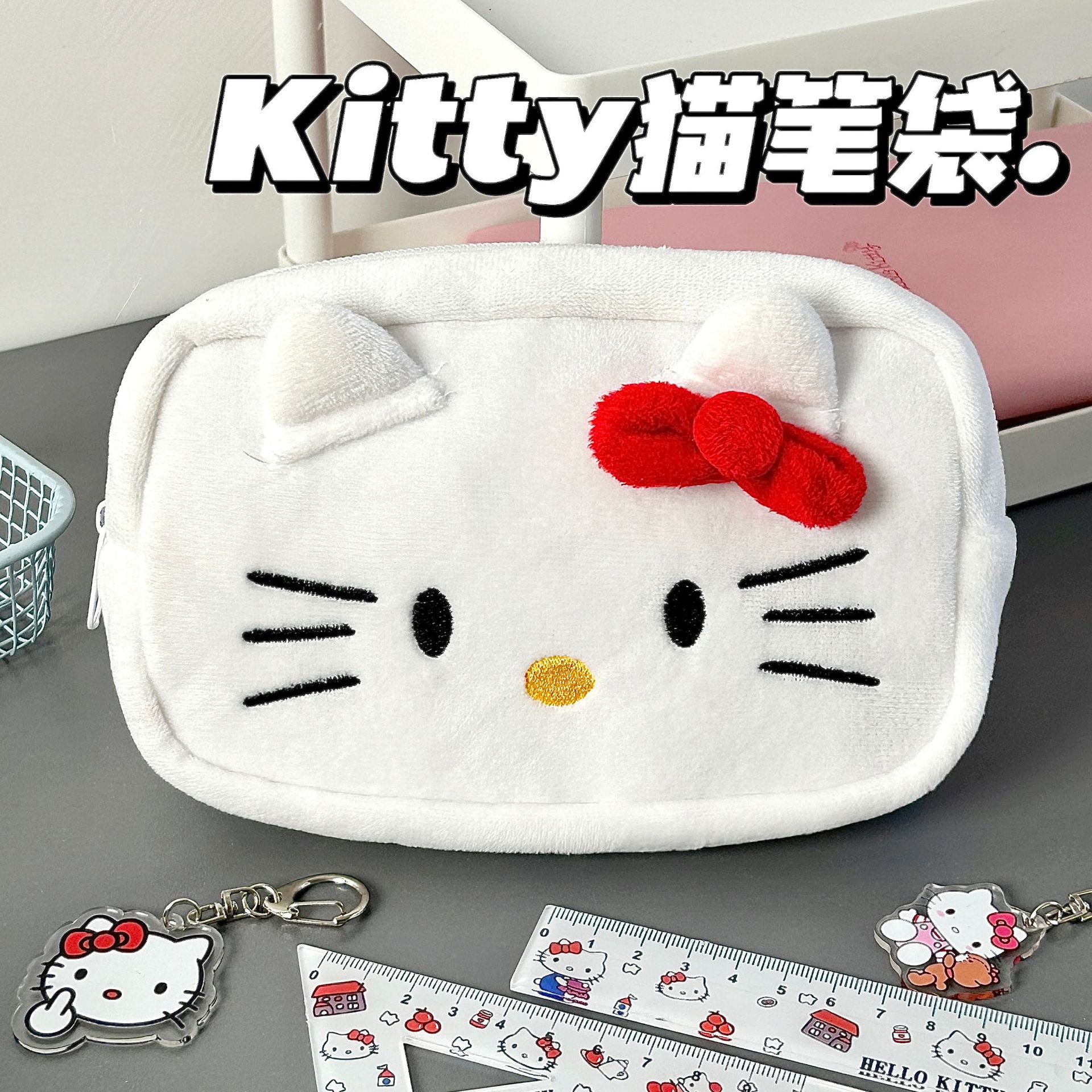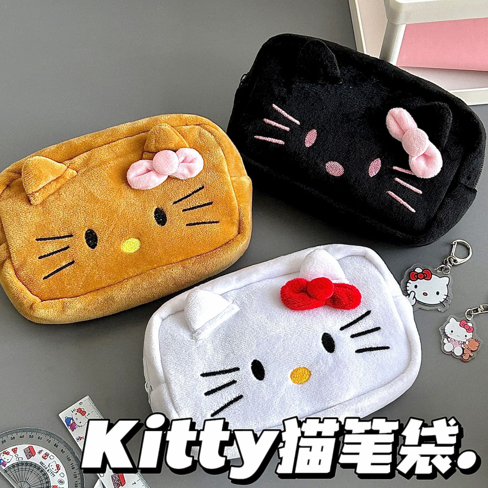Ins 귀여운 헬로 키티 인쇄 연필 케이스 만화 헬로 키티 봉제 학생 대용량 연필 케이스 보관 가방스토어 가기
