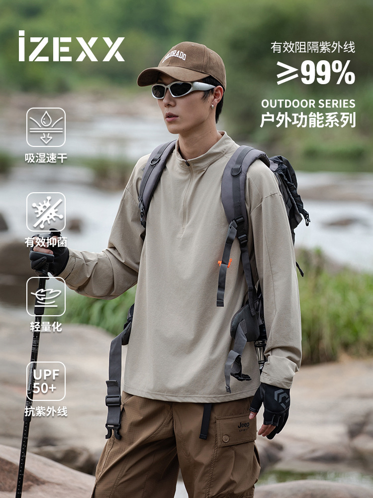 IZEXX 야외 경량 자외선 차단 흡습 속건 피트니스 스포츠 긴팔 티셔츠 남성용 항균 하프 터틀넥 탑